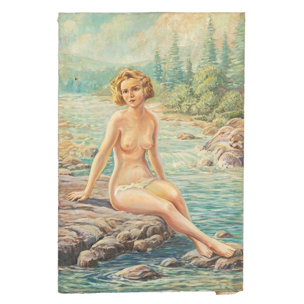 PAINTING OF NUDE WOMAN RECLINING IN RIVER from the WOLF'S LAIR ESTATE.