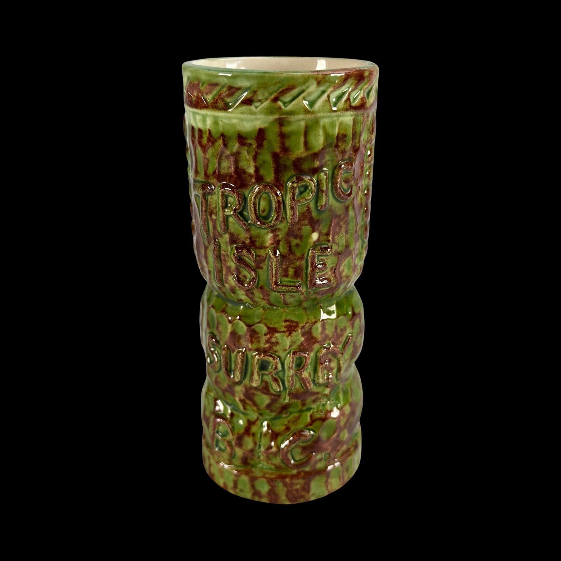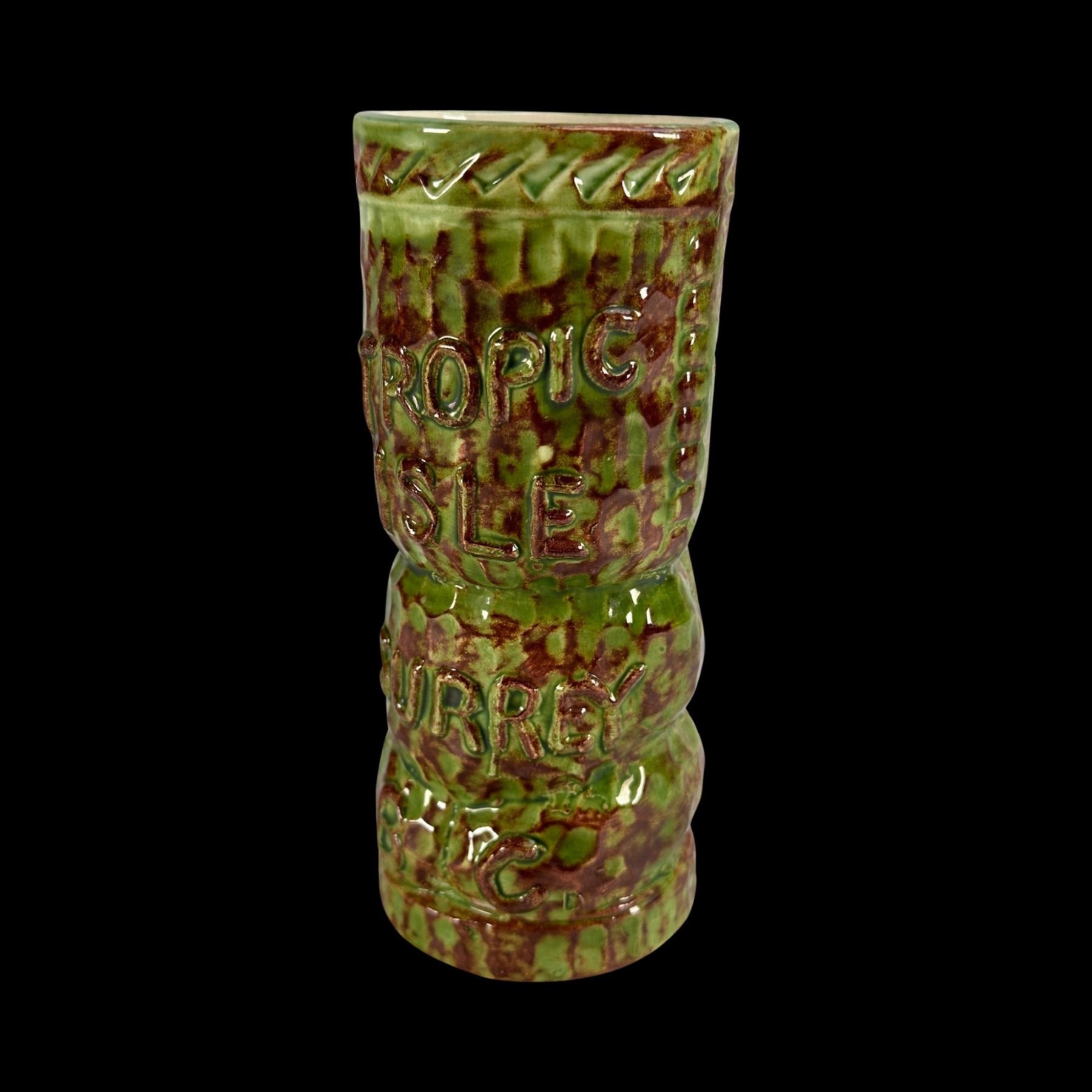 (1960s)* Another odd mug for "Tropic Isle" in Surrey, British Columbia, Canada. VG+ with typical wear. 2.75"dia x 6".