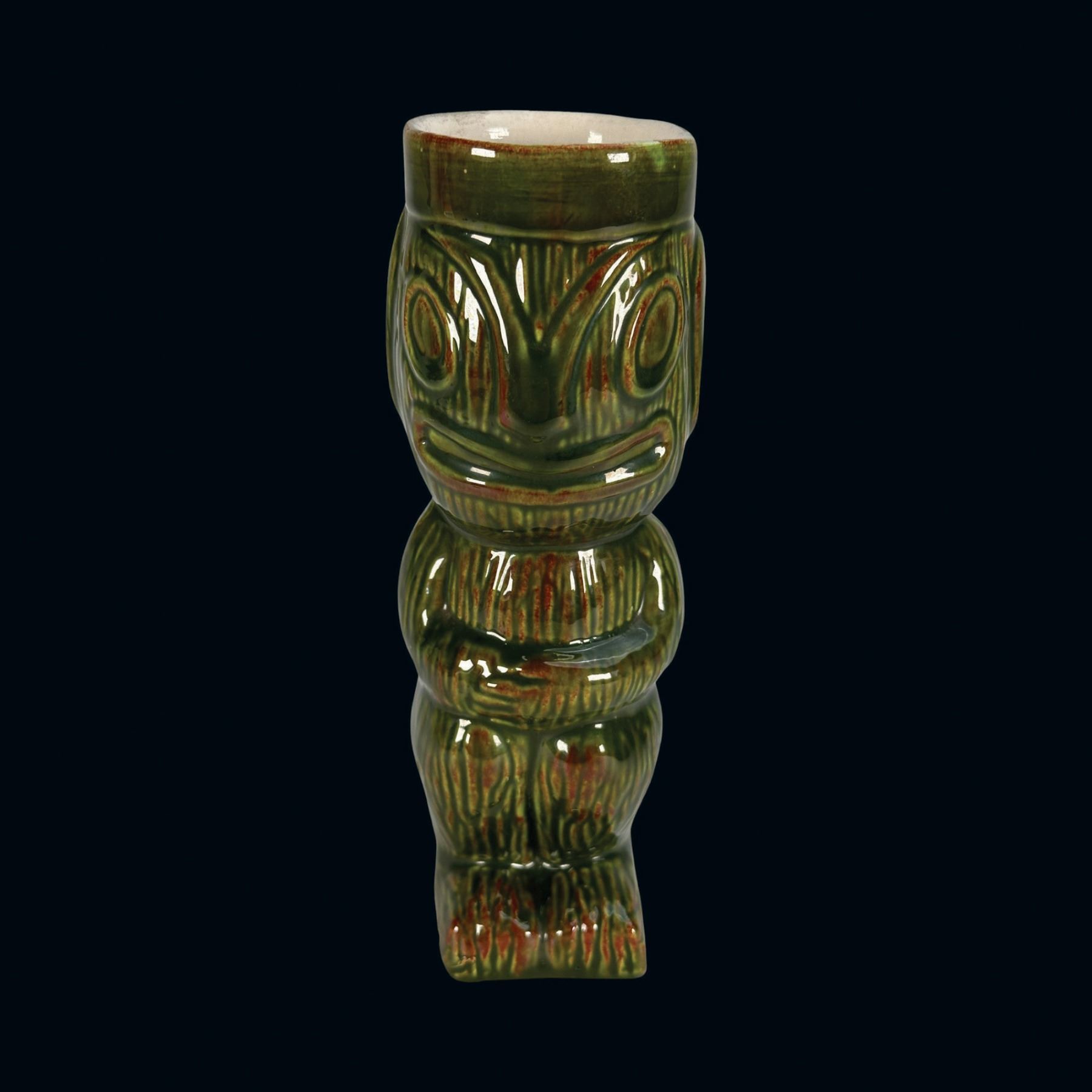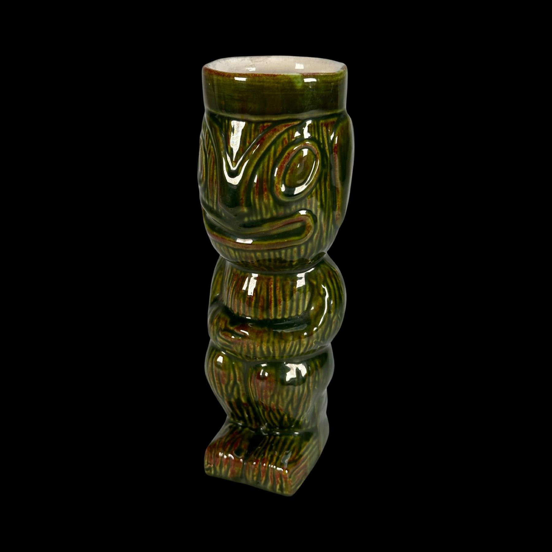 (1960s)* A strange variation, most probably a mold pulled from an OMC Hawaiian Village mug of this design. VG+ with typical wear and small chips on feet. 3"dia x 7.75".