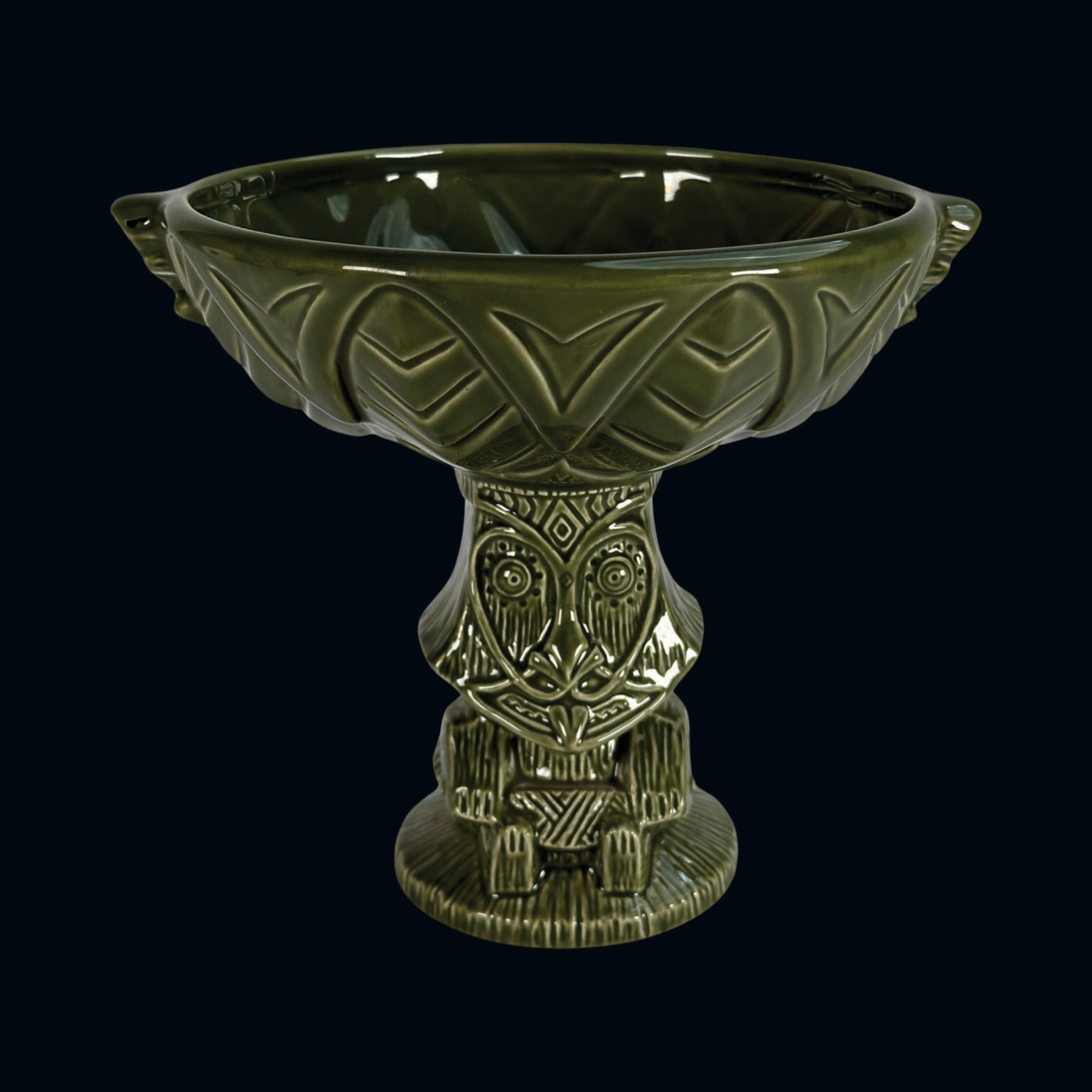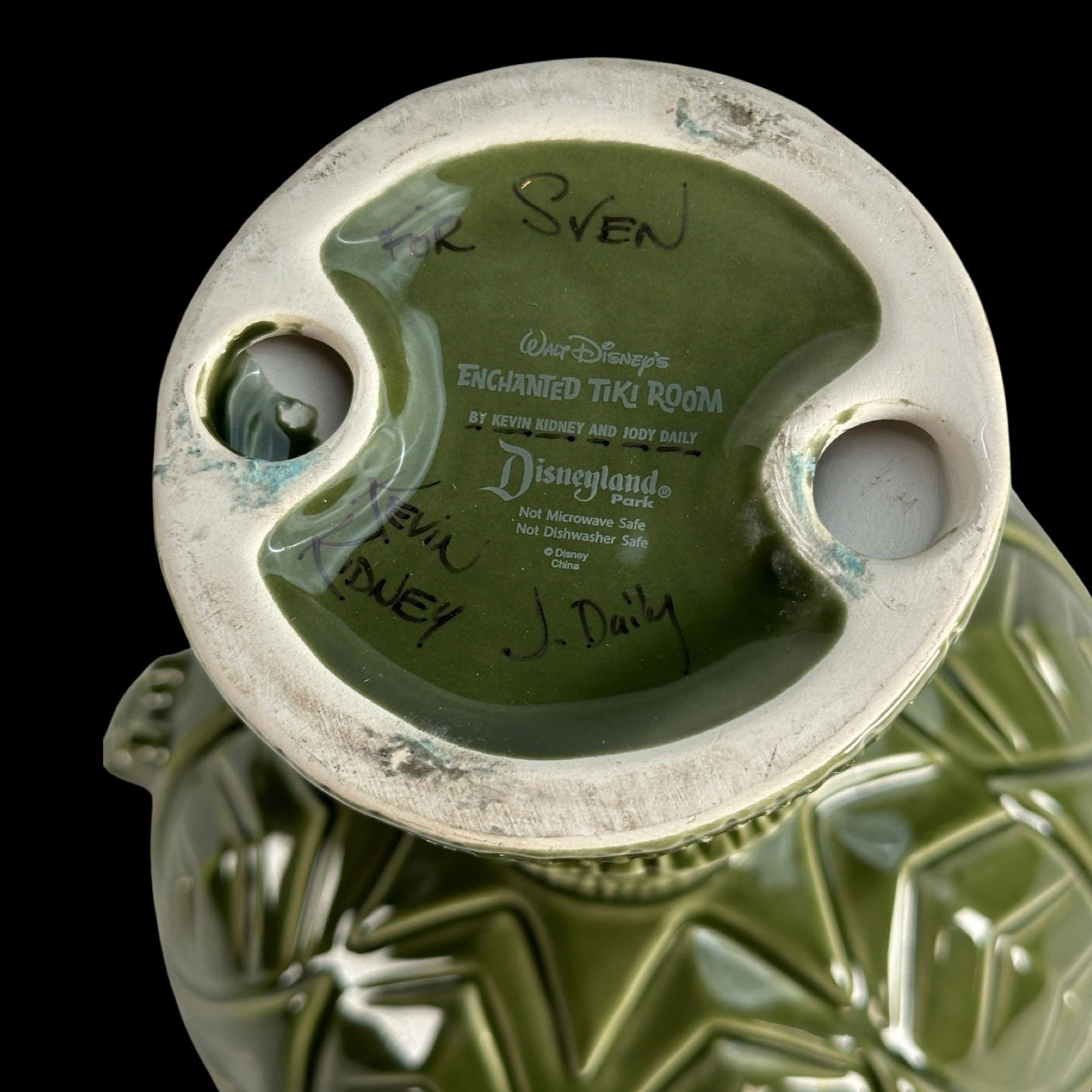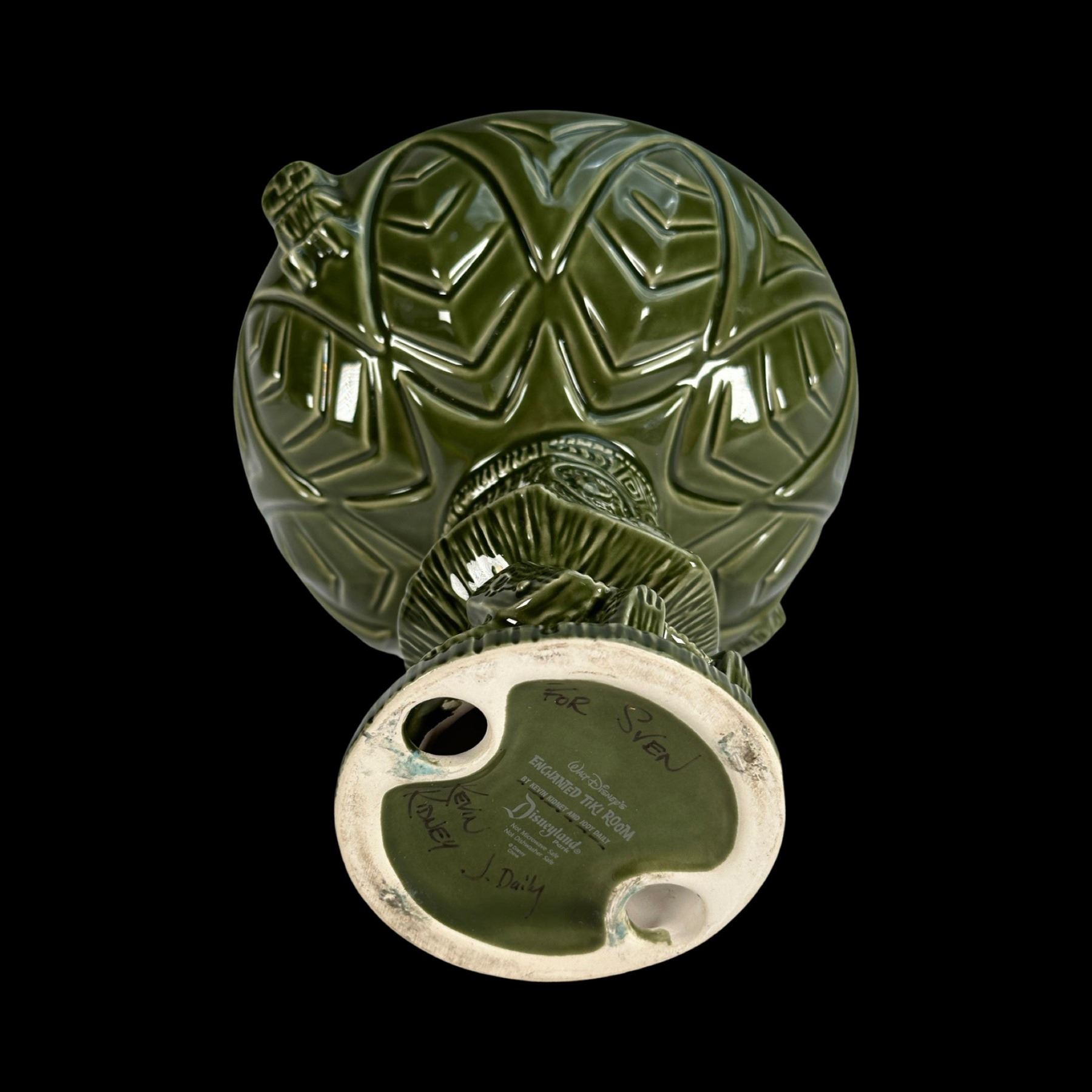 (2001)* Kevin Kidney & Jody Daily were the first Disney artists to recognize the value of the Enchanted Tiki Room for the Tiki Revival. They curated a Tiki exhibition at the Anaheim museum in 1995 and joined the Los Angeles group of Tiki revivalist. The Rongo bowl is one of the first pieces they designed for Disney in 2001. VG+ with typical wear. 7.75"dia x 6.75".