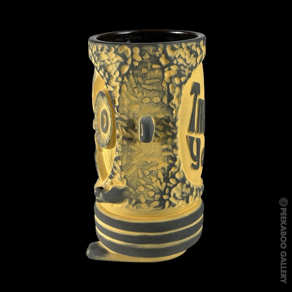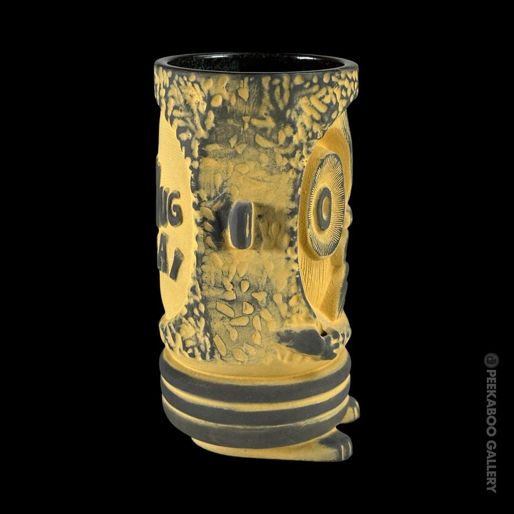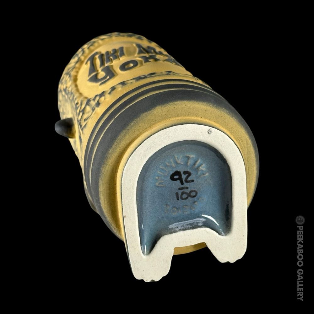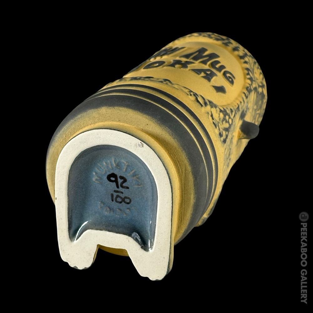 (2012) This rare mug was created to blend Tiki with Miles' love of Japanese kaiju or monster style. Only 100 pieces and the limited edition was broken down into a few separate colorways. This is the yellow/grey wipe. Numbered #92/100. VG+. 7"x4"dia.