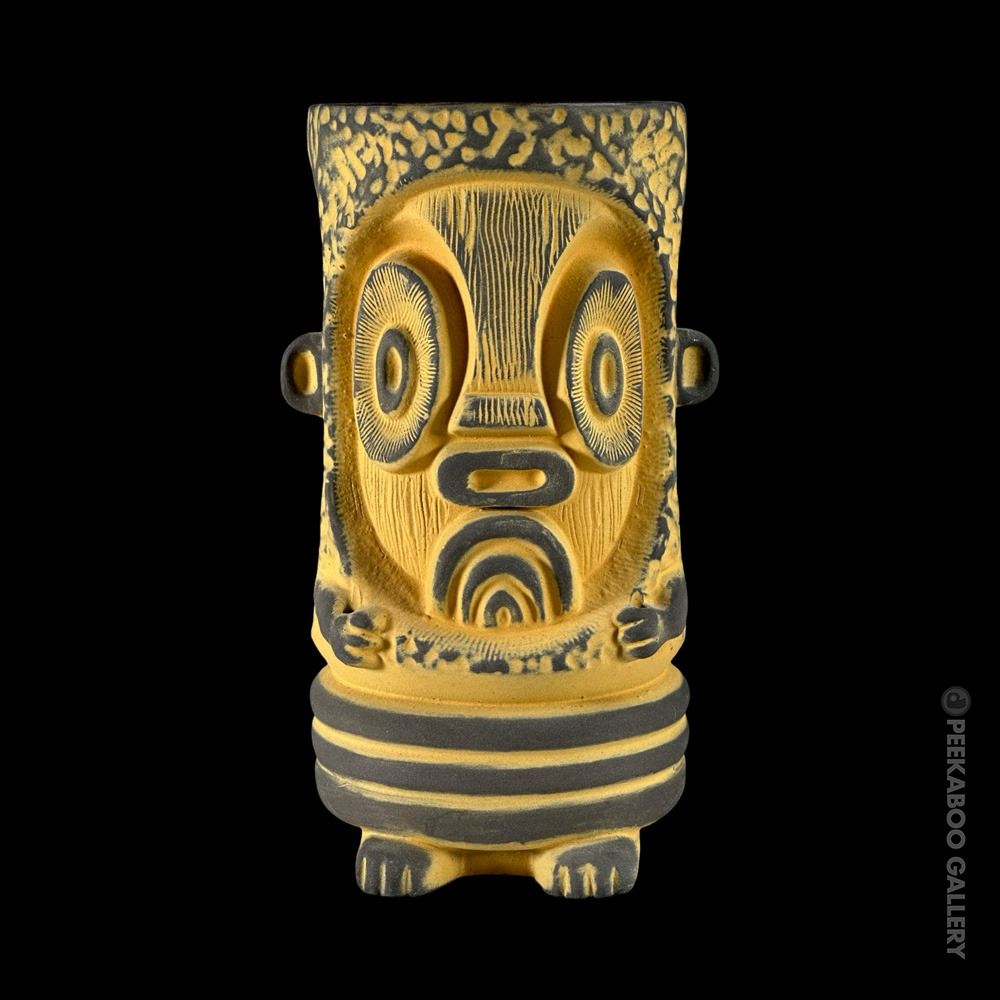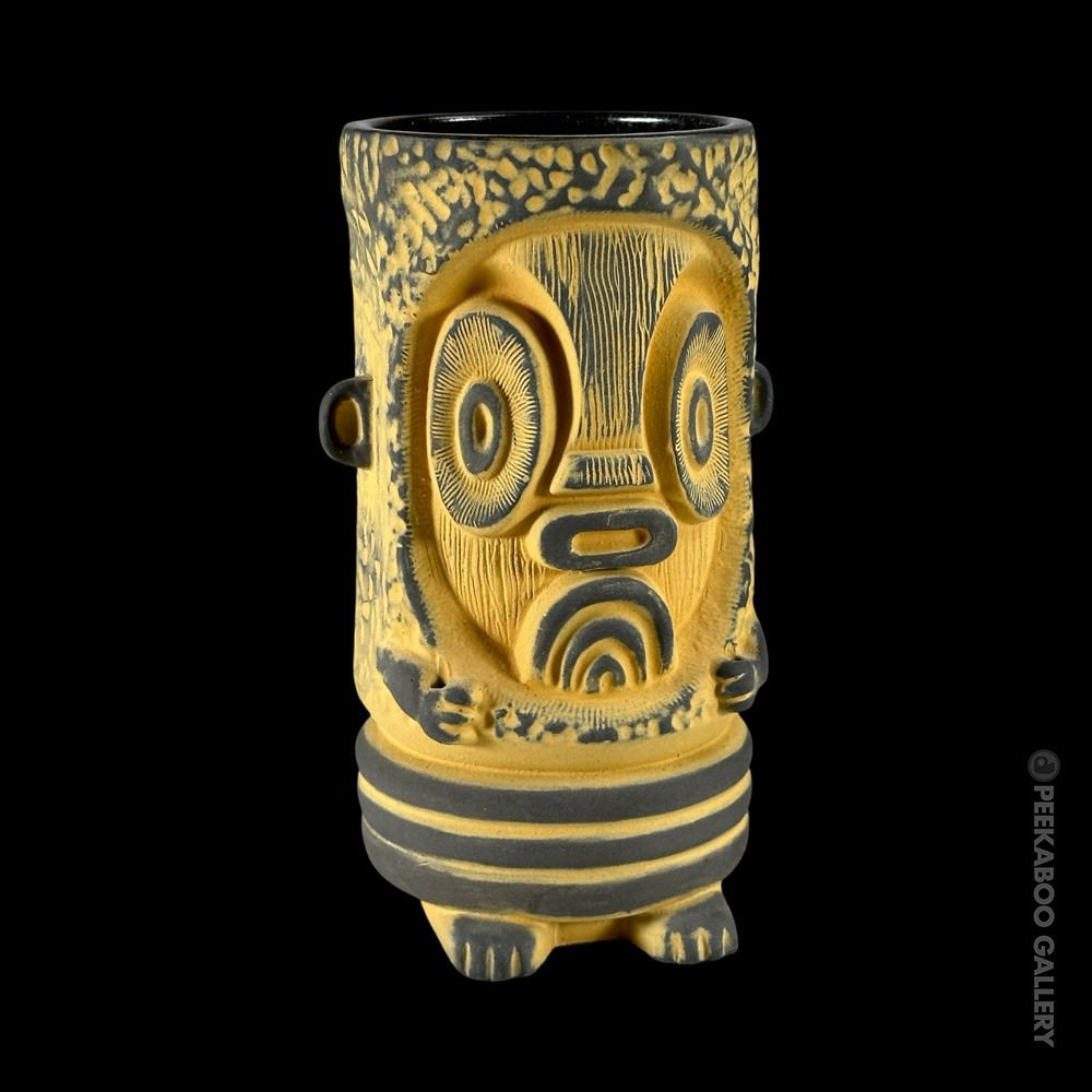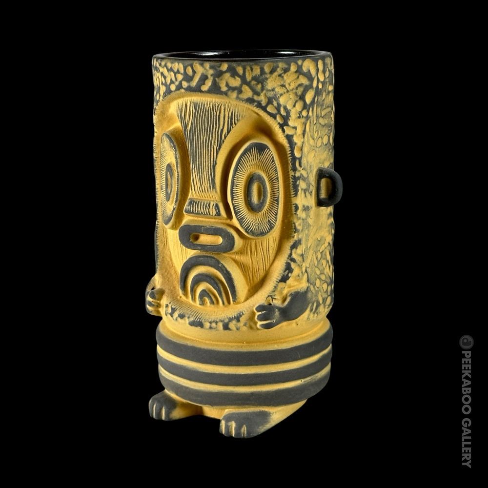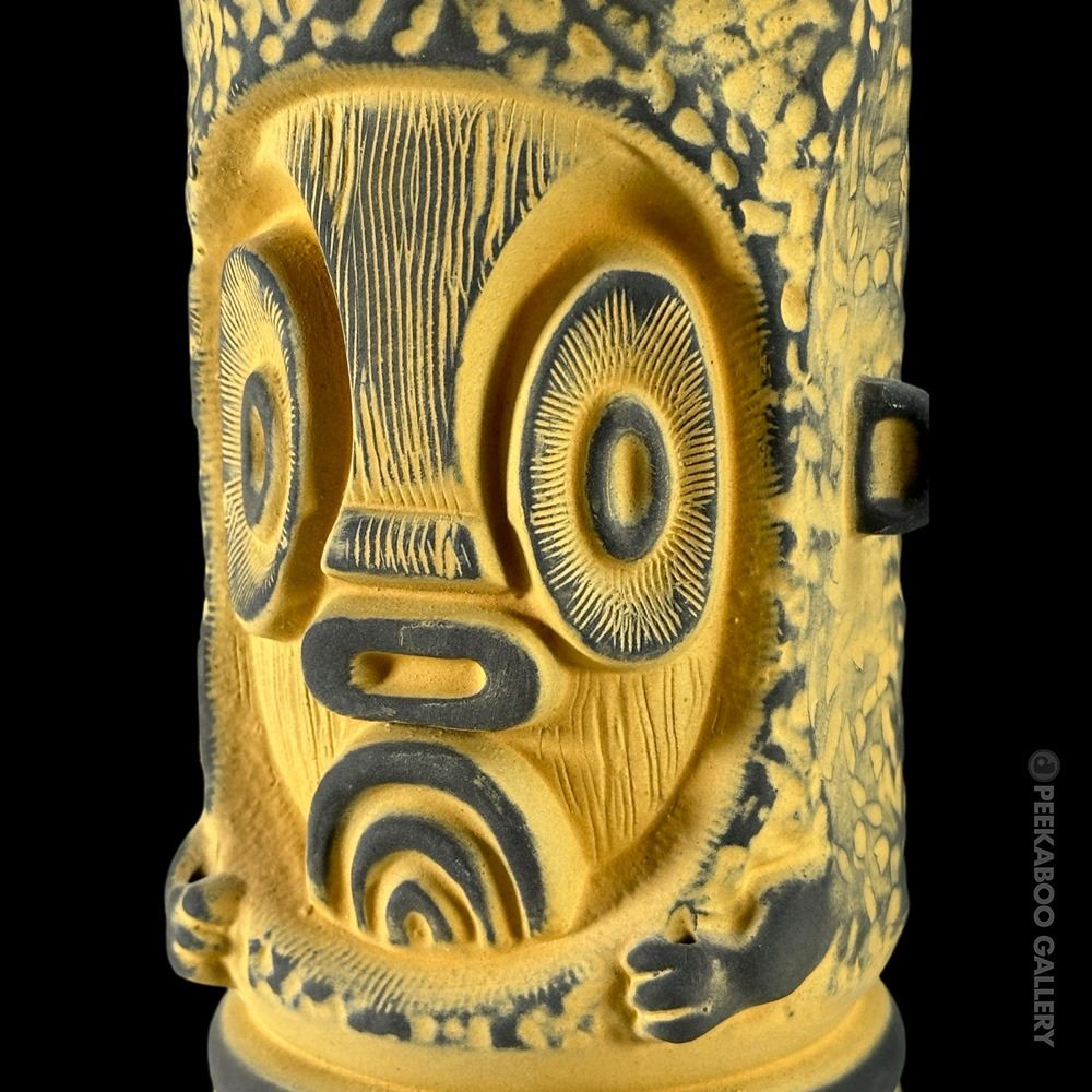 (2012) This rare mug was created to blend Tiki with Miles' love of Japanese kaiju or monster style. Only 100 pieces and the limited edition was broken down into a few separate colorways. This is the yellow/grey wipe. Numbered #92/100. VG+. 7"x4"dia.