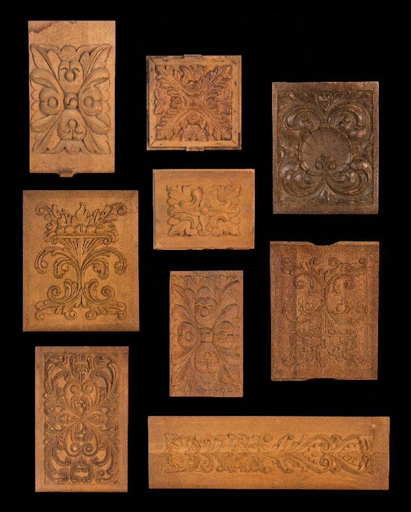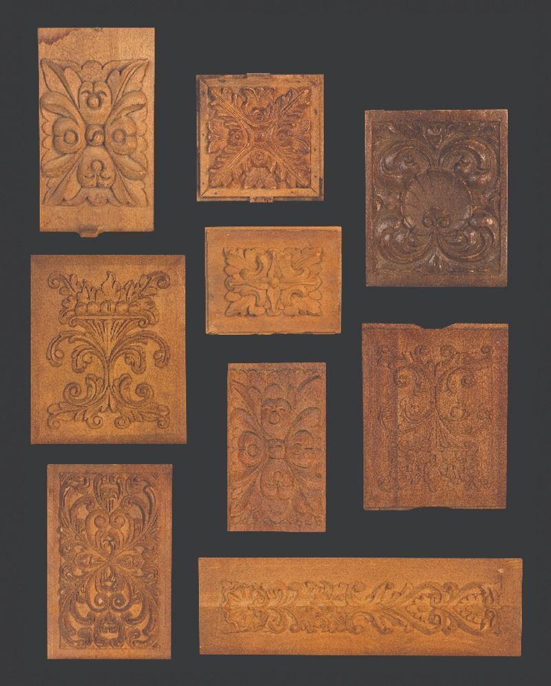 (1960s) A grouping of 9 pieces of Classical European trim accent panels.Smallest to Largest: 12"x7" to 26.5"x8"