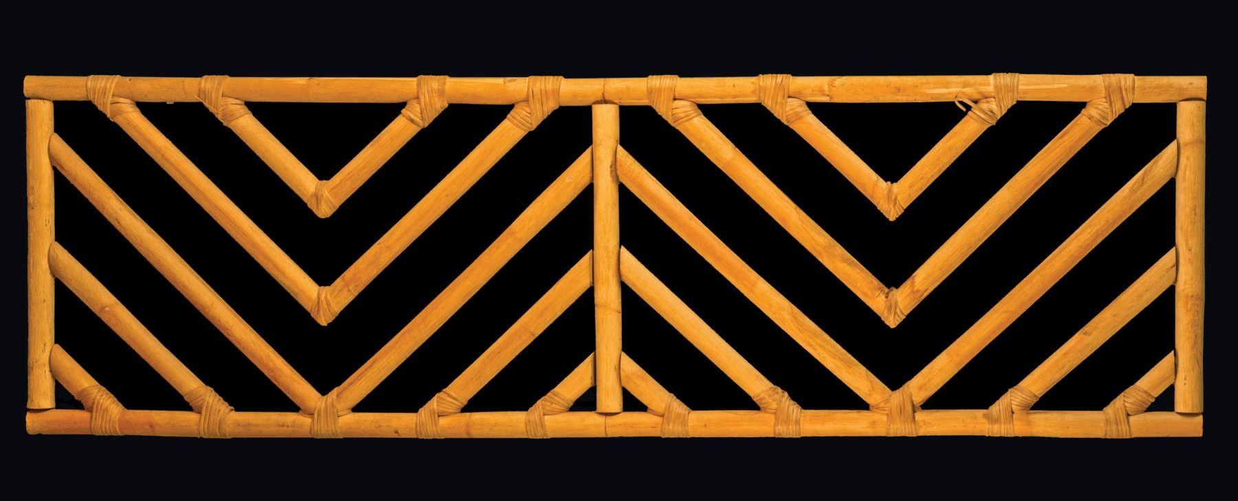 (1960s) Most probably a custom made item by CALIF-ASIA or KALP-SON Rattan manufacturers under order from OA who was looking for warehouse showroom samples for display. 18"x63". VG+ with typical wear.