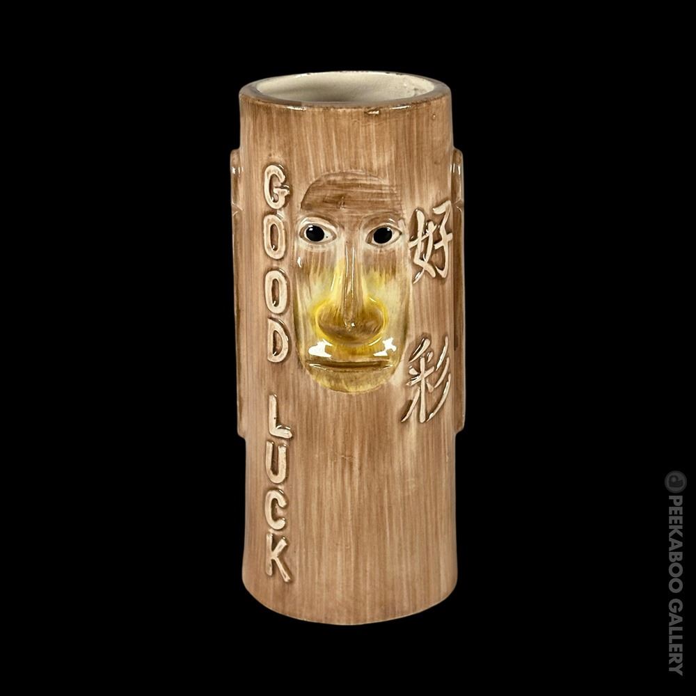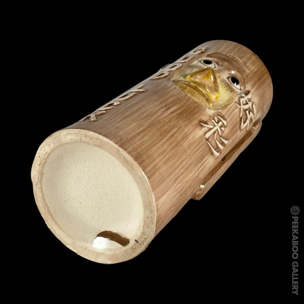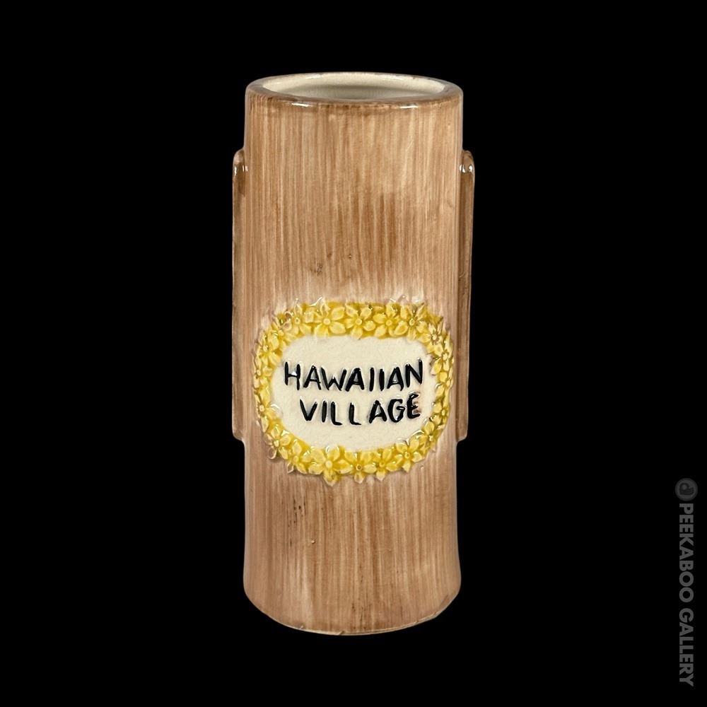 (1960s) A great variation on the classic Moai mug for the Hawaiian Village in Florida. Features the famed Tiki Bob's styled lei wreath border on the back. VG+. 6"x3"dia.