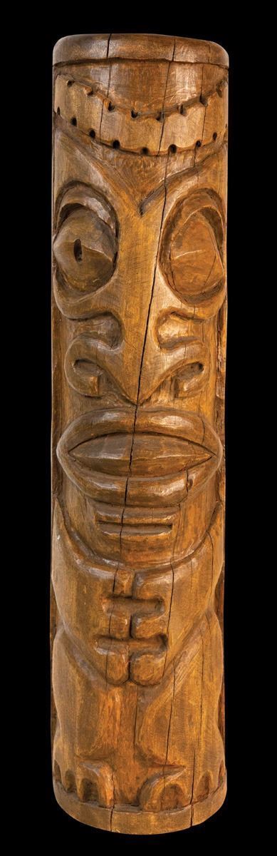 (1957) This is one of the earliest carvings by Bob Van Oosting. Many are not aware Bob did a good deal of carving for OA in the early years. Following the initial simplistic carvings he began with such as the palm frond masks and first OA Moai palm tikis, this was Bob’s first attempt at a detailed figural design. This has been on display at OA since its creation in 1957.19.75"x5"VG+