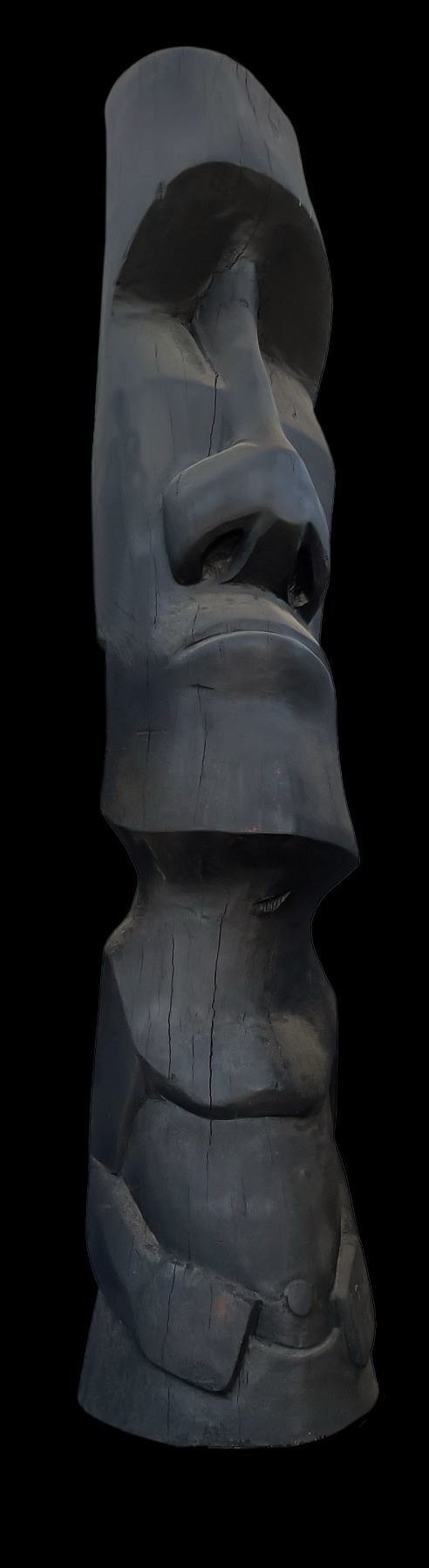 (1990) This massive idol was created by veteran OA carver, Guy Wilson. Wilson was an incredibly prolific artist, creating a large number of public works art across Southern California. Guy passed away in early 2022, just before the Aloha, OA! events and is sorely missed. Guy created this Moai on commission from Oceanic Arts upon the move into their new (and final) location in 1990. He worked together with LeRoy in making a marquee tiki worthy of the company who maintained grand idols at all of their different locations. This figure is large. Please keep in mind the dimensions and note that freight will be substantial. Please keep this in mind when bidding on one of the most significant Tikis in Poly-Pop history! 11’x26”x25”. VG+ with typical wear from outdoor display. $15,000-$25,000