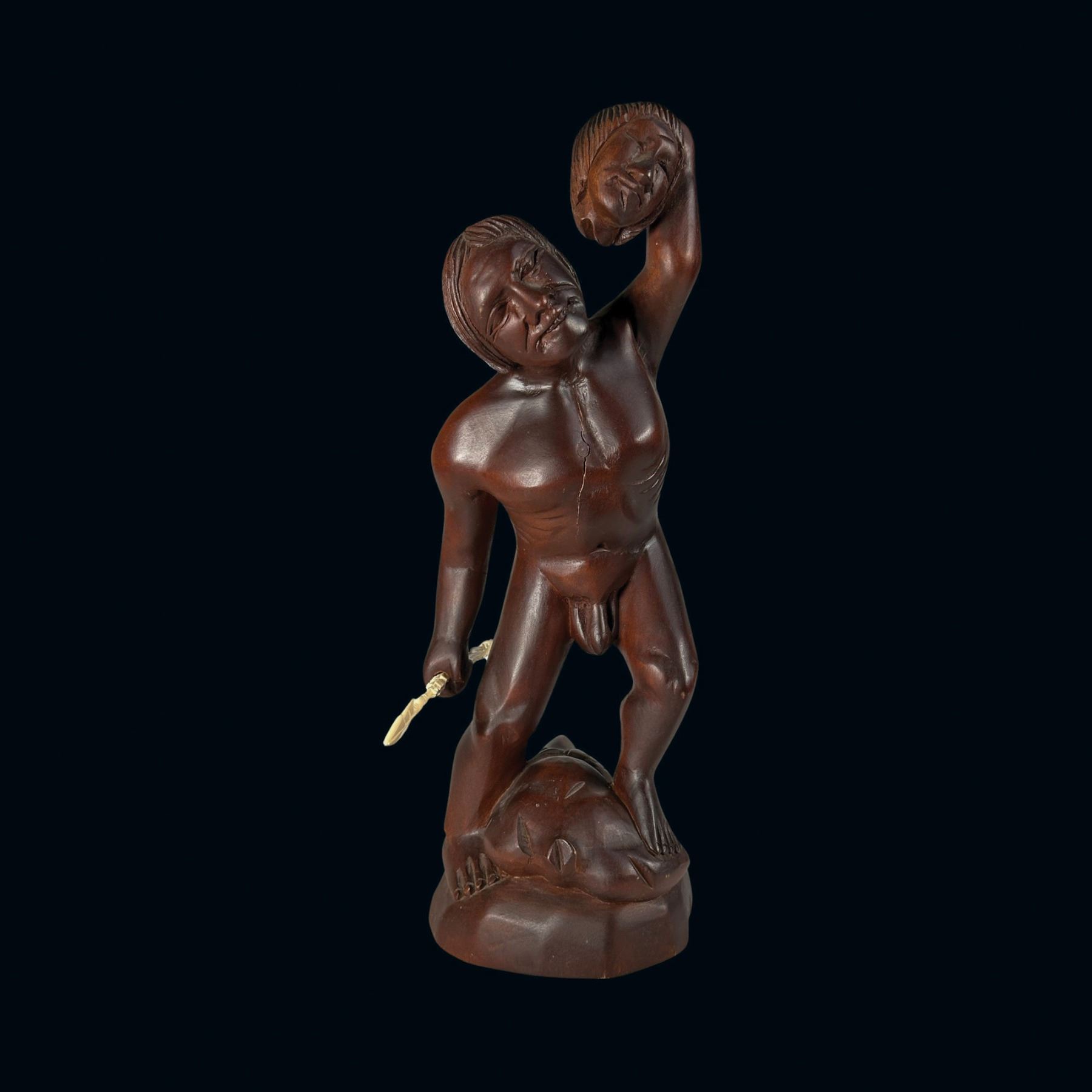 IGOROT HEADHUNTER STATUE w/ SWIZZLE STICK SPEAR.