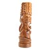 (1960s) Hand carved wood Two-faced Tiki speaks with forked tongue on this impish take of the Tiki idol. Features a ceremonial headdress. Solid wood double sided. 15.75"x4.75". VG+.