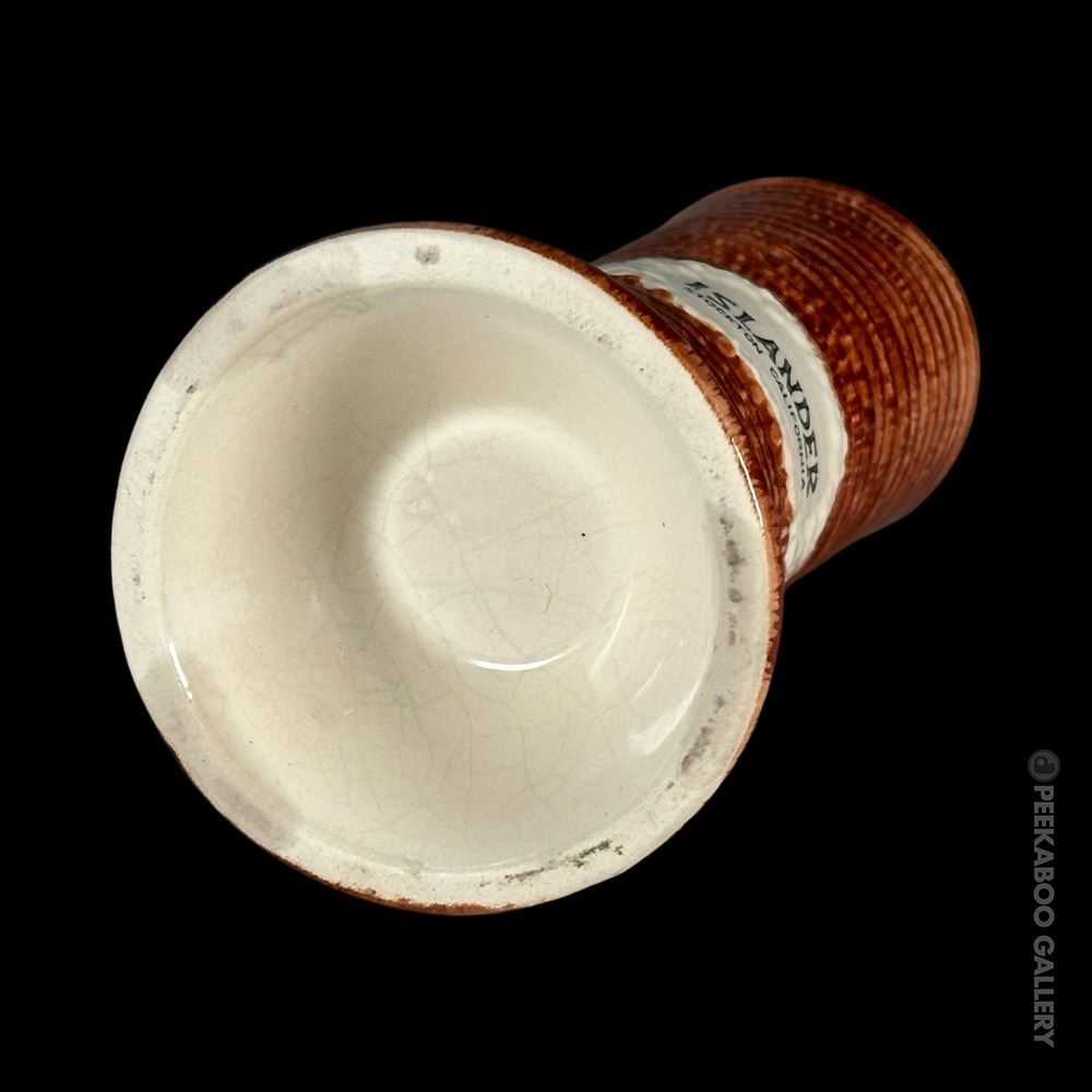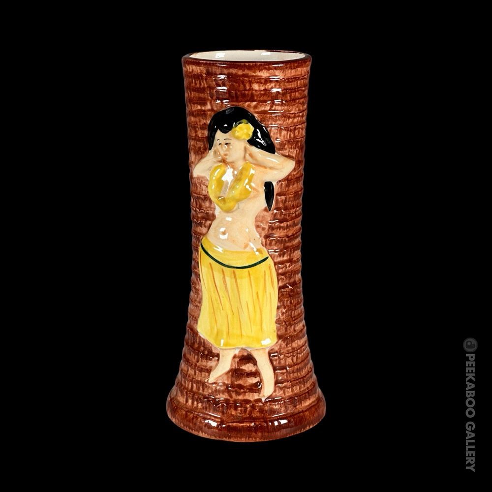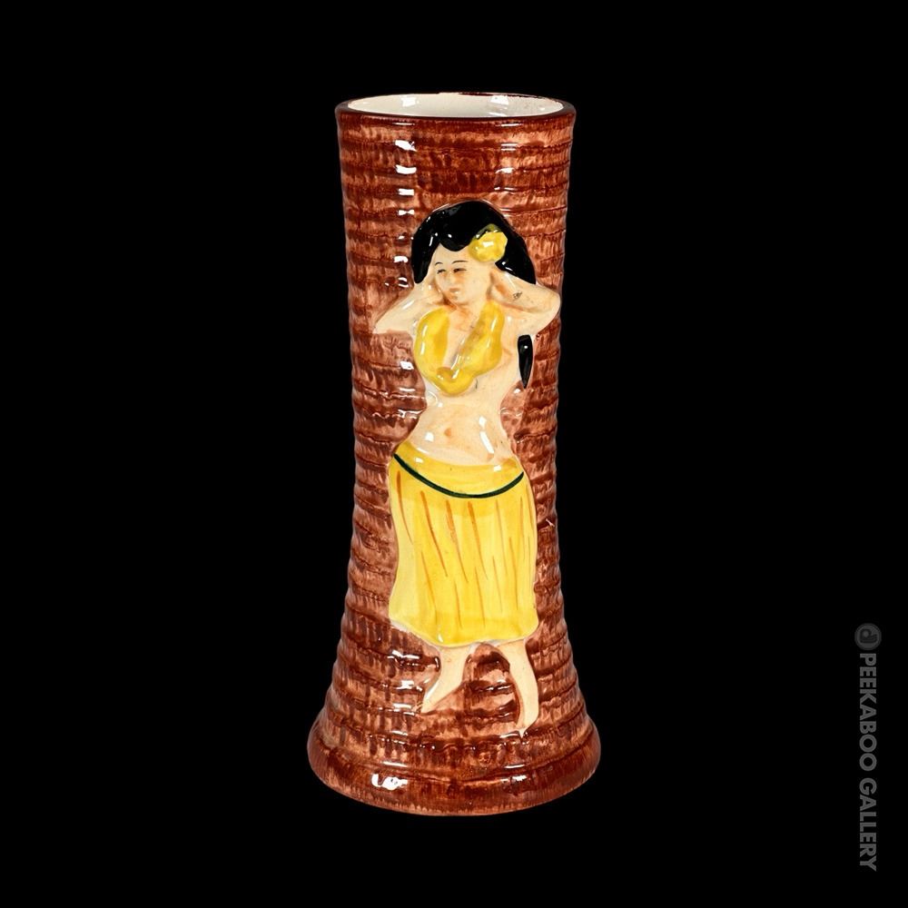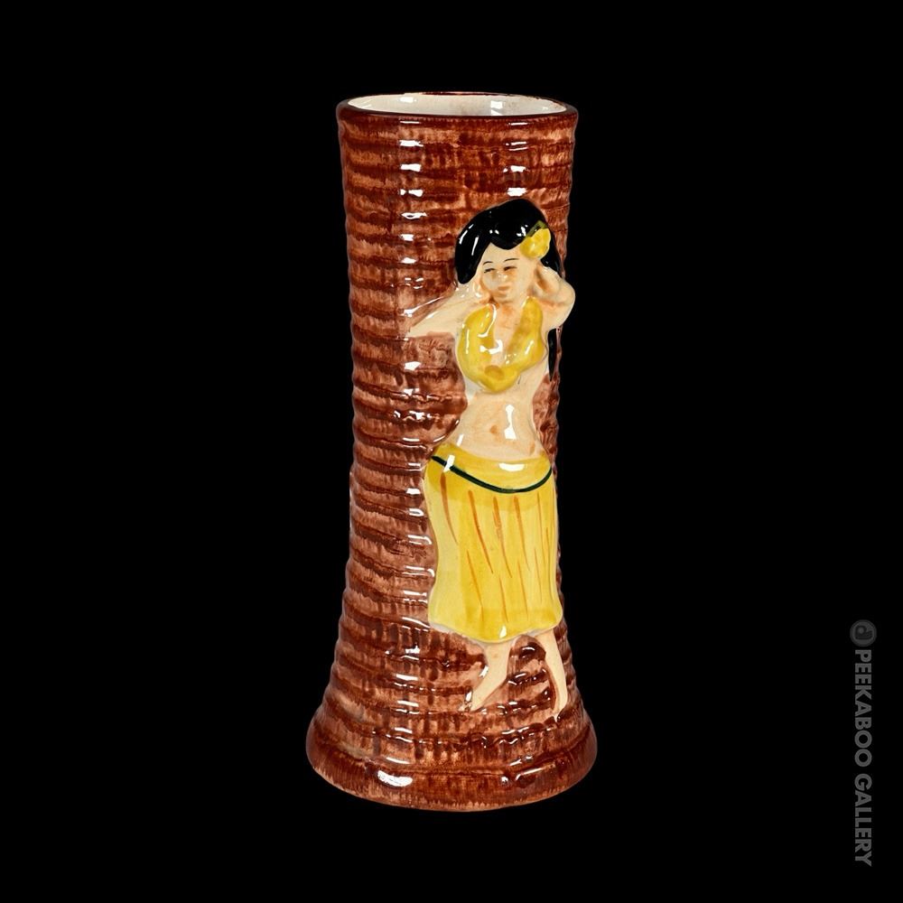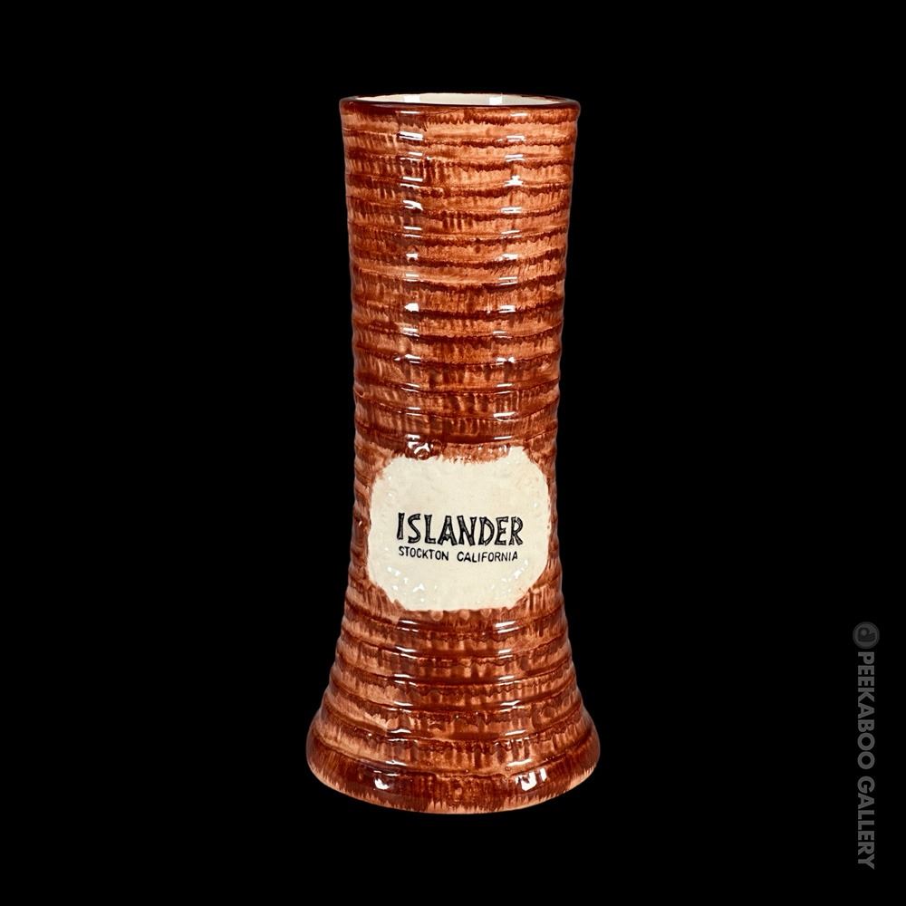 (1960s) The Islander in Southern California produced some of the most proto and decorative mug ware in all of Tiki-dom. This rare mug from Stockton, CA location is no exception. It feature a bas relief hula girl over a palm tree background with a wreathed name frame on the back. VG+ with typical wear. 8.25"x3.75"dia.