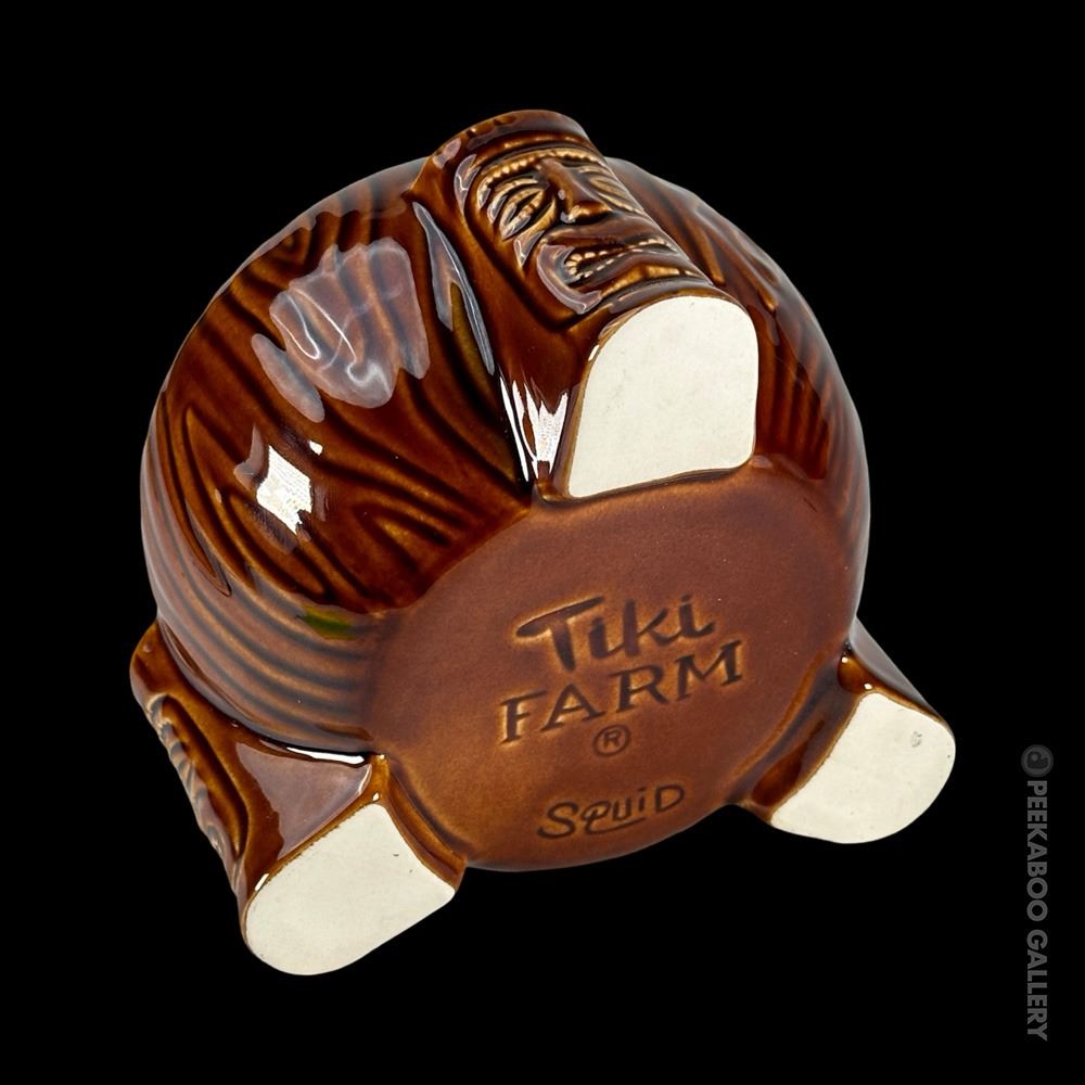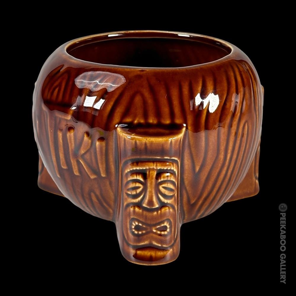(2010) Tiki Farm produced a series of mugs for the wonderfully original, Kon-Tiki in Tucson, AZ. These are offered in person and for a short time, one their website. All of the following mugs pay homage to the many spectacular Milan Guanko carvings that fill the decor at the property. VG+. 4.75"x5.75"dia.