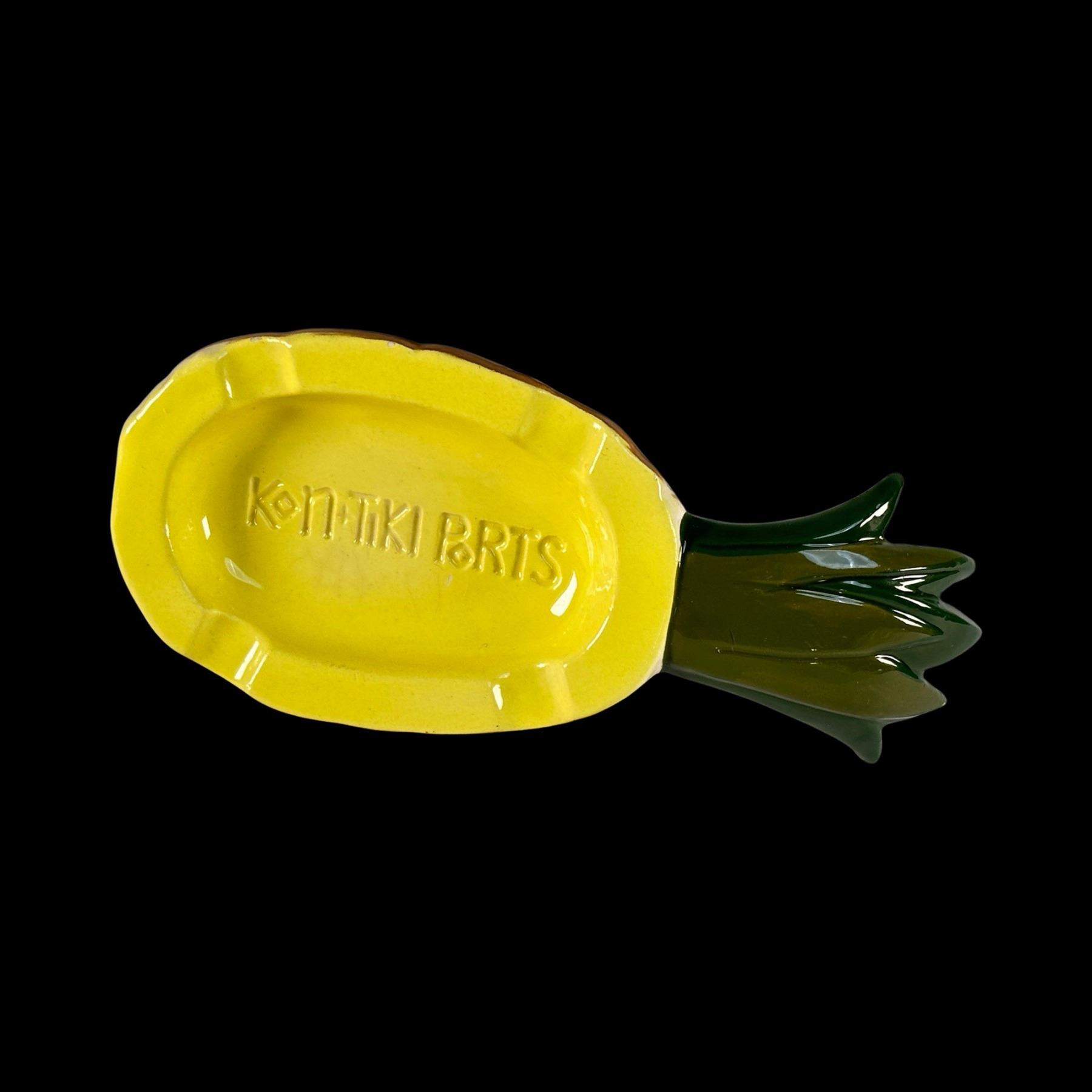(1960s) Here is the earliest offering of this design by Steve Crane and Associates art director and designer, Gabriel Florian. This ashtray was used for both Kon-Tiki and Kon-Tiki Ports chains. VG+. 7"x3.25"x1".