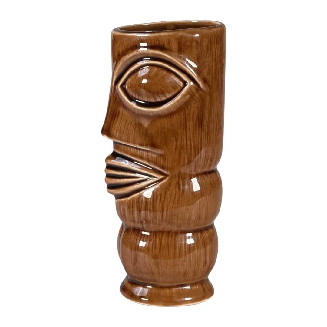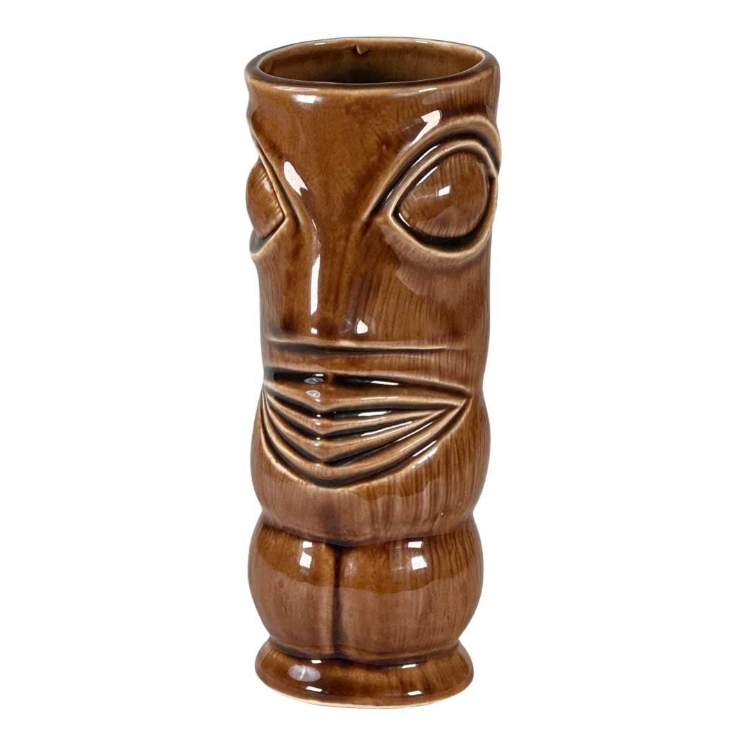 (1960s) Custom mug produced by OMC for KONO-HAWAII in Anaheim, California. A very unique modernist take on a Marquesan Tiki. As far as we know, this style is unique to Kono Hawaii and not used in any other venue. A large, theatrical venue located about a mile away from Disneyland, USA. For OMC as a production company, this was a premium service to create an exclusive mug design. Marked. 7"x3". VG+ with minor wear.