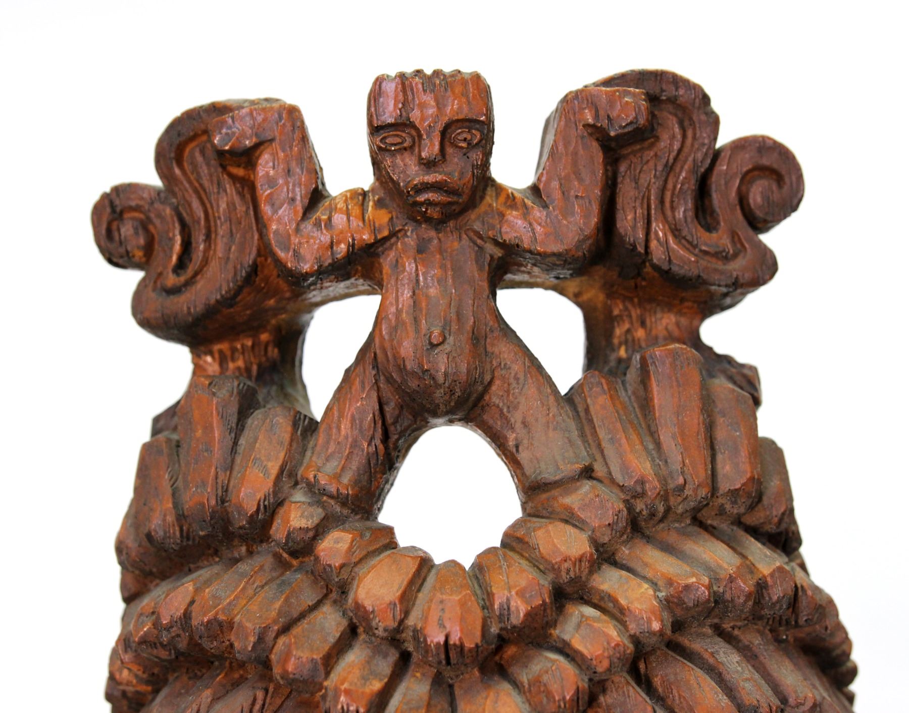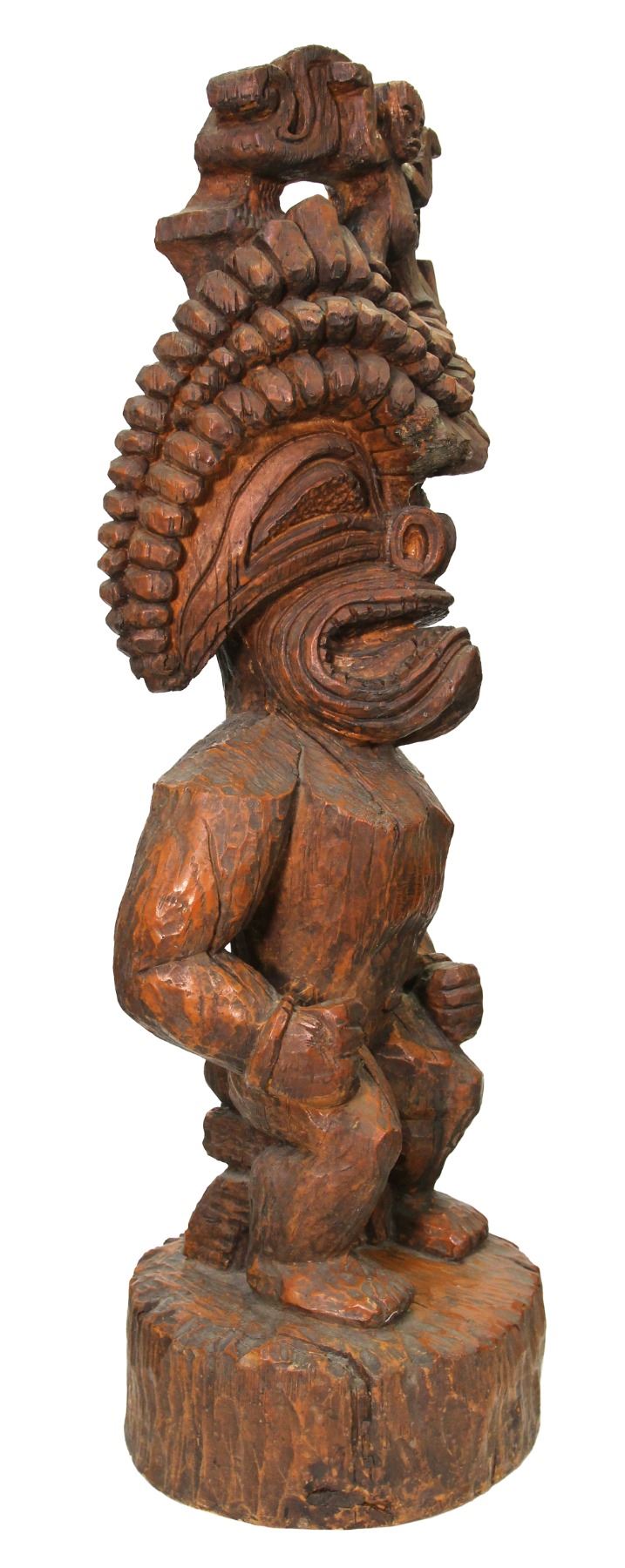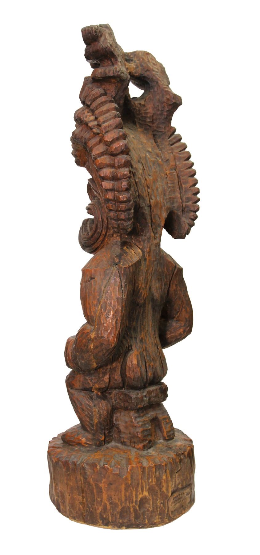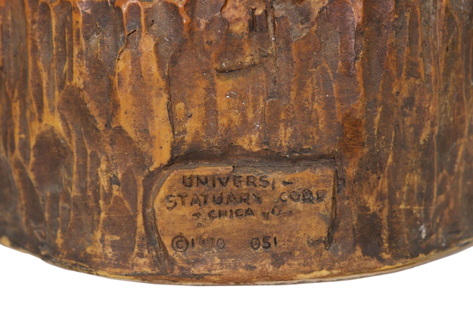 (1970) KU: God of War is represented in full warrior and defender mode in this bold statue from Universal Statuary Corp. Complete with next-generation warrior on his head, this statue is made of composite hard foam with faux-wood painting. This figure rarely comes up on the market. (1970). 36"x12". VG+.