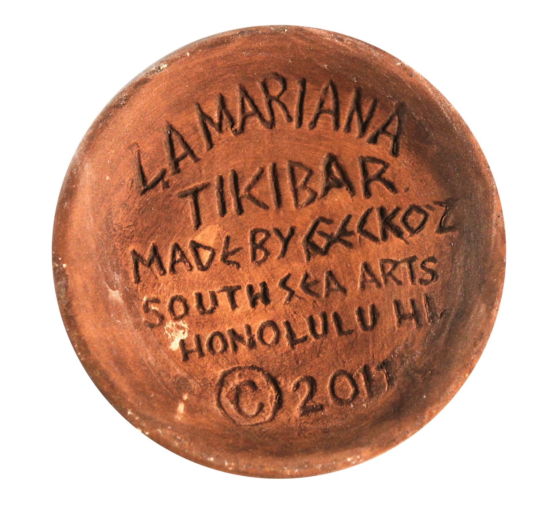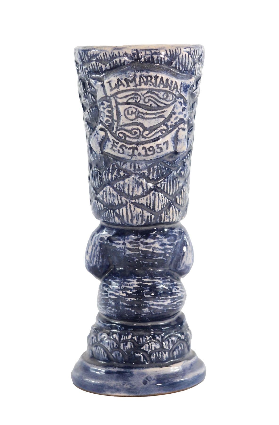 (2011).The famed, La Mariana Tiki Bar in Honolulu, Hawaii. This mug, inspired by the beloved bar and restaurant features Kanaloa: God of the sea realm in a dark blue/grey color with natural rub finish. Produced by artist, GECKO'Z. Limited Edition. 8.75"x3.5". VG.