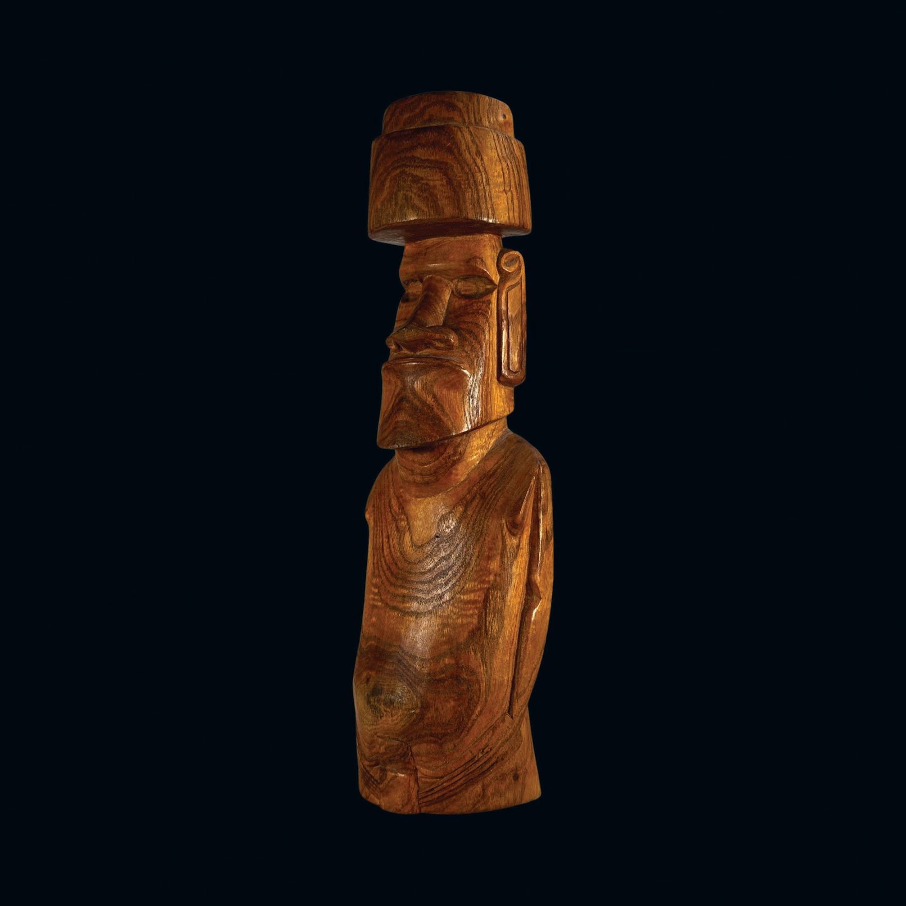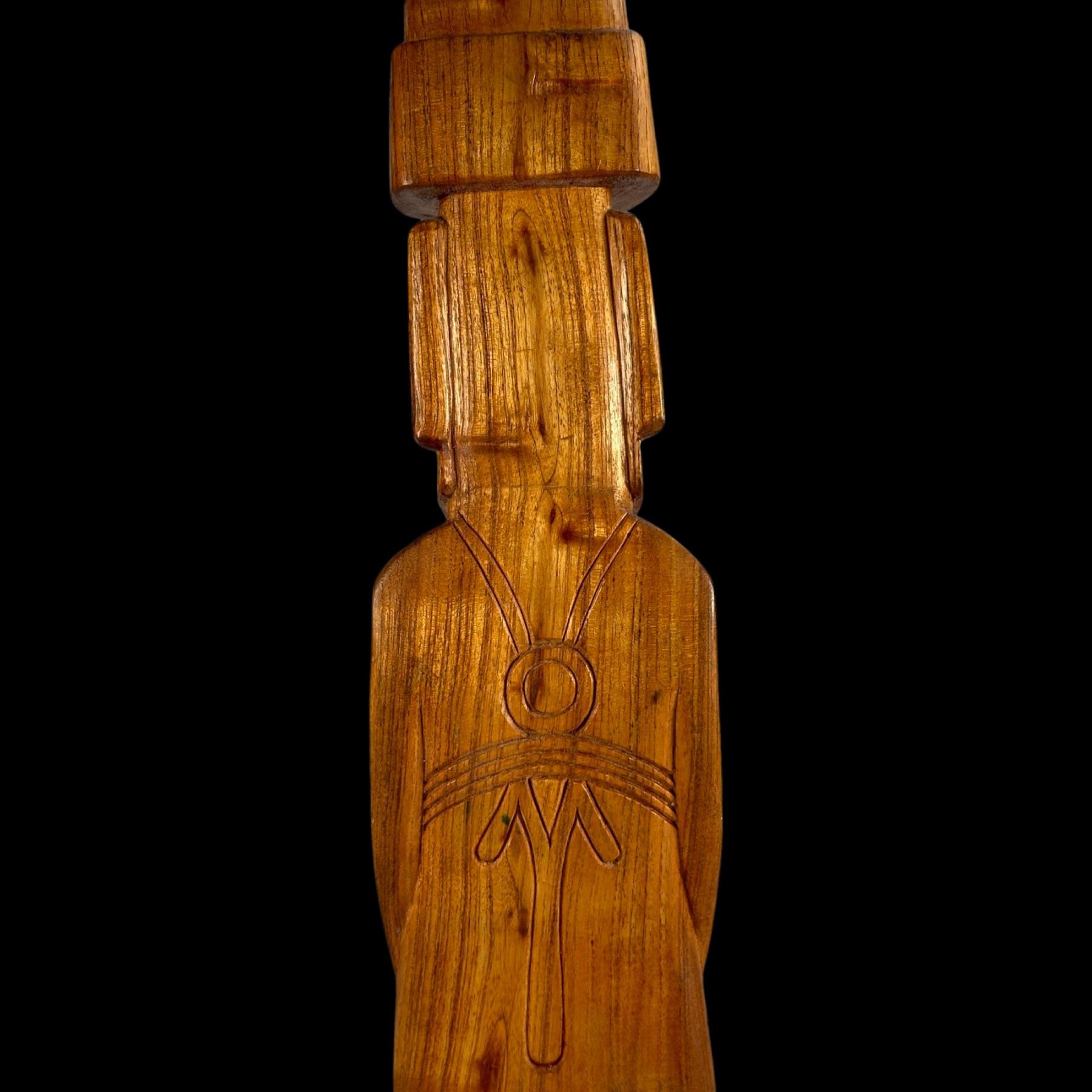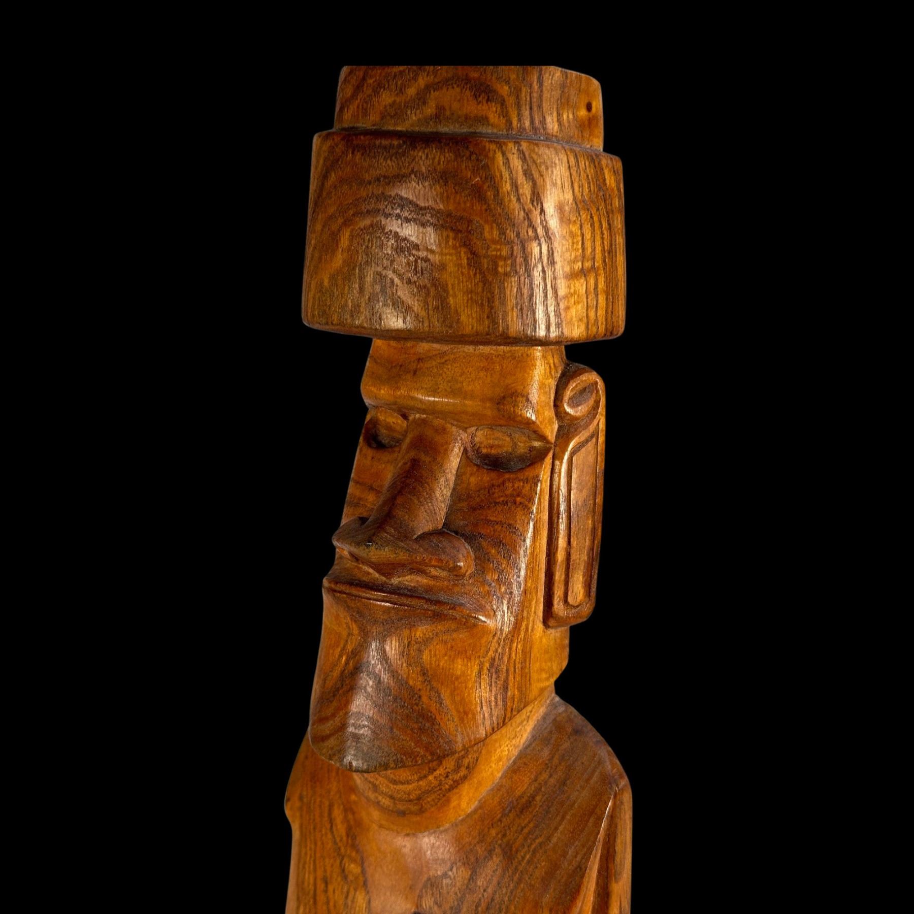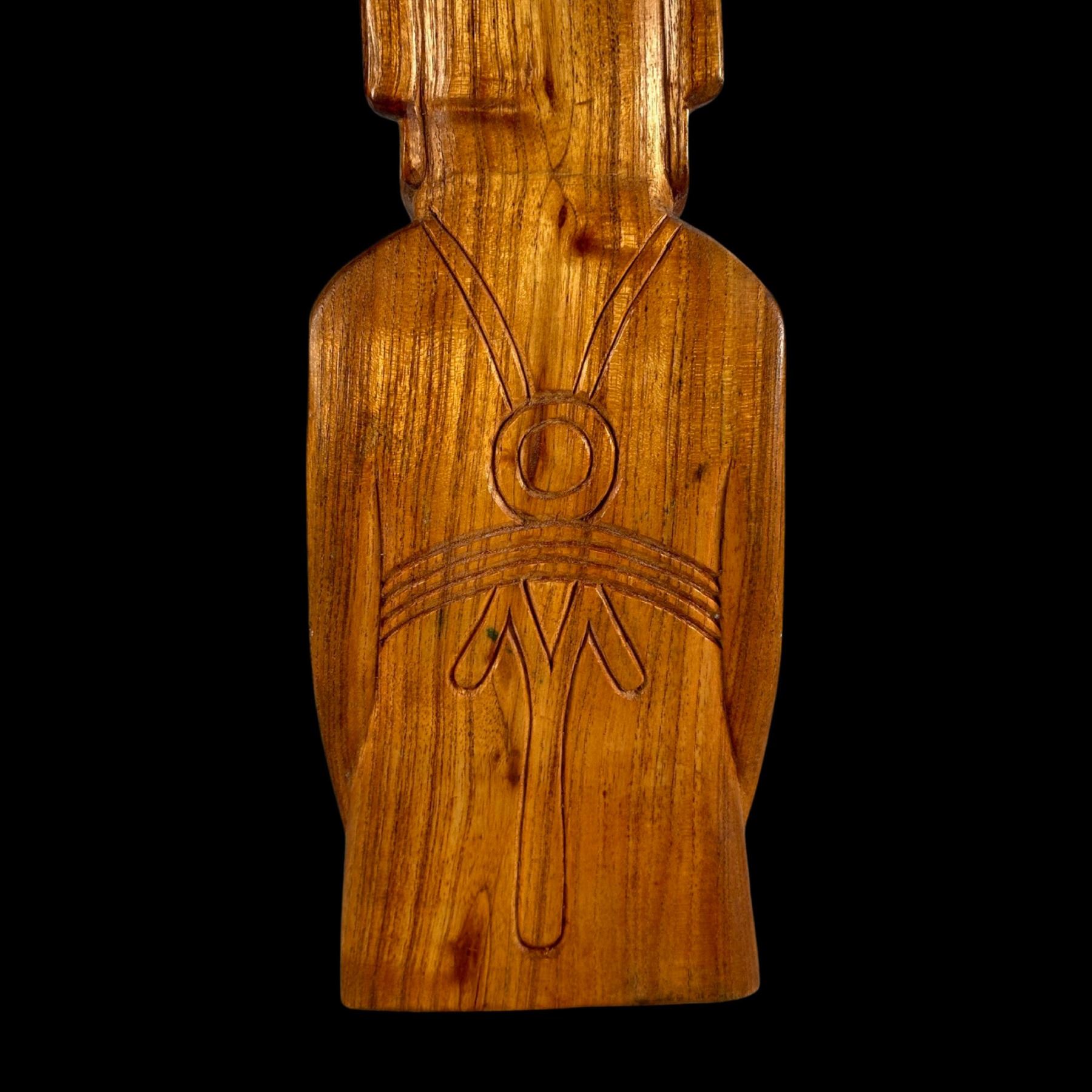(1960s) A very imposing rendering in hardwood of an Aku Aku Moai as seen on Easter Island. Complete with topknot and carved tattoo markings on the back of the figure. VG+ with minor wear. 5.5"x17.75"x4".