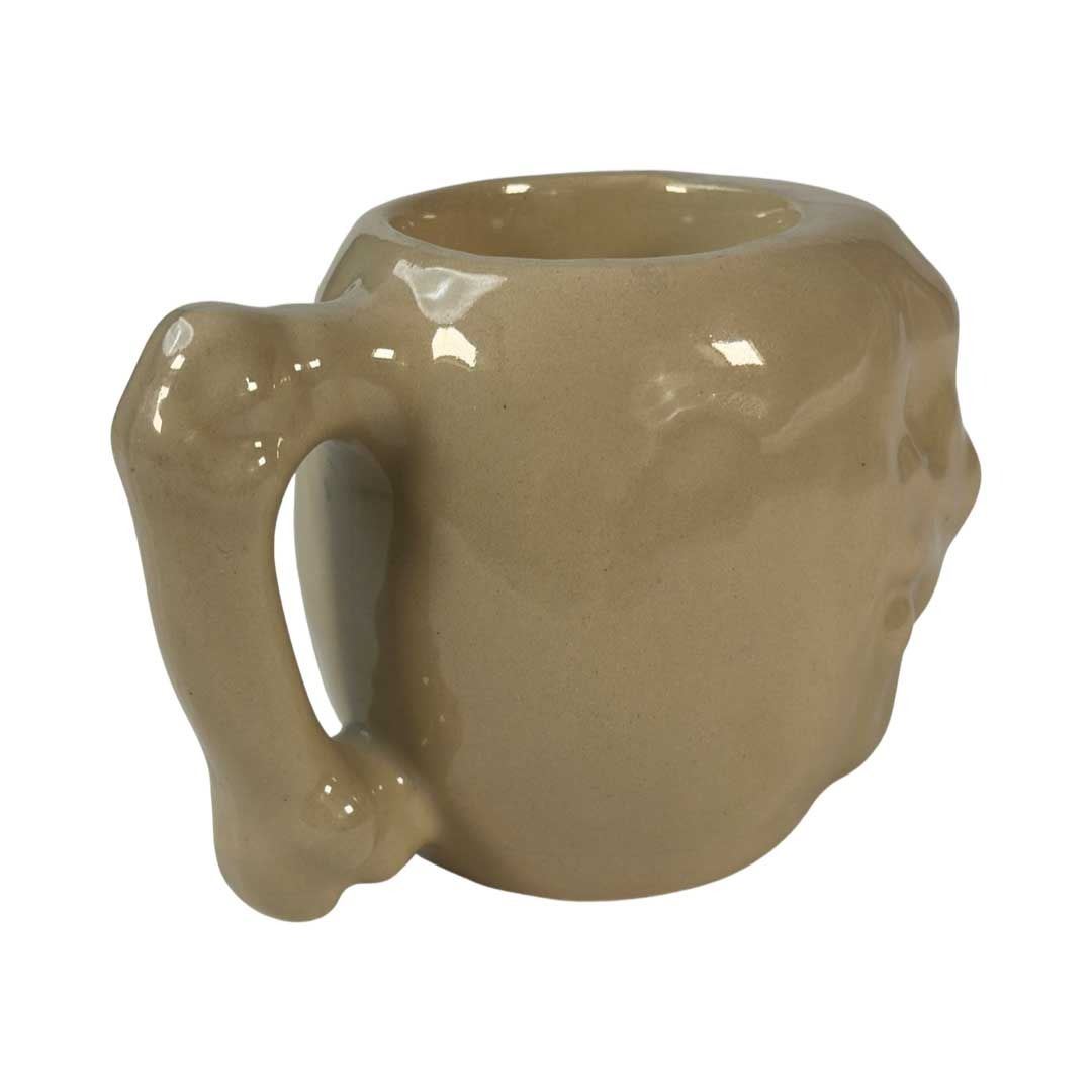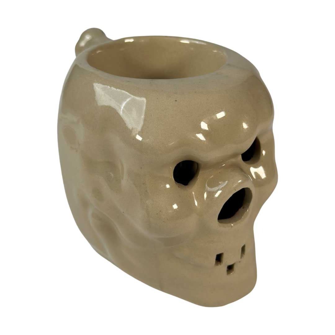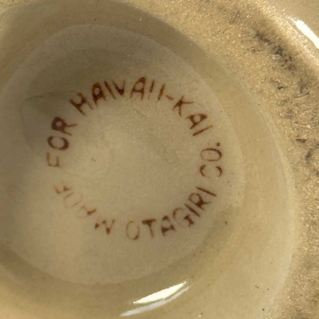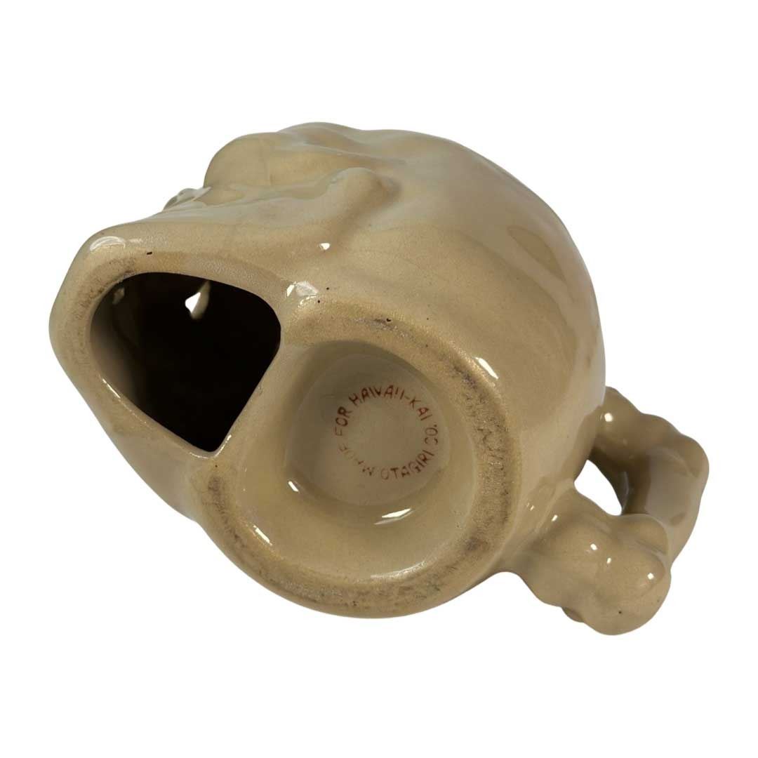 (1960s) The famous HAWAII KAI in New York City offered its fair share of wonderful drinkware in its cocktail menu. This large handled skull was purposely sold with hot drinks such as hot buttered rum. Manufactured by Otagiri and marked on the bottom 4.5"x6". VG+ with minor wear.