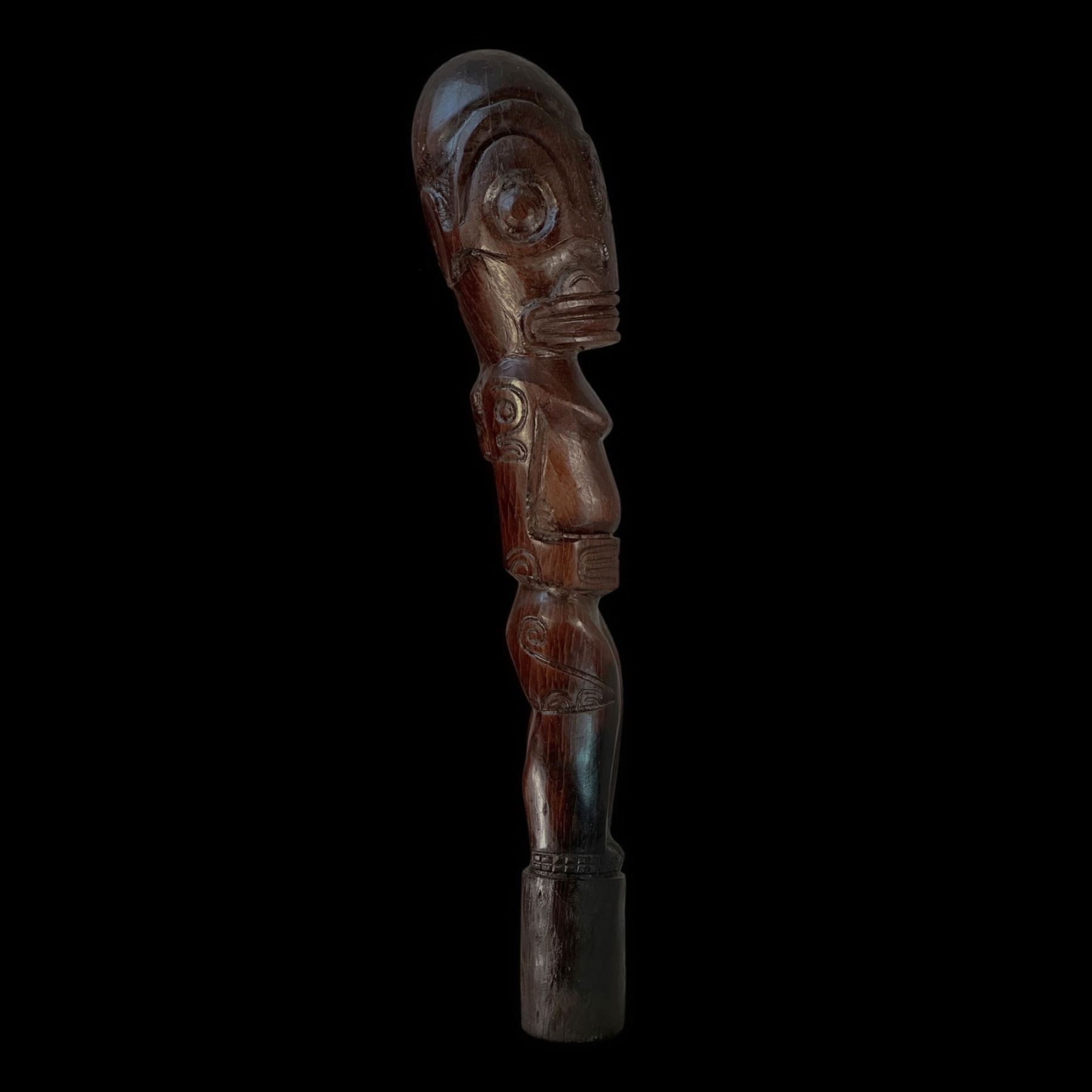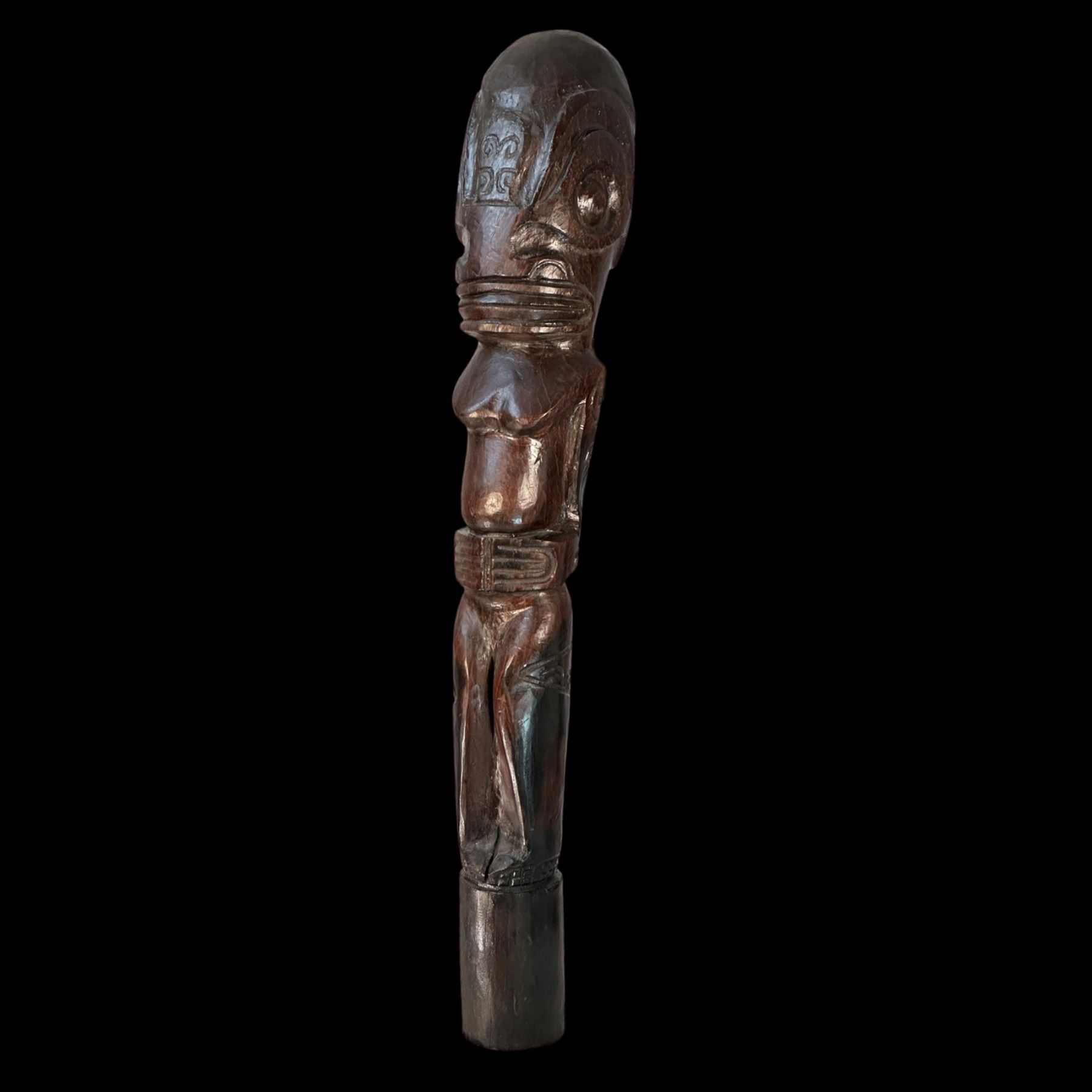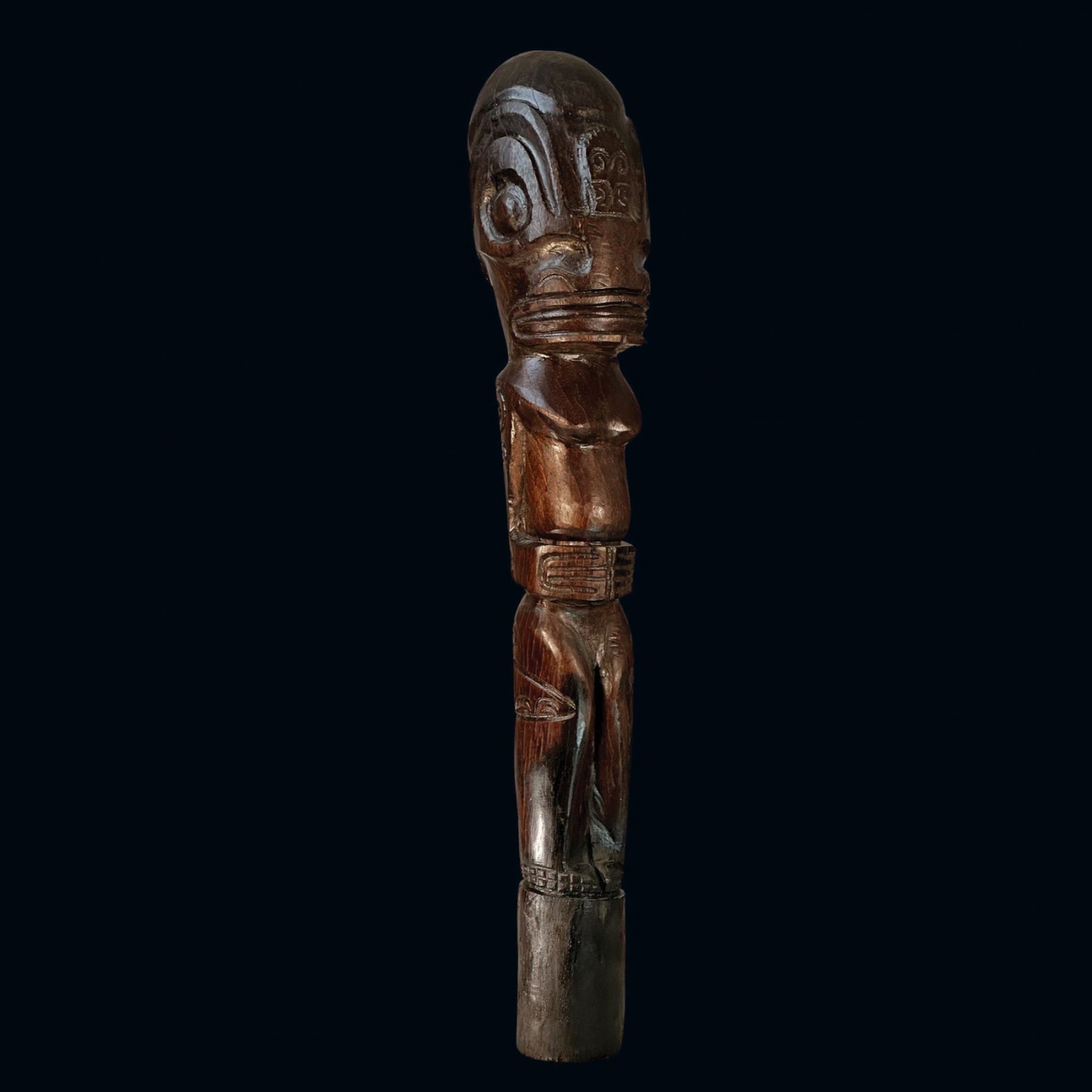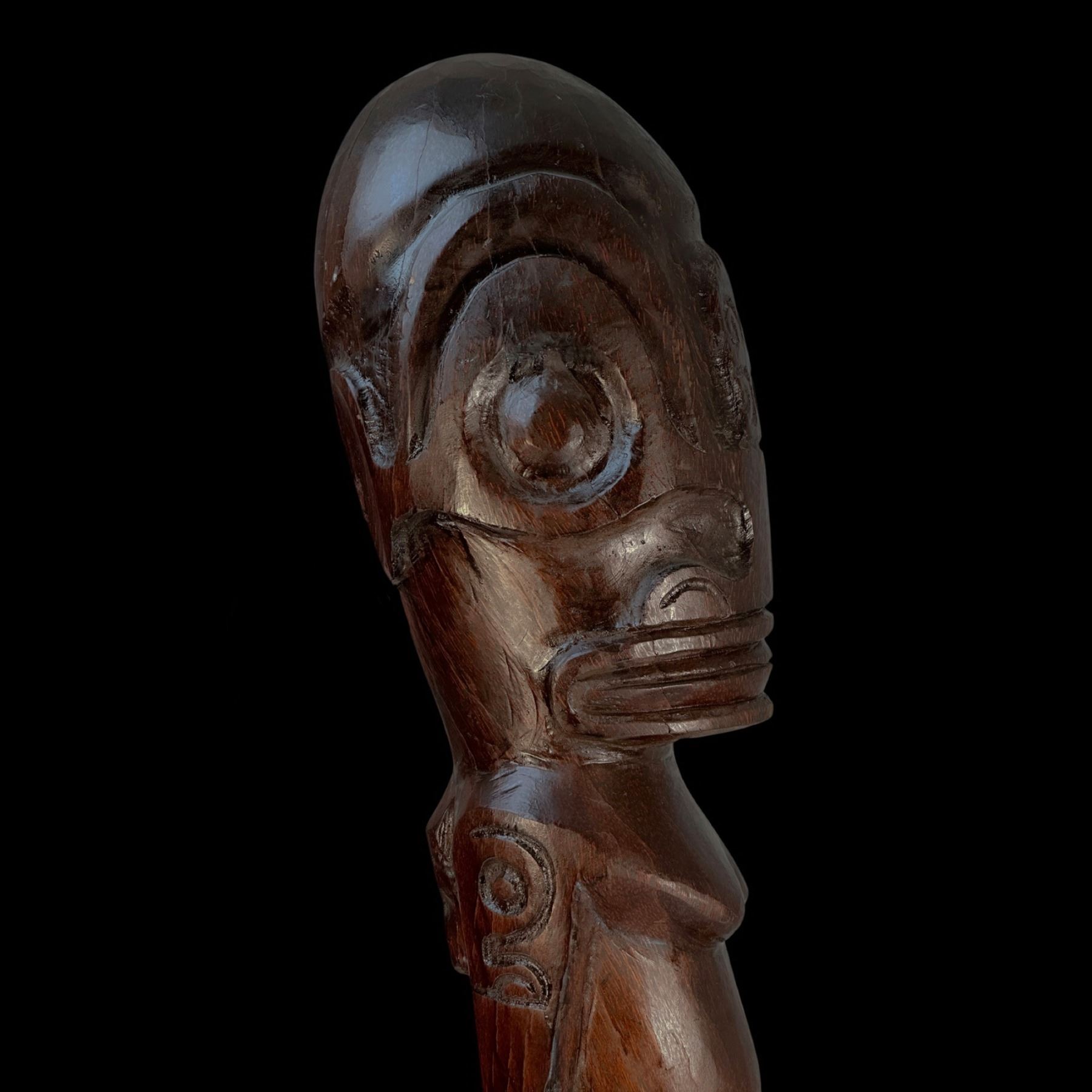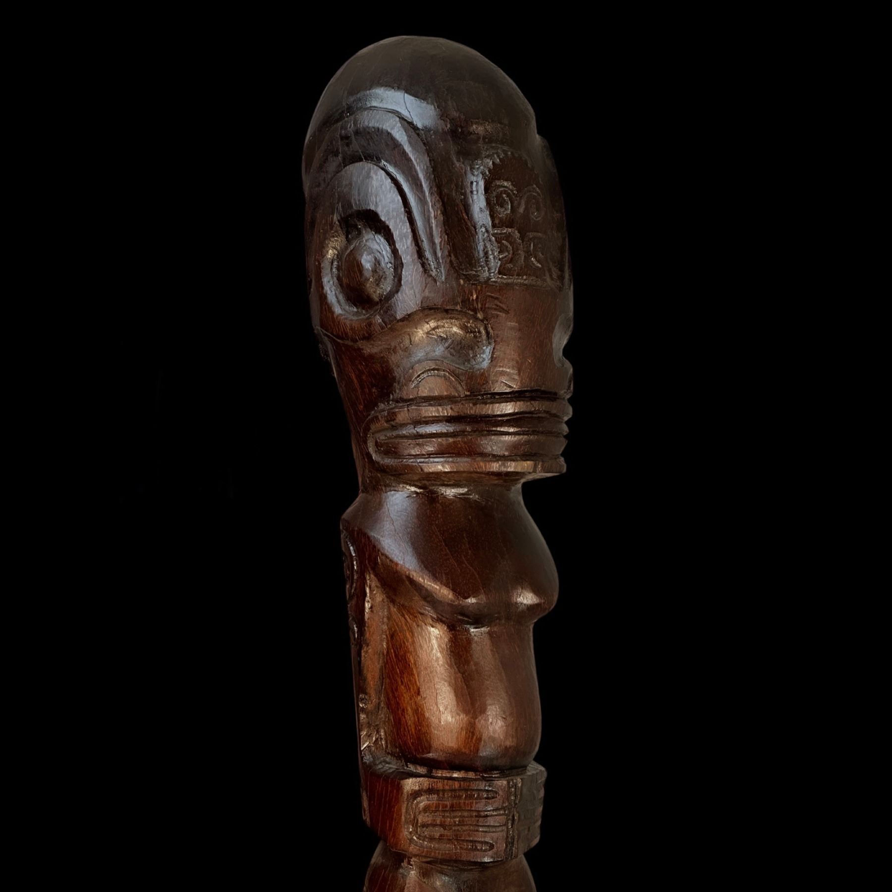 (1970s) Here is an incredible Marquesan Tiki that rarely comes on the market. This older carving most probably came from the Vic's Munich location and was moved to Berlin upon its opening in 2003. This location was basically short-lived, closing in 2009. This figure was the main Tiki on display in front of the location in Berlin. A handsome carving, it is the perfect size for a home bar: not too big, not too small. Acquired directly from Trader Vics.VG+ with typical wear. 15"dia x 76".