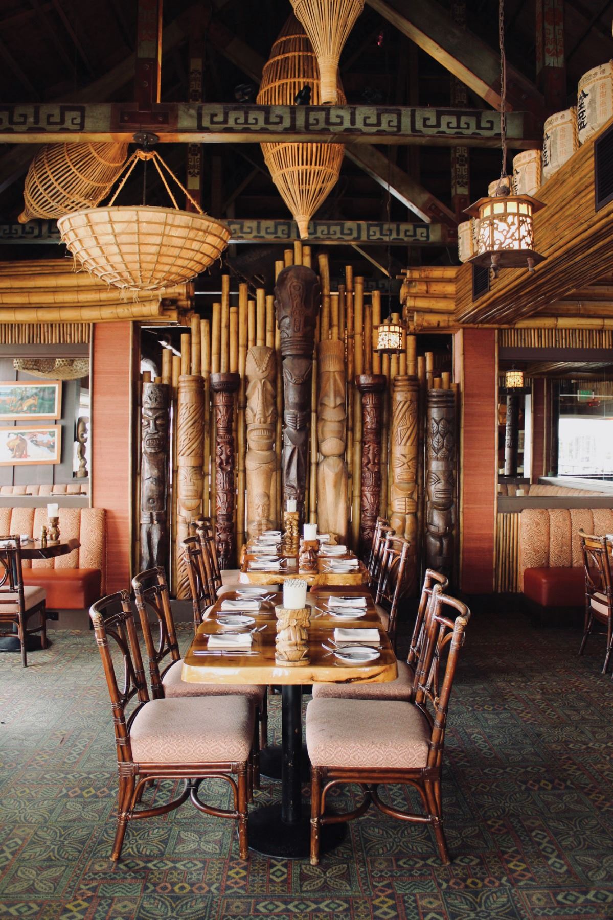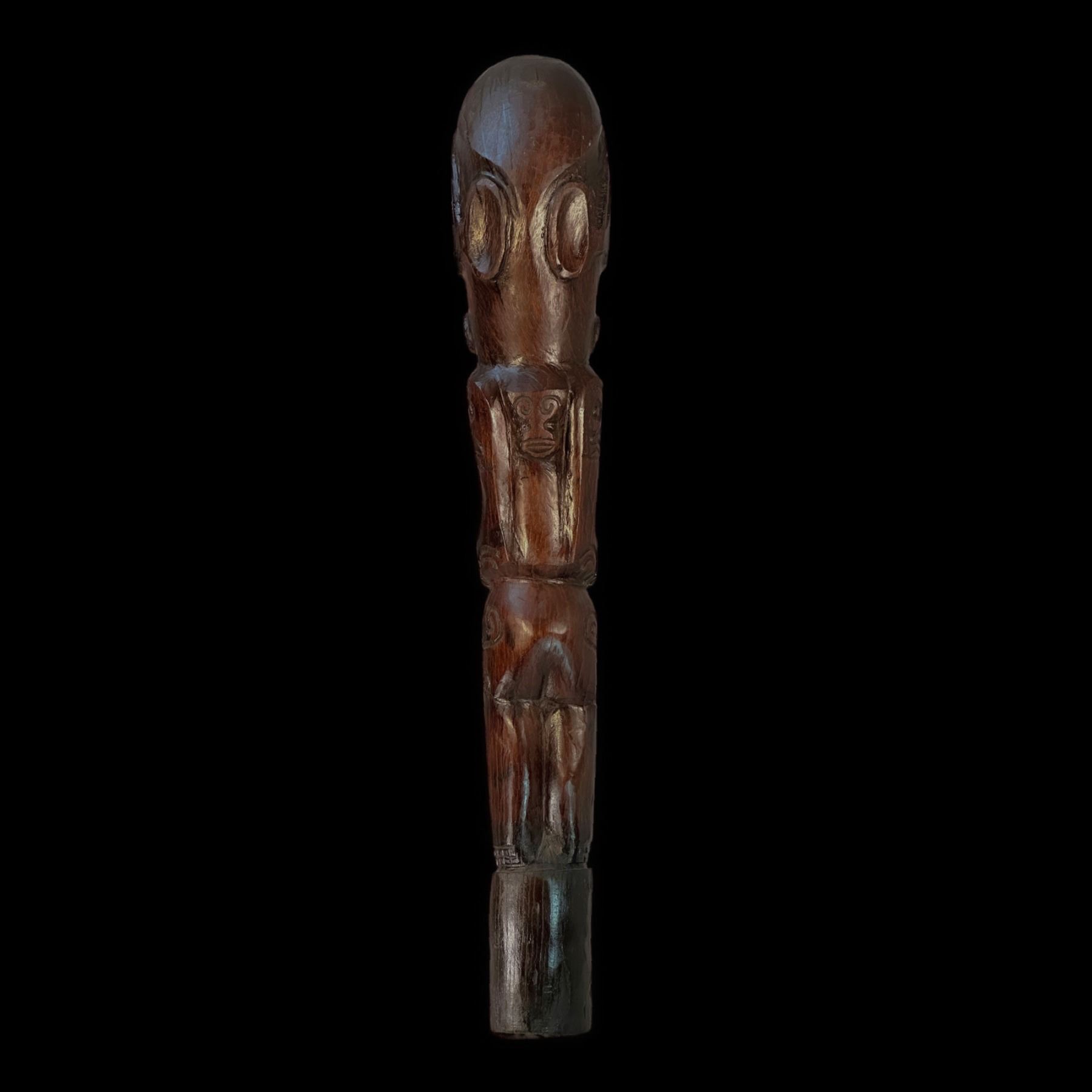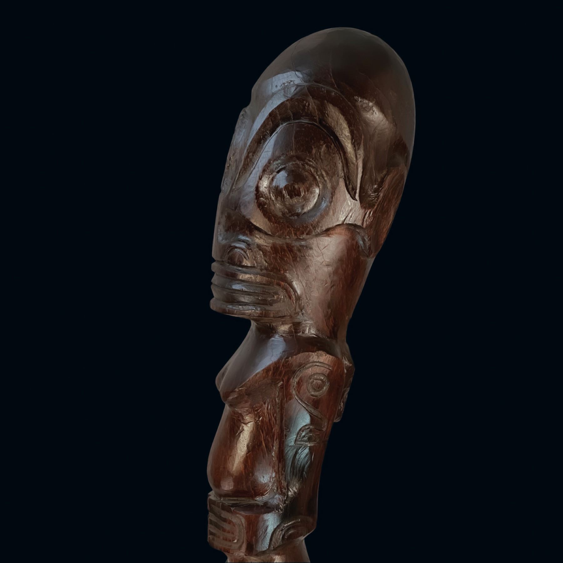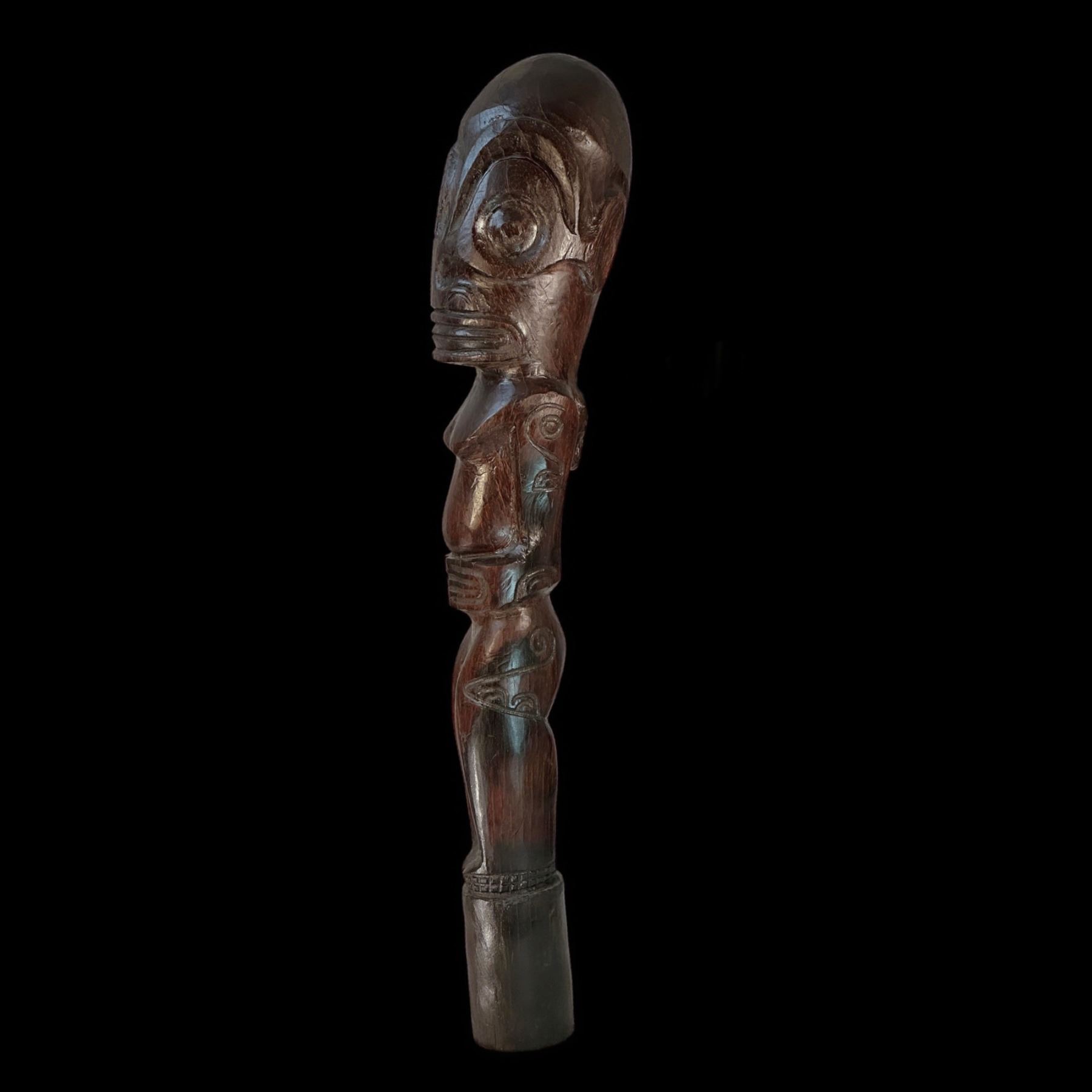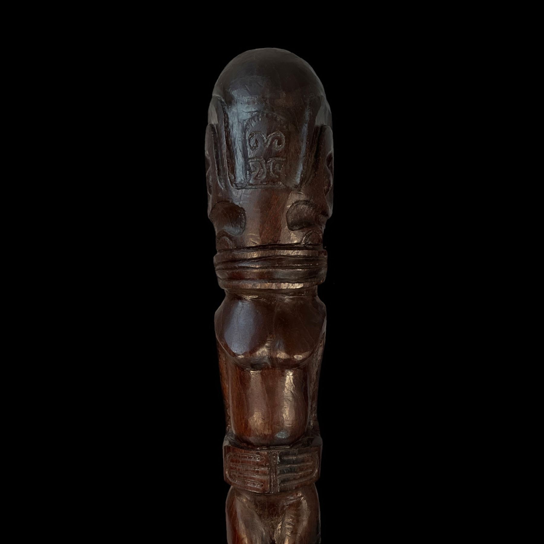 (1970s) Here is an incredible Marquesan Tiki that rarely comes on the market. This older carving most probably came from the Vic's Munich location and was moved to Berlin upon its opening in 2003. This location was basically short-lived, closing in 2009. This figure was the main Tiki on display in front of the location in Berlin. A handsome carving, it is the perfect size for a home bar: not too big, not too small. Acquired directly from Trader Vics.VG+ with typical wear. 15"dia x 76".