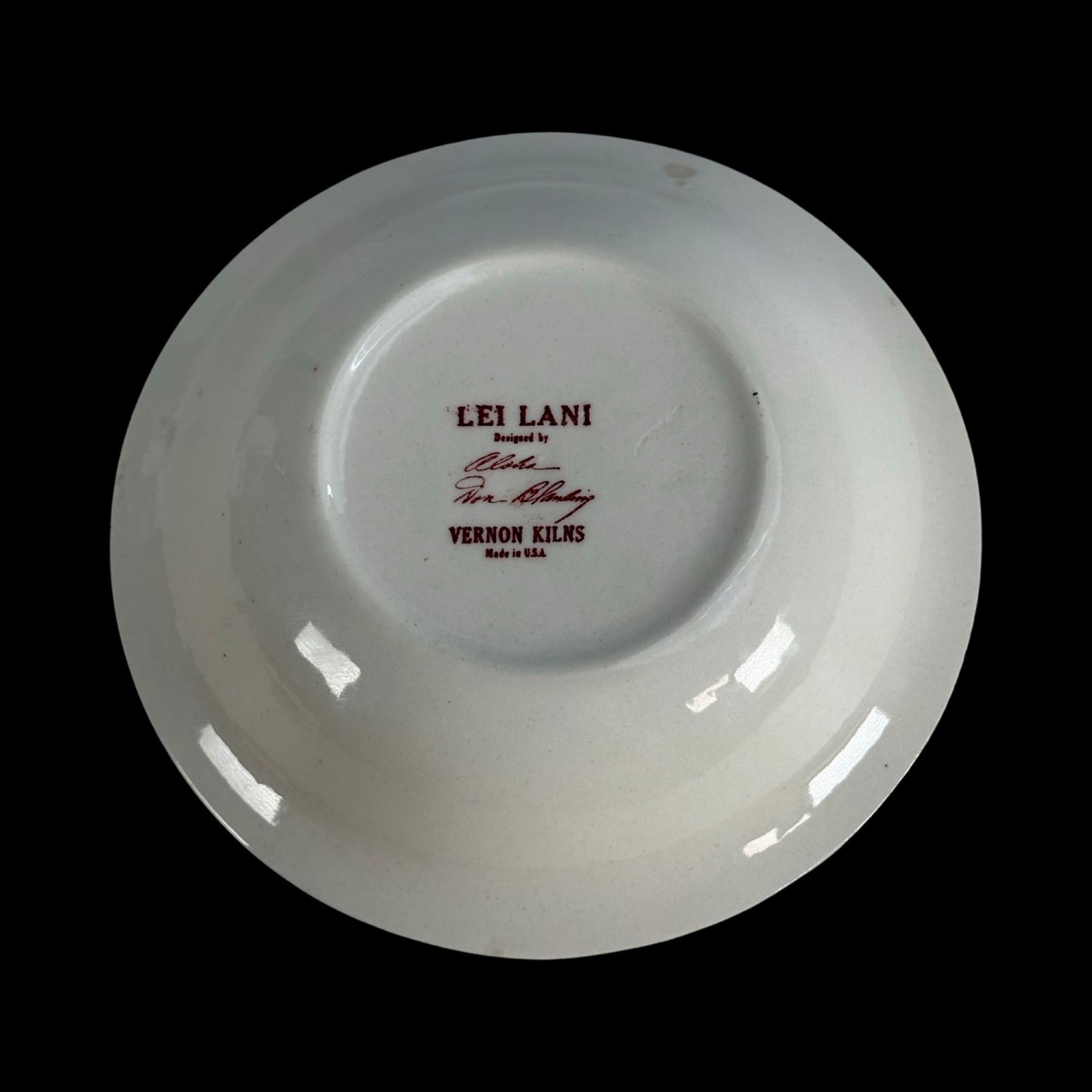 (1940s)* Simply beautiful floral design by the mythic influencer of Pacific-minded culture in the US, Don Blanding. VG+ with minor wear and glaze production spots on back. 5.5"dia x 1.25".