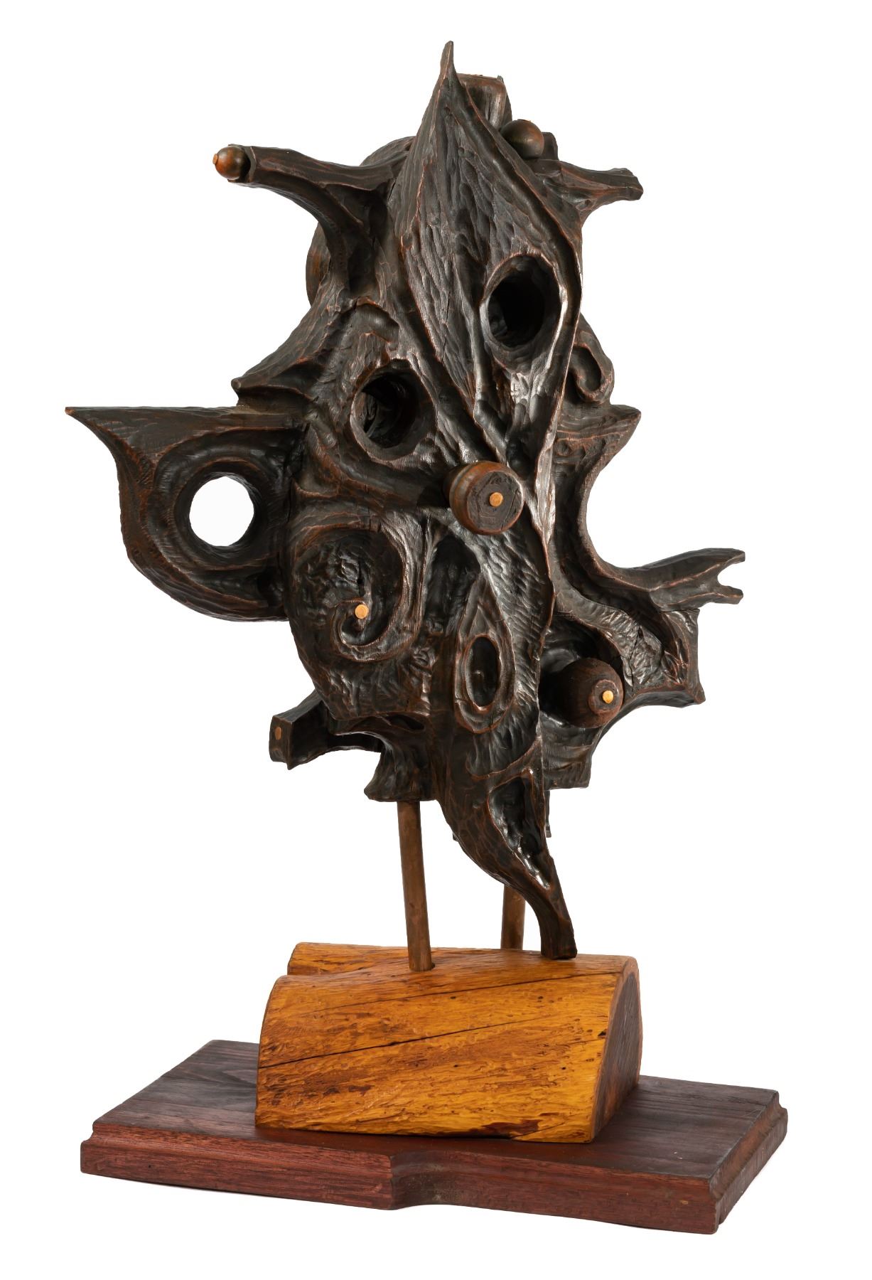 LEROY SCHMALTZ "EL GALLO PHANTOM" CARVED MODERN-BRUTALIST ABSTRACT SCULPTURE.