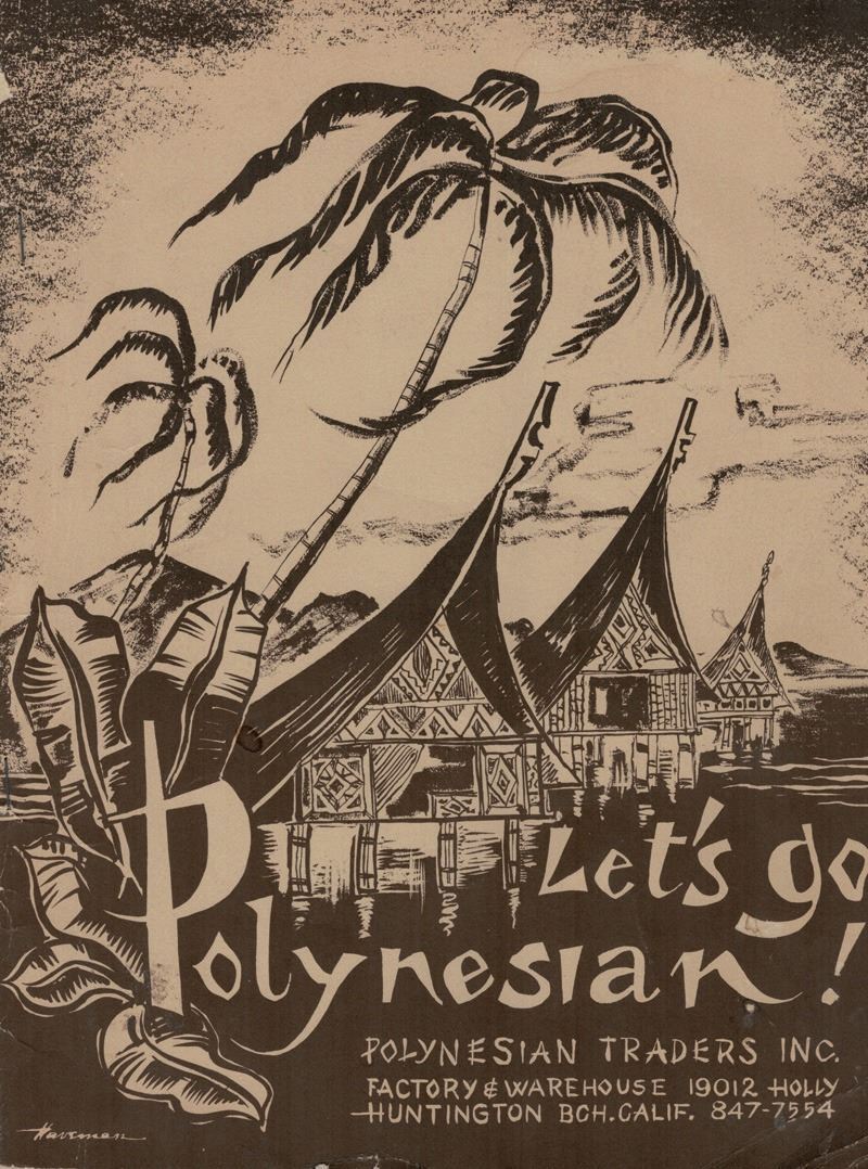 (1960s) "Polynesian Traders" was a contemporary decor company to OA. It was located in Huntington Beach, CA and owned by DOUG BRANCH. 20 pages and fully illustrated.11"x 8.5".VG with some chipping and light creasing.