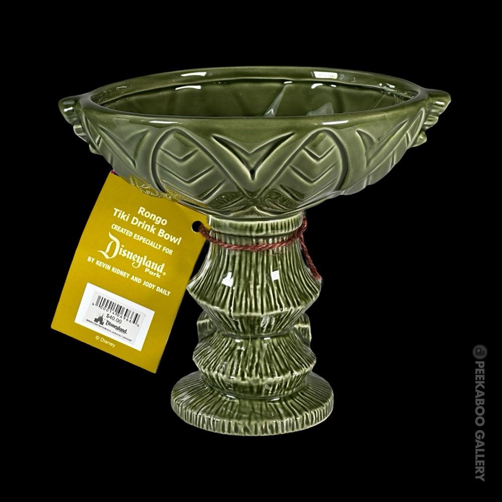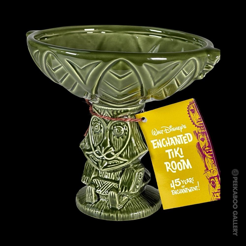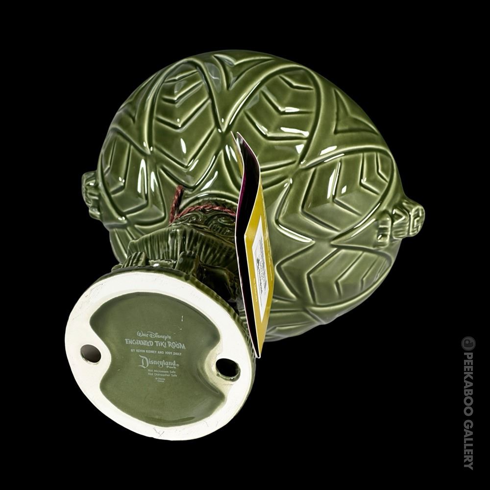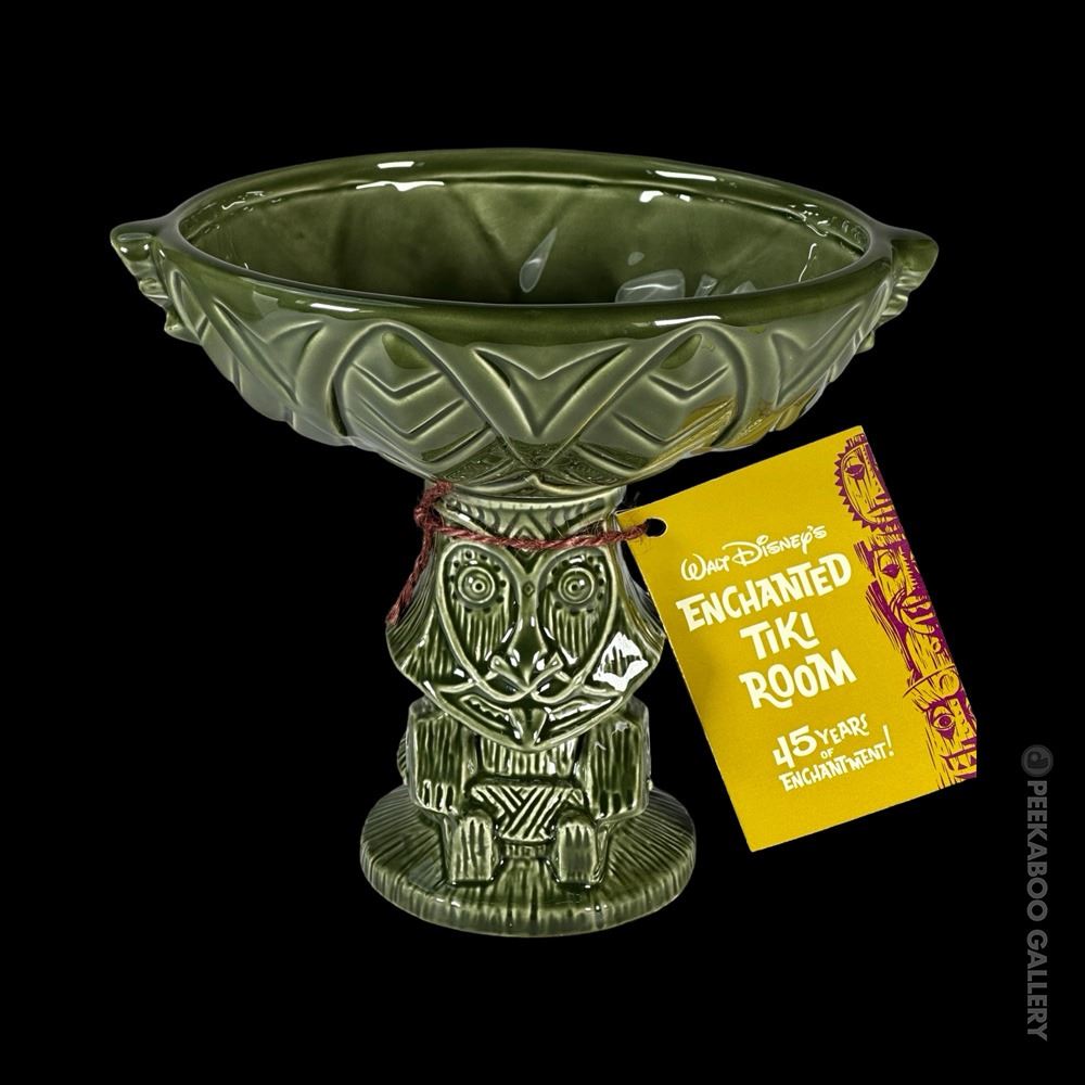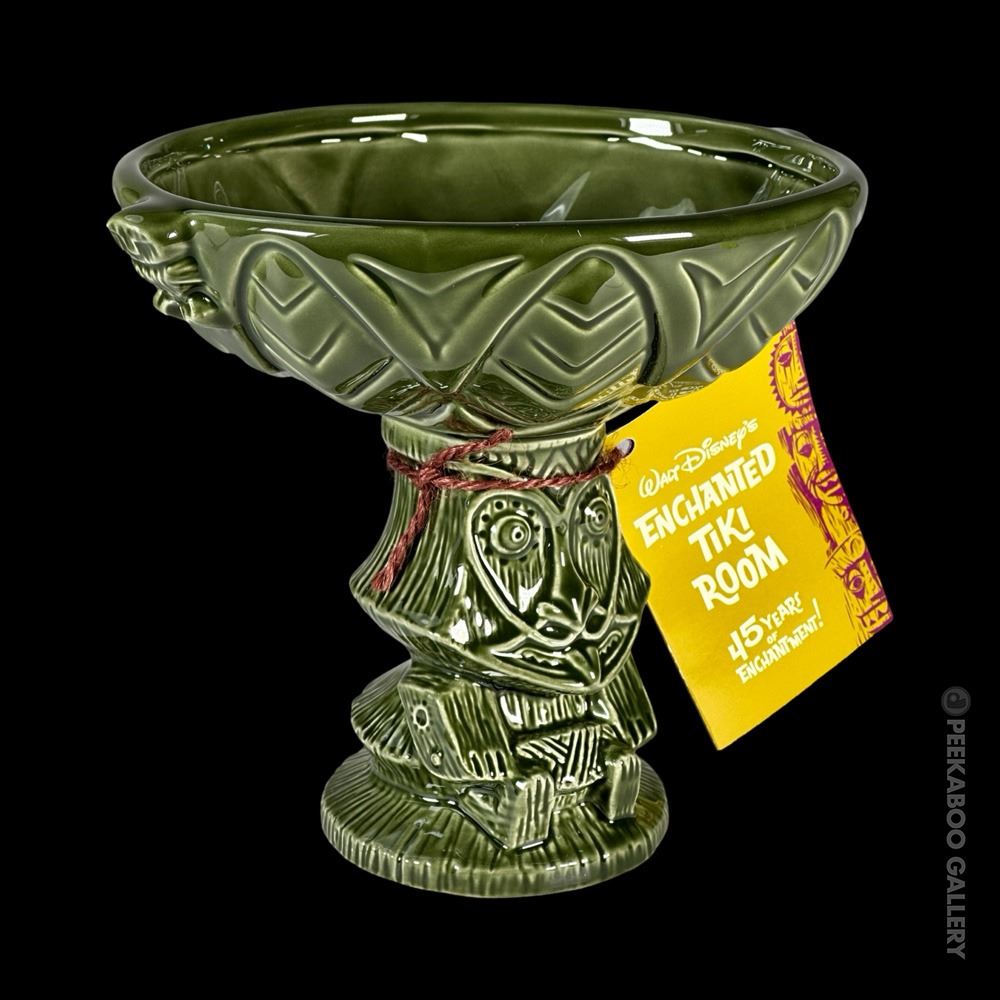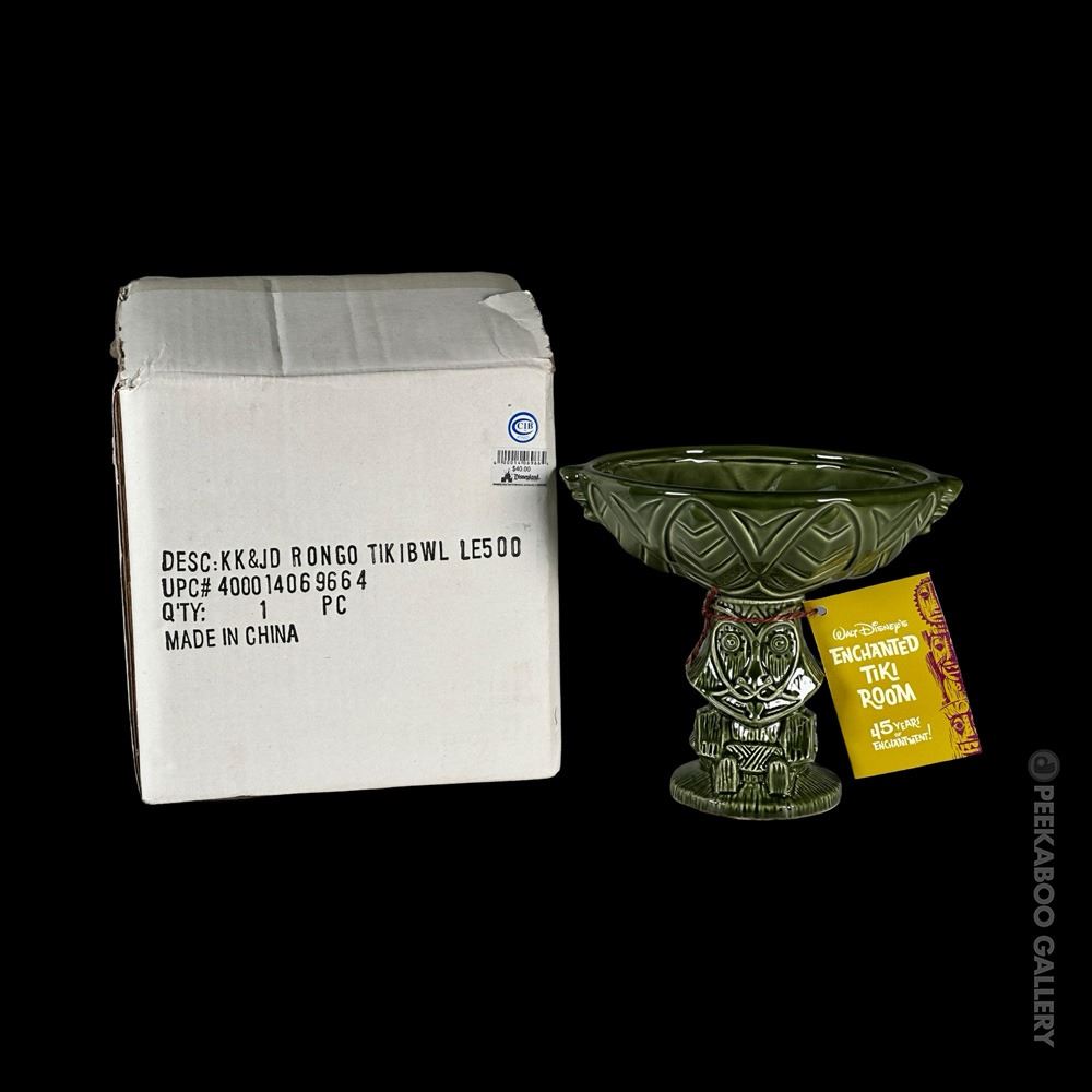 (2001) Kevin Kidney & Jody Daily were the first Disney artists to recognize the value of the Enchanted Tiki Room for the Tiki Revival. The Rongo bowl is one of the first pieces they designed for Disney in 2001. This is the full green version. Limited to only 500 pieces worldwide. VG+ with orig hang tag and orig box. 6.75"x7.75"dia.