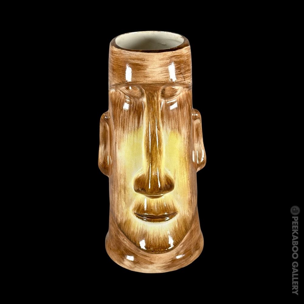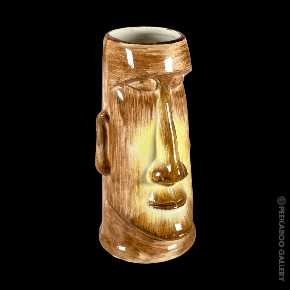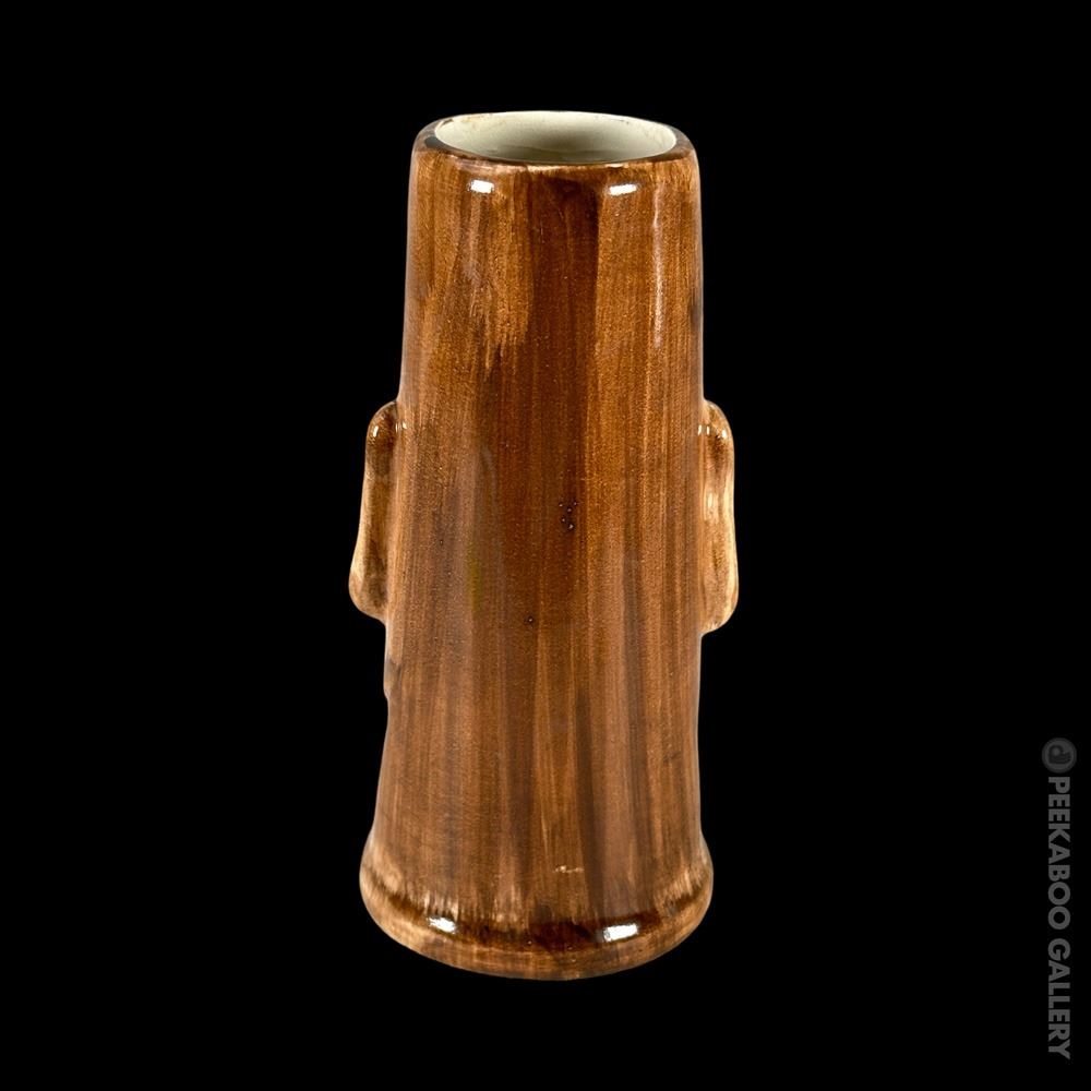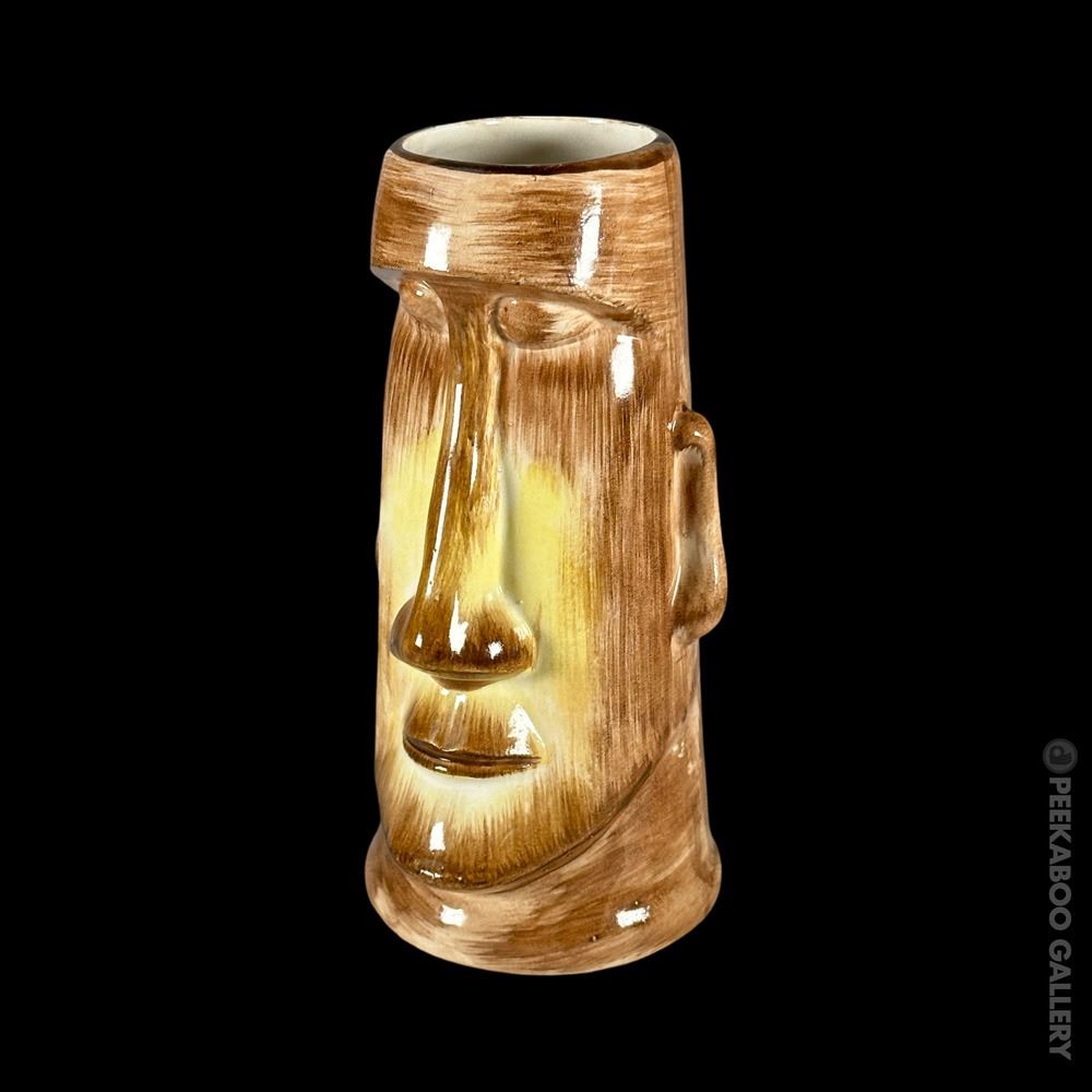 (1950s) Skipper Kent's in San Francisco is one of the elusive early Tiki establishments that pre-date the boom in late 1950s. This large mug is one of the best dimensional Moais to come out of the movement. It also features an excellent dry brush accent technique in the glazing. Marked under the base. VG+ with typical wear. 7.75"x4.25"dia.