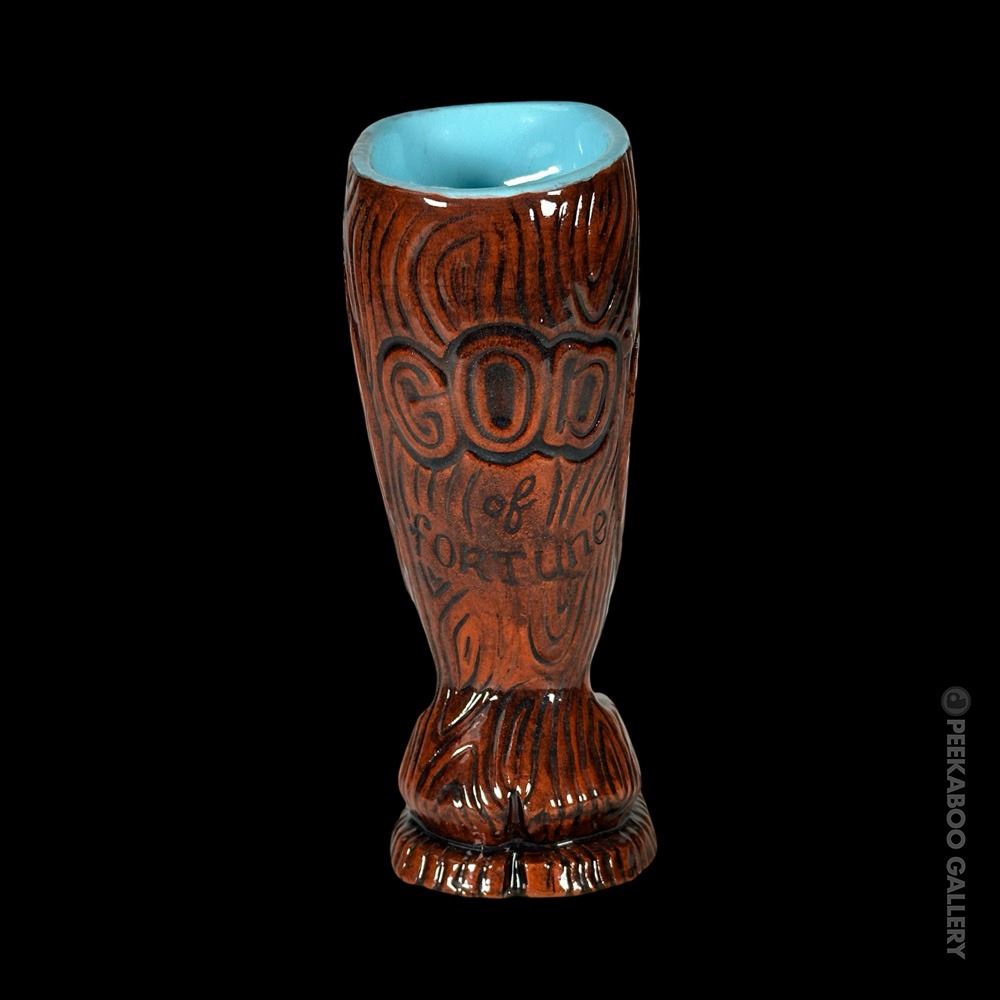 (2011) Designed and produced by Bai Tiki in France. Styled after the God OF Fortune tiki from WITCO. The colored tongue is a limited edition mug. VG+. 7.5"x2.75"x4.5".
