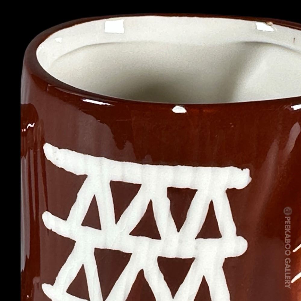 (1980s) This is a later Dynasty Wholesale version of the famous Abelam hot grog mug for MAI-KAI. VG+ with small production flaw on inner rim. 3.5"x5"dia.
