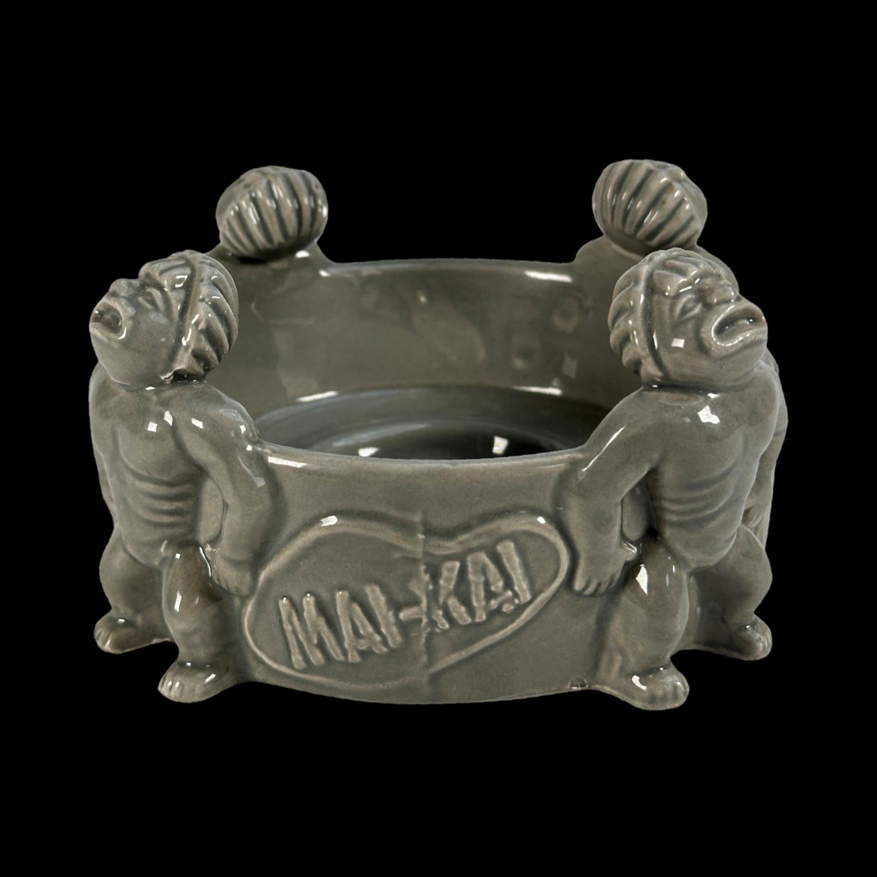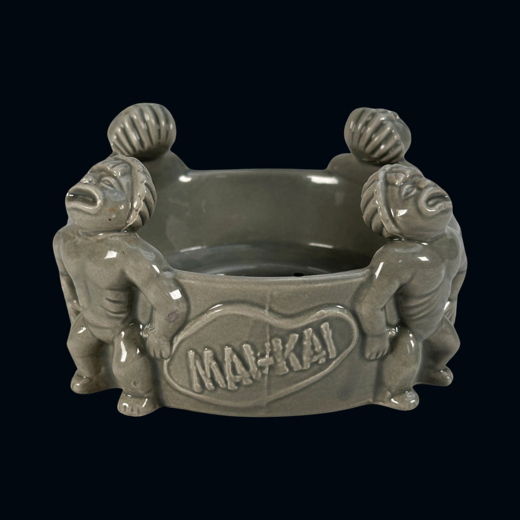 (2011) An incredible homage to the MAI-KAI's famous and first generation Mystery Bowl by SWANK PAD aka Tim Glazner. Tim authored the wonderful history book of the subject: MAI-KAI: History & Mystery of the Iconic Tiki Restaurant. Signed in silver ink on bottom. VG+ with minor edge flea bites. 5.75"dia x 3".