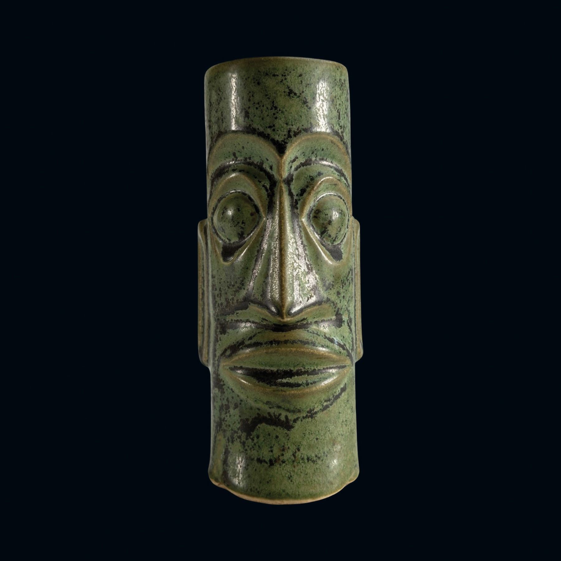 MARK THOMAS OUTRIGGER SIGNATURE MOAI TIKI MUG w/ ORIGINAL OMC STICKER.