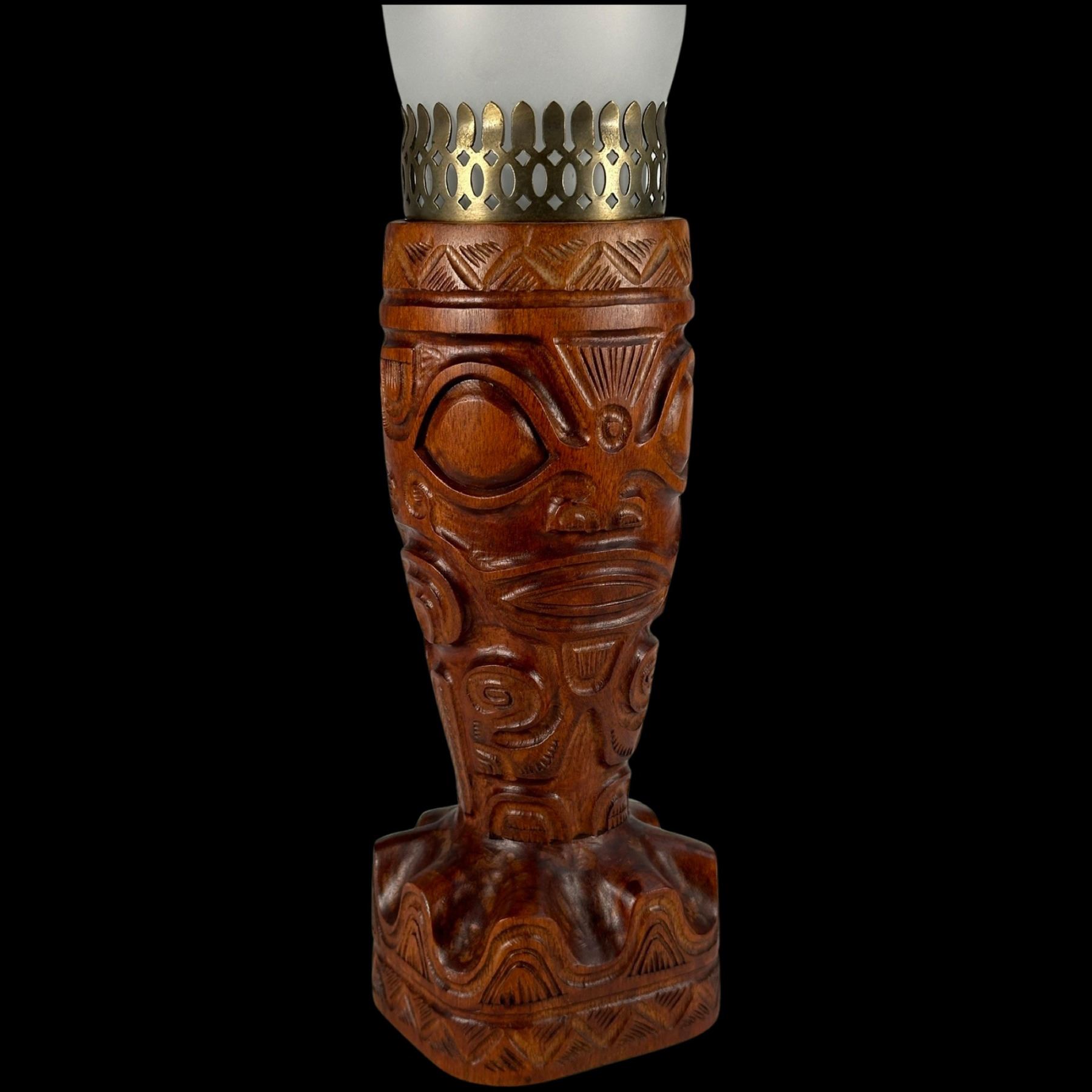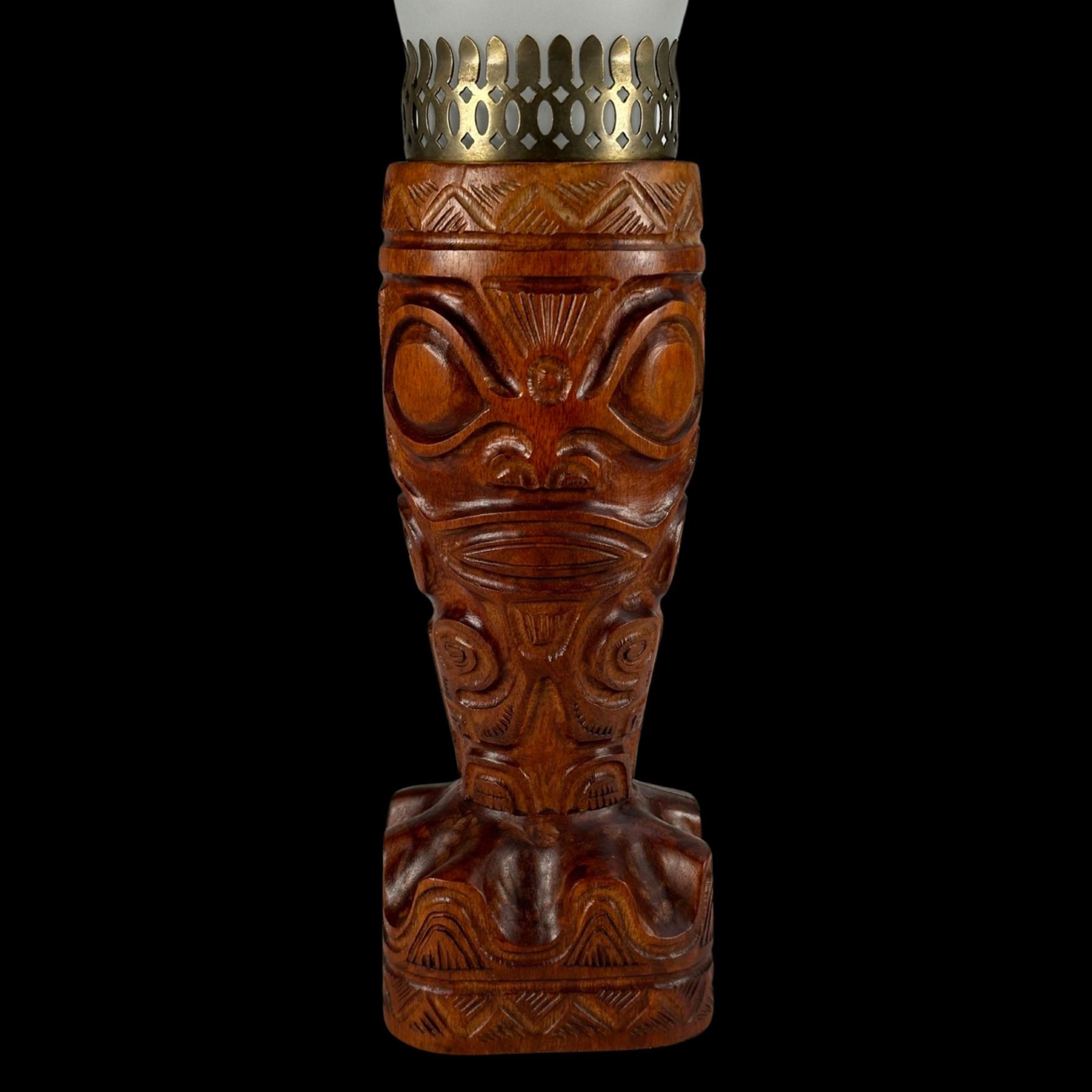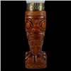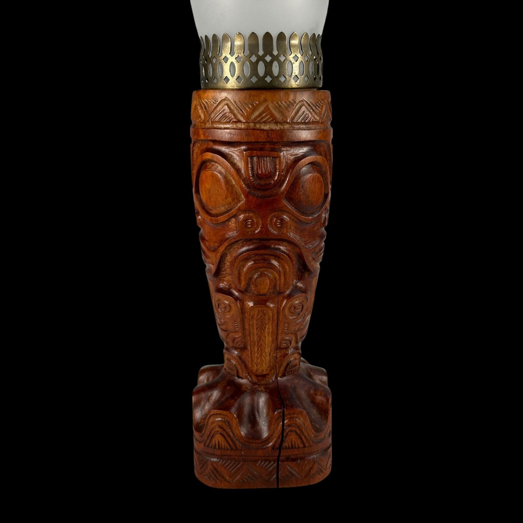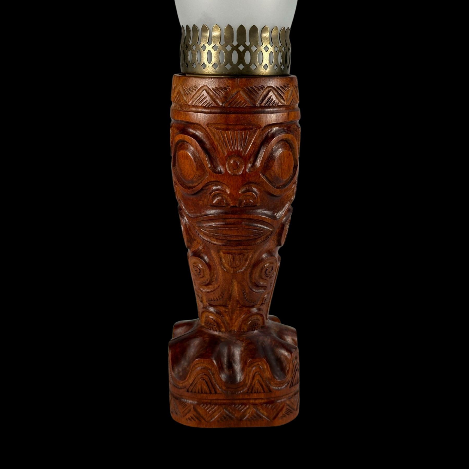 (1960s) An incredible double-sided carving of a Marquesas-Tahitian ceremonial drum. VG+ with minor wear. 7"dia x 17.5".