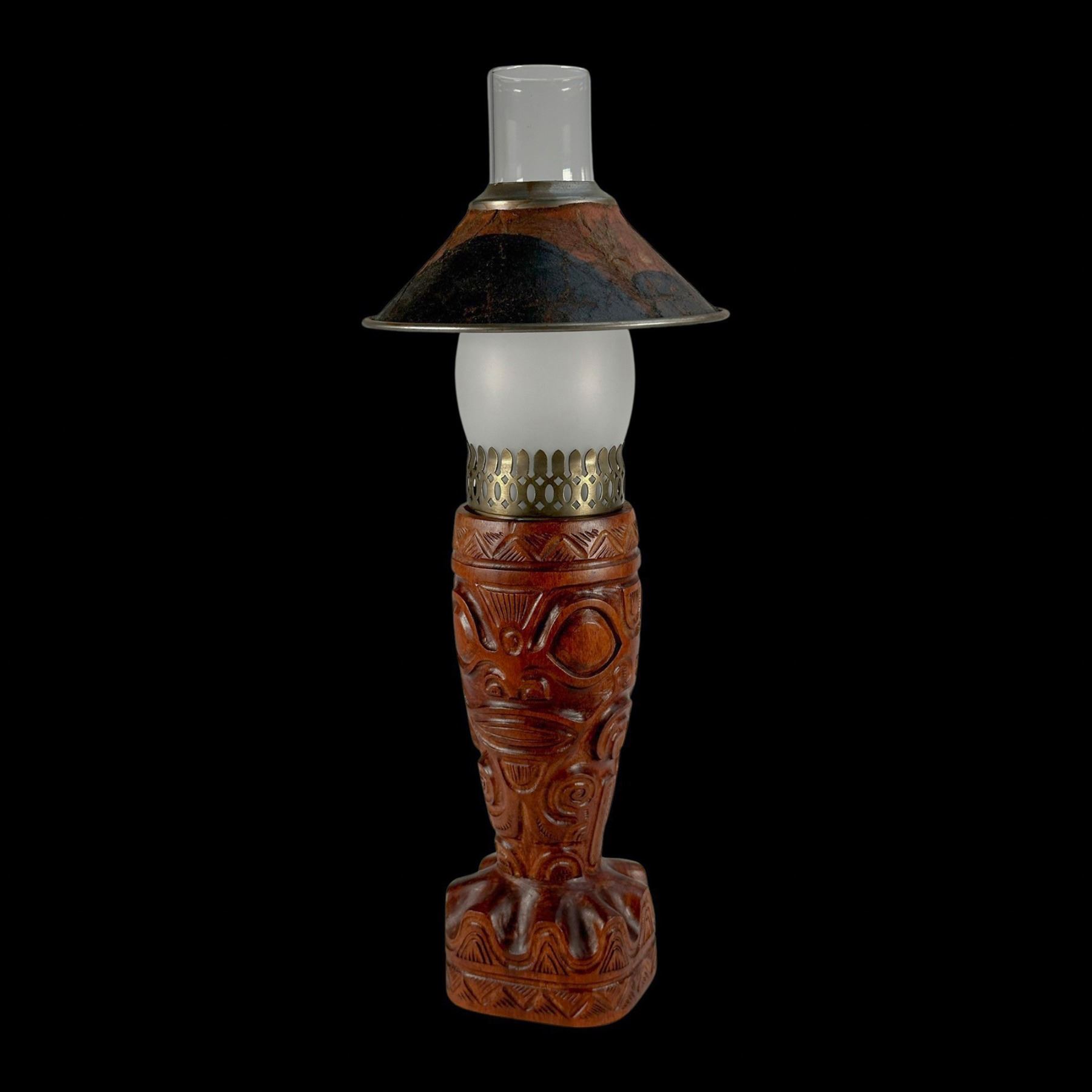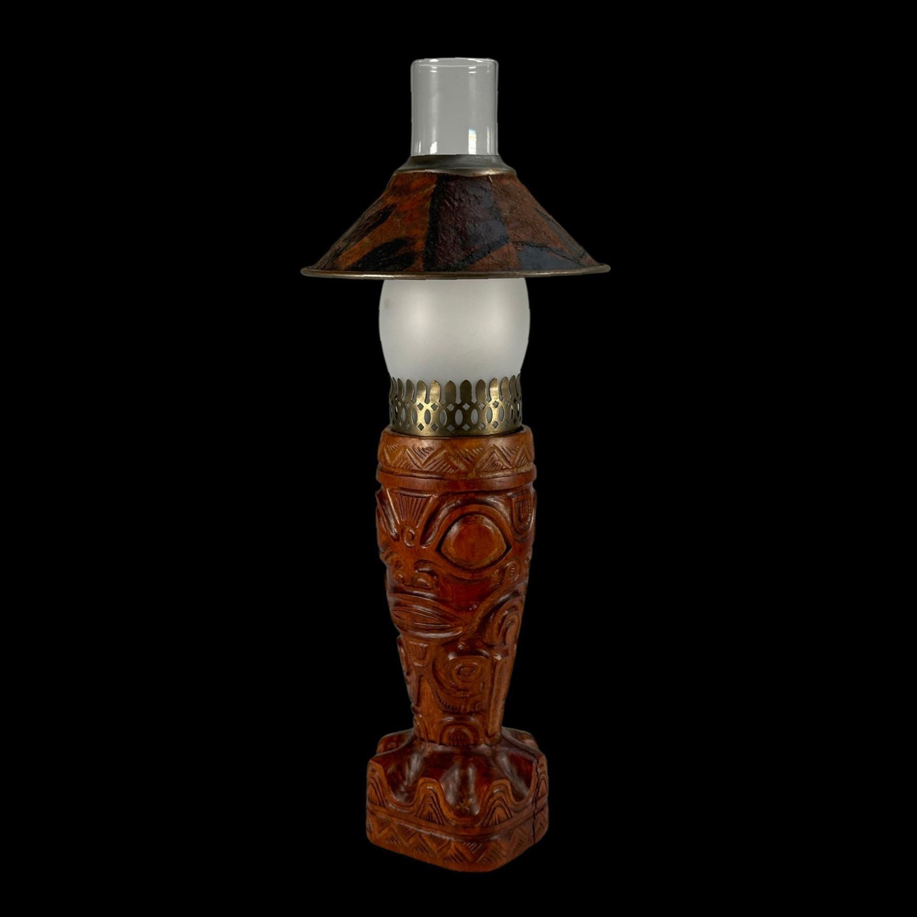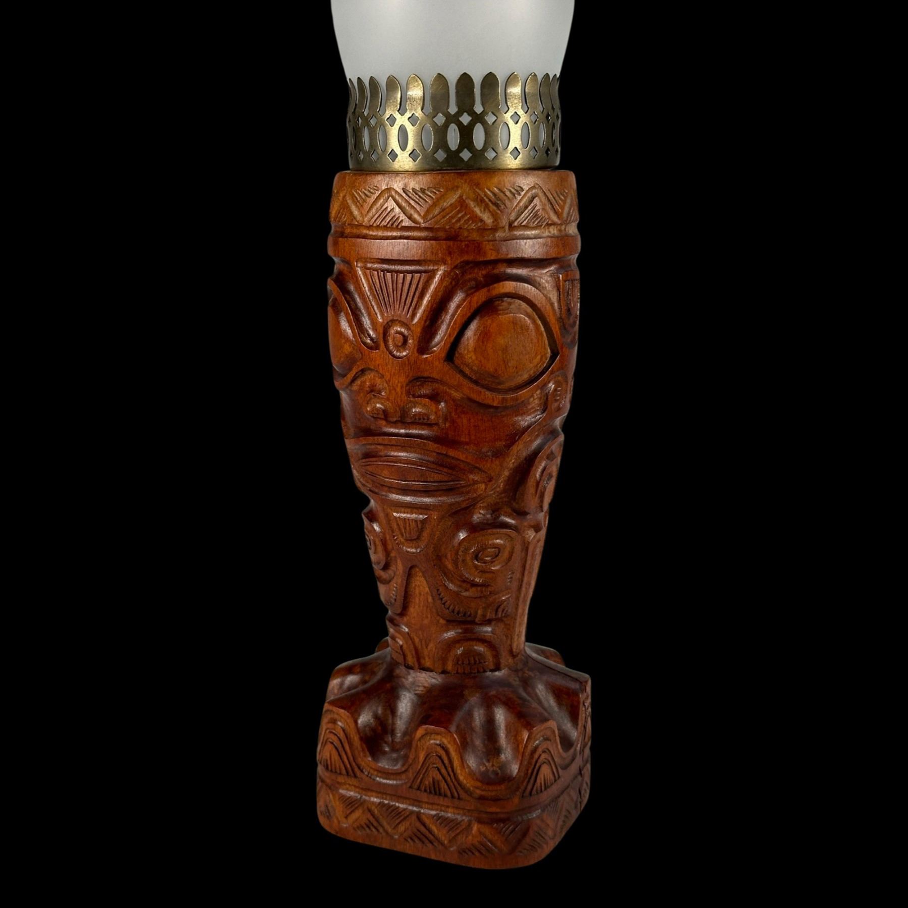 (1960s) An incredible double-sided carving of a Marquesas-Tahitian ceremonial drum. VG+ with minor wear. 7"dia x 17.5".