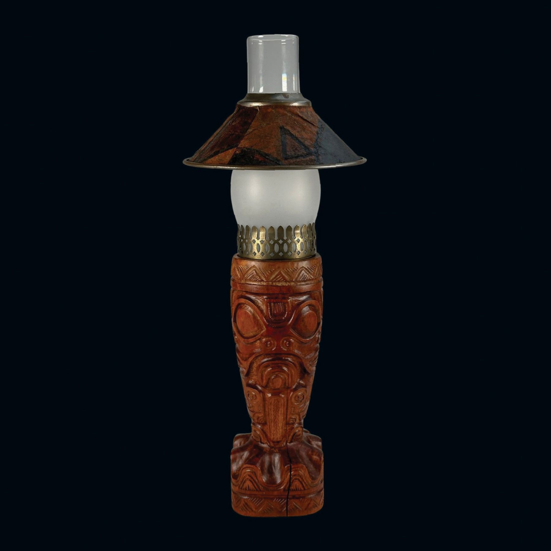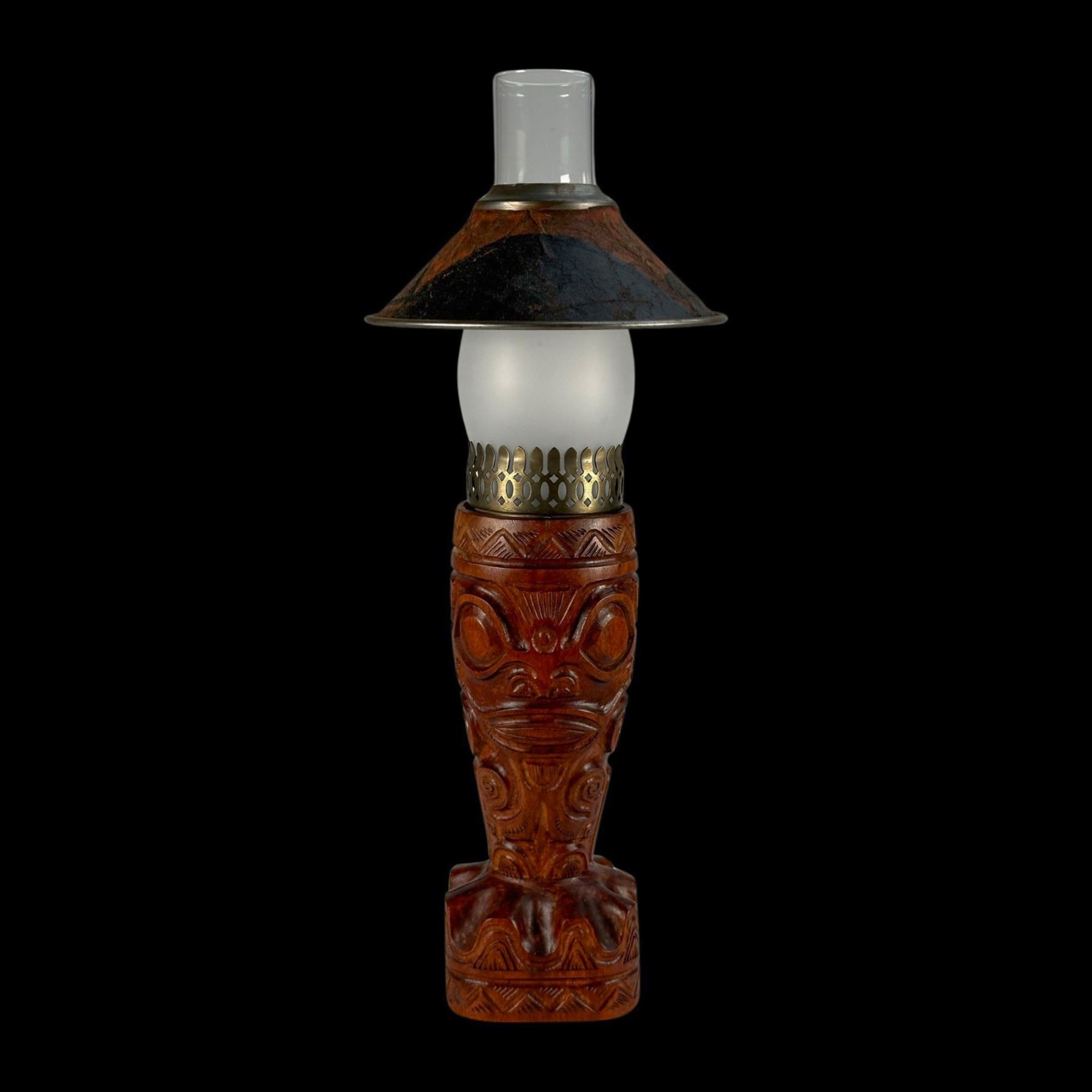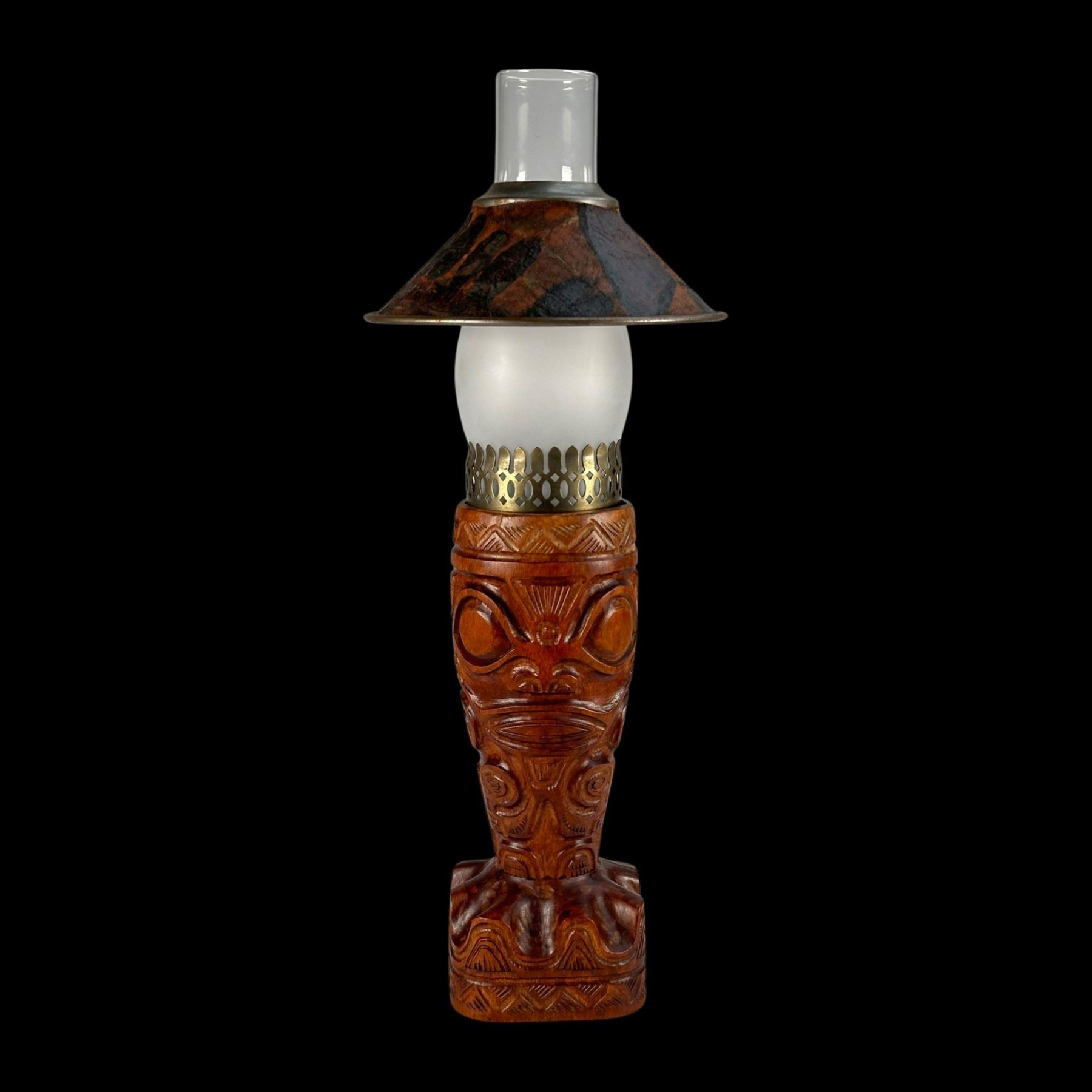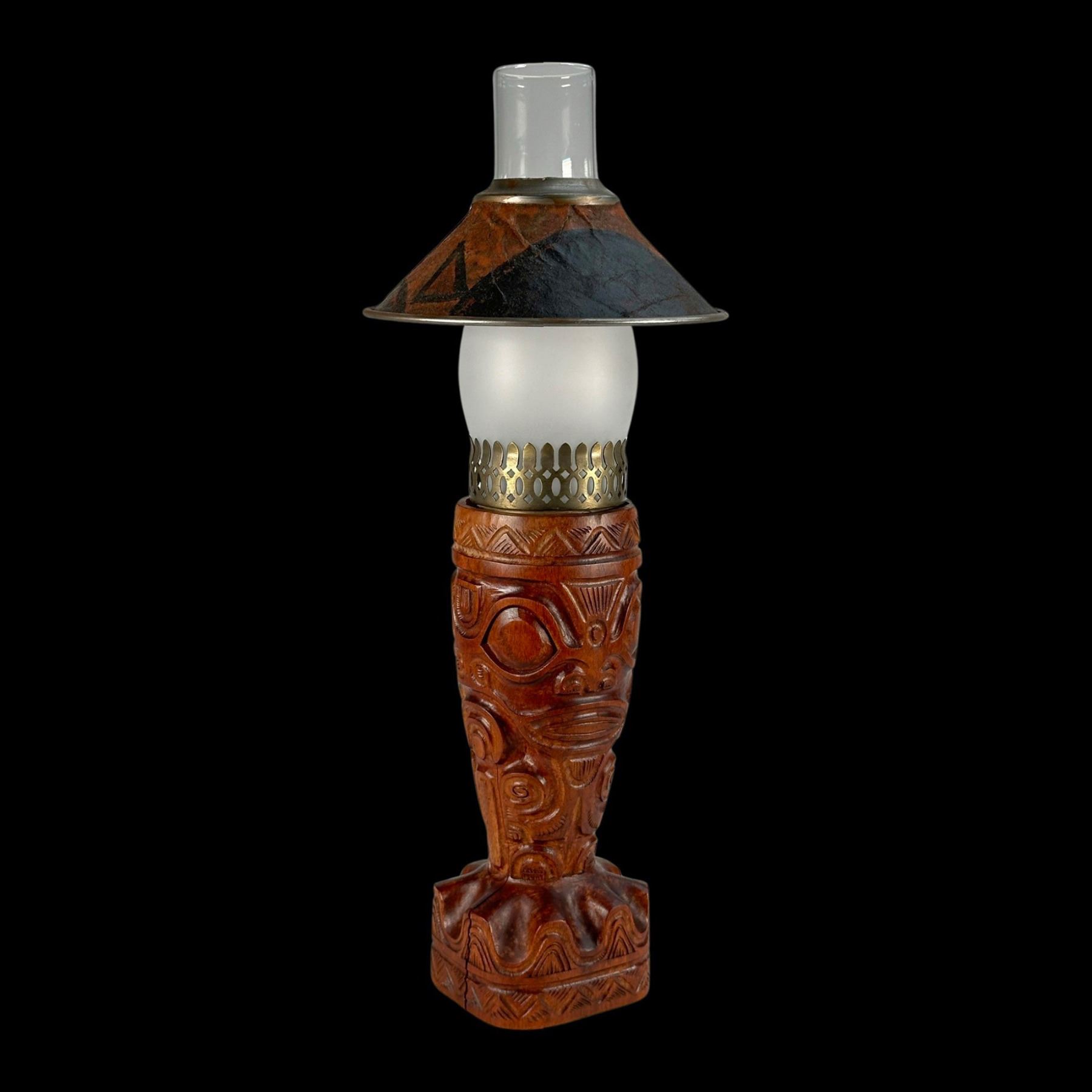 (1960s) An incredible double-sided carving of a Marquesas-Tahitian ceremonial drum. VG+ with minor wear. 7"dia x 17.5".