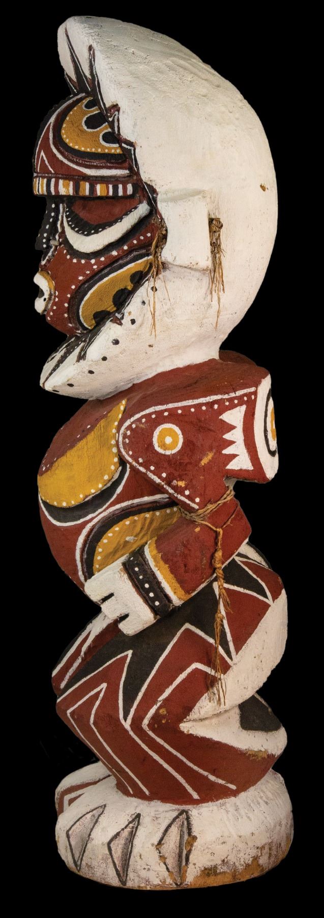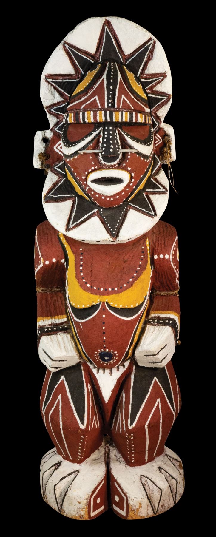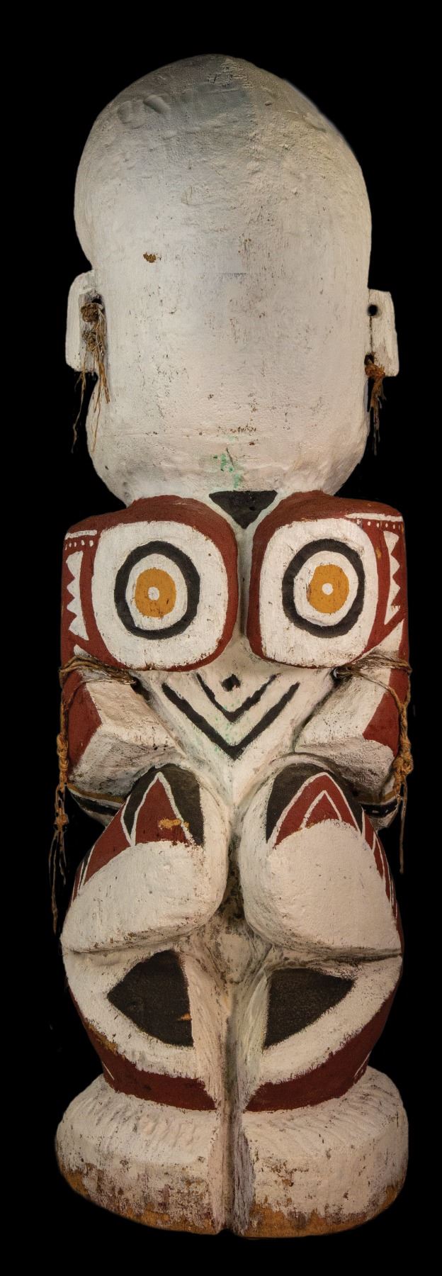 (1960s) A substantial carving by the master, LeRoy Schmaltz. Aged polychrome color treatment with raffia tassels. 83"x15"x13". VG+ with typical wear.