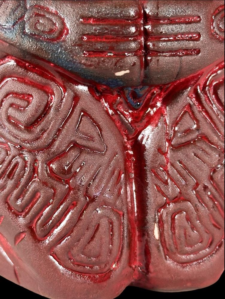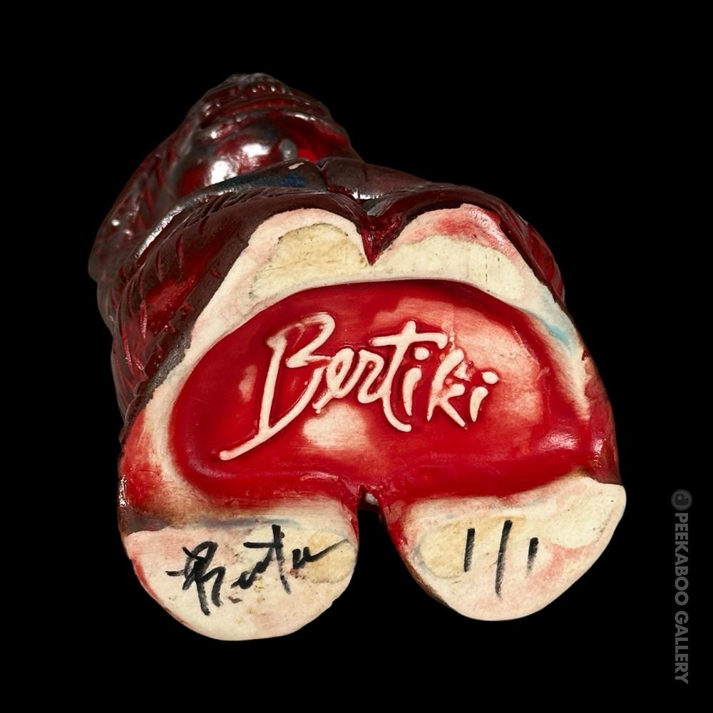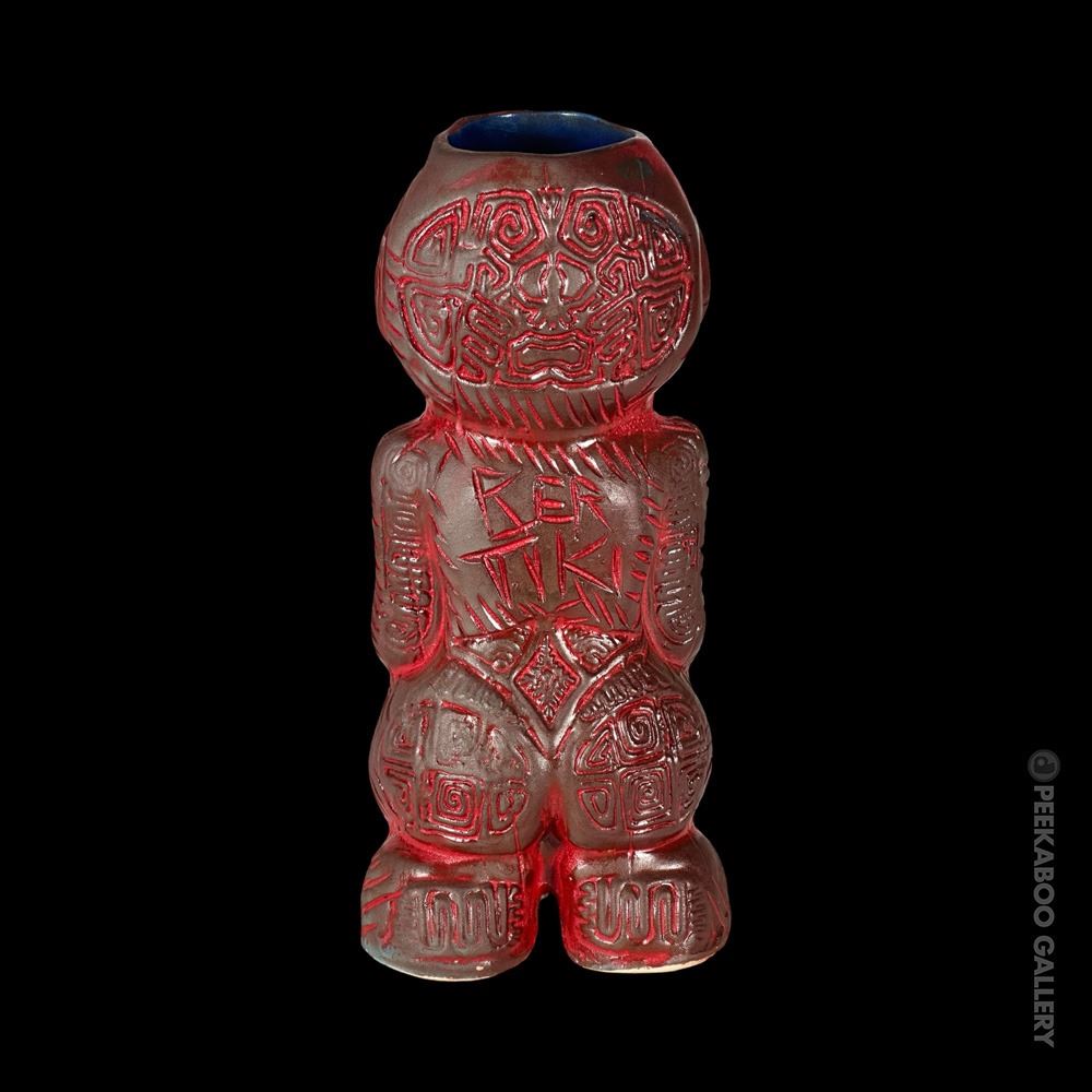(2021) This is a 1/1 made by Jerry "Bertiki" Berta from Max's South Seas. Based on the 1st Edition run of only 60 mugs in this glaze. This one has custom eyes. Hand signed and numbered on bottom. (????). 8.75"x4"dia.