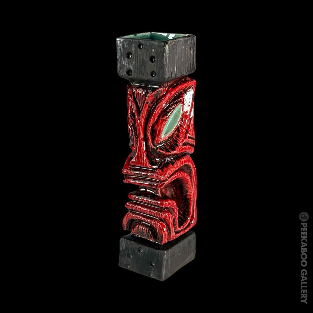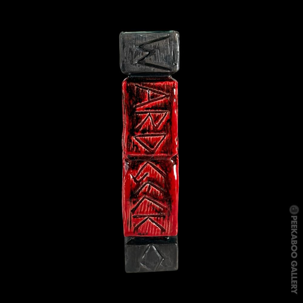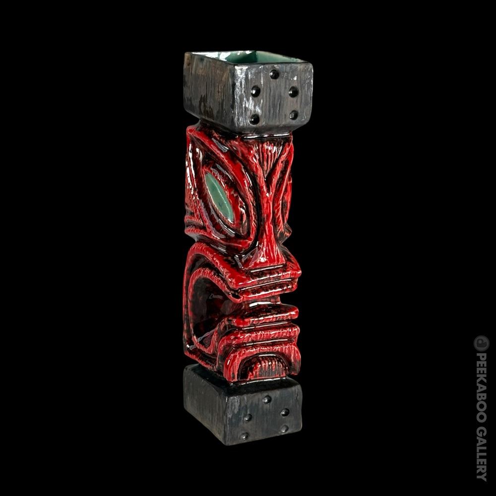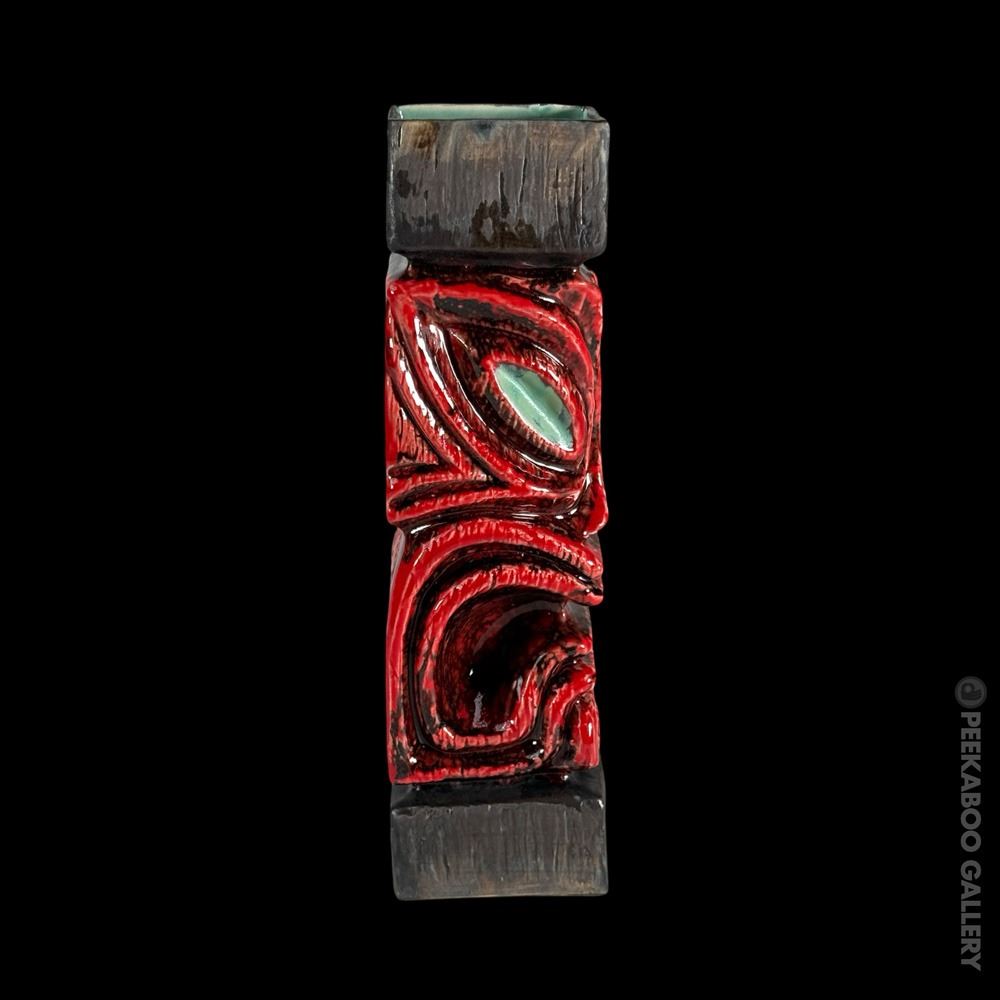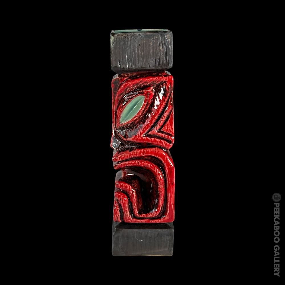 (2019) Red variant of the Gecko famous "Ward Warehouse" post carvings he made for Max's South Seas Hideaway. VG+. 2.5"x10.75"x3".
