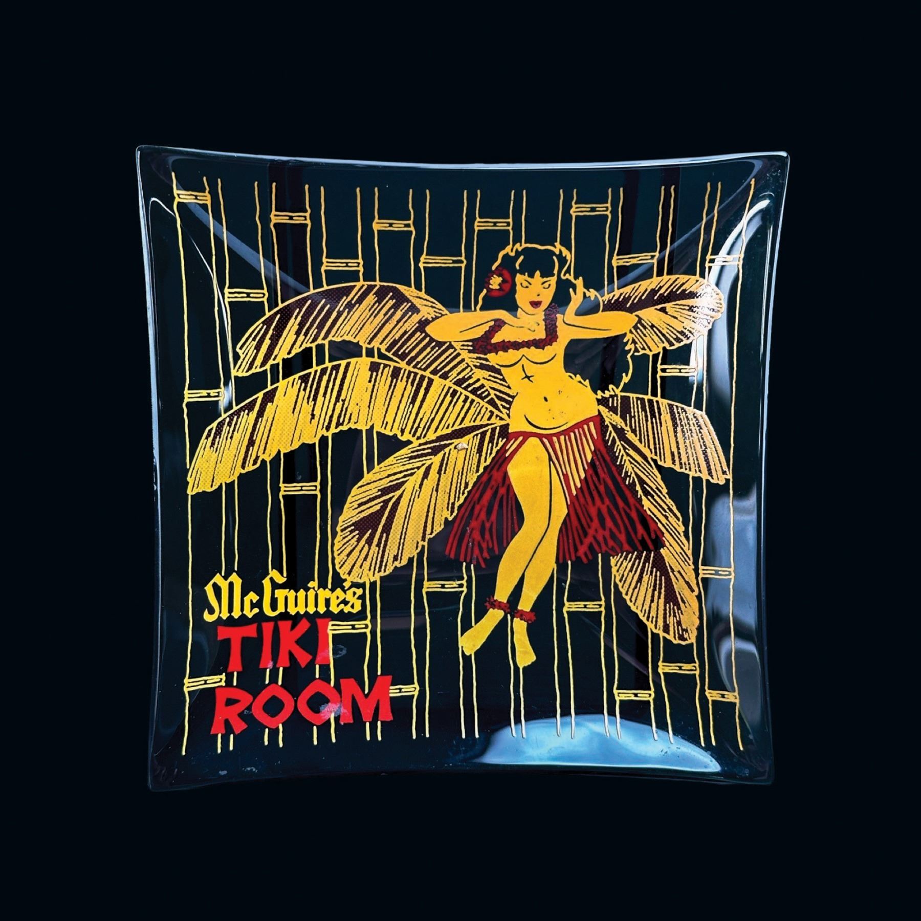 (1960s) One of the most classic of the smoke glass ashtrays, this one featuring a bamboo screen background and lovely hula dancer. VG+. 5.25"x5.25".
