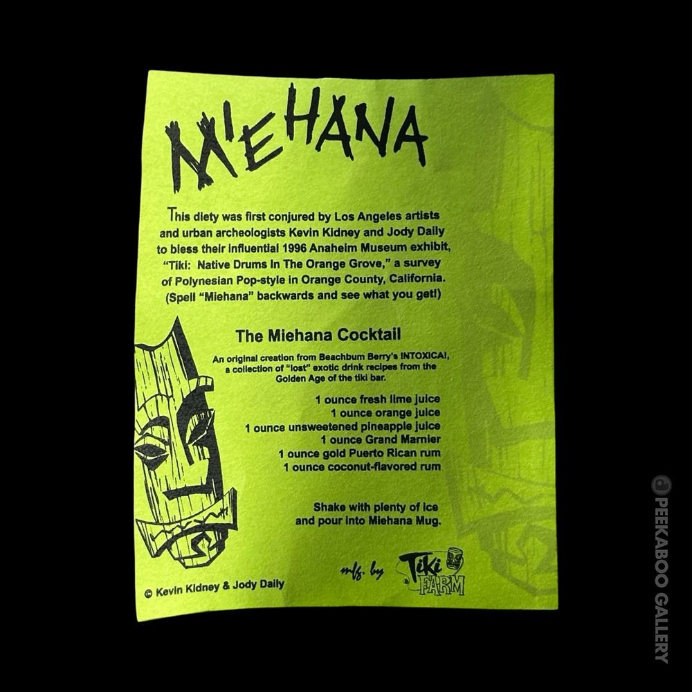 (2003) This mug was designed for an Anaheim Museum Exhibit named “Tiki: Native Drums in the Orange Grove.†It originally came with a recipe card which is present. Meihana, the name of this mug, is Anaheim spelled backwards. VG+. 8.25"x3.25"dia.