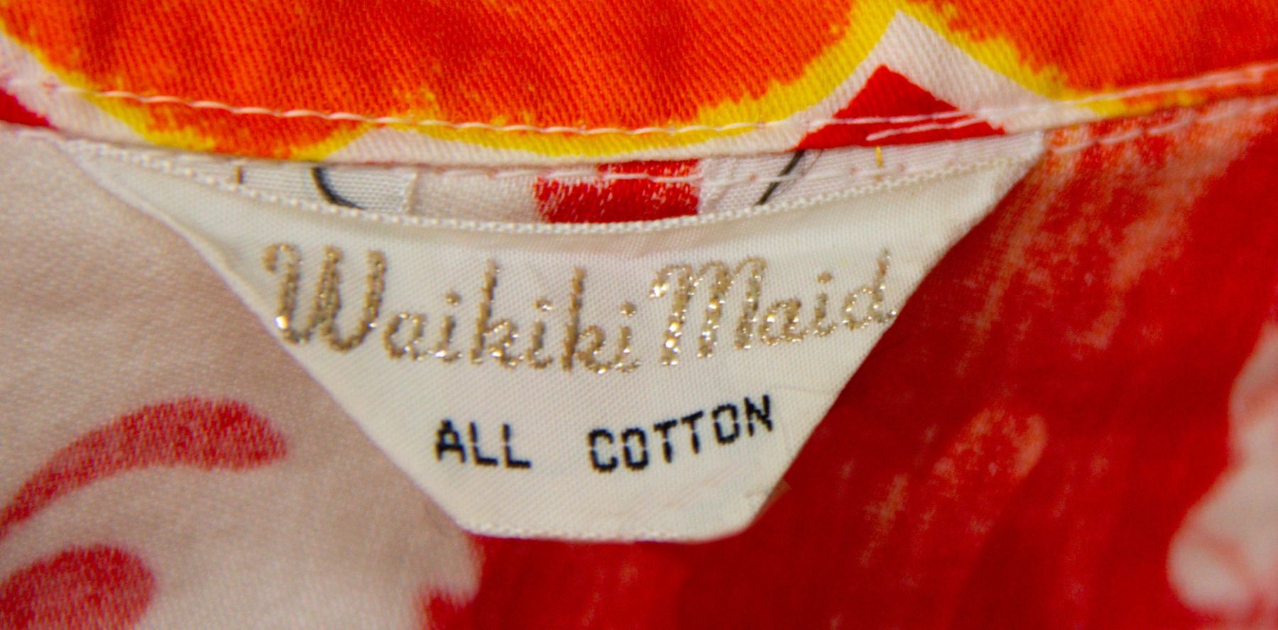 (1960s)* Waikiki Maid label. VG+ with typical wear. BUST-44" LENGTH-31".