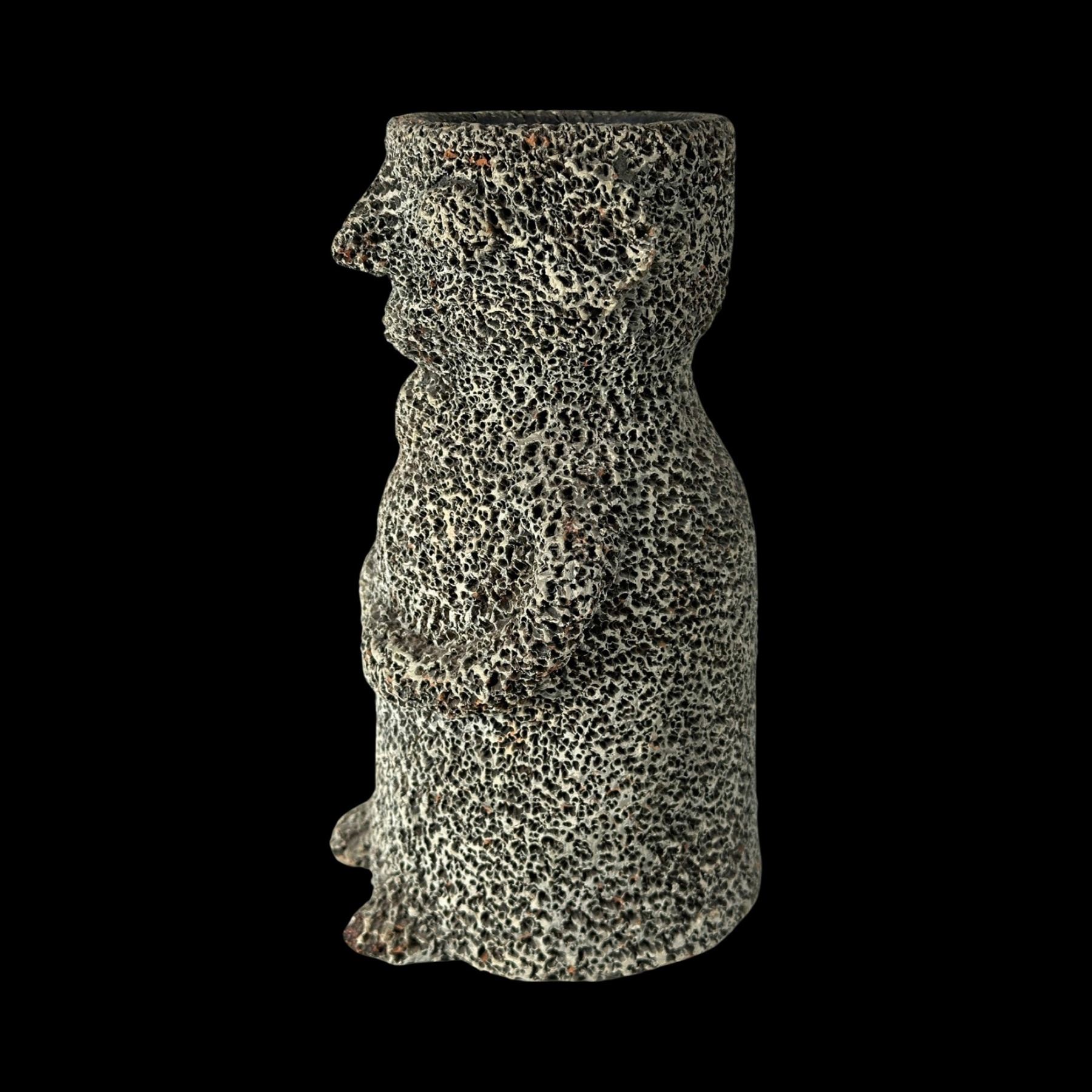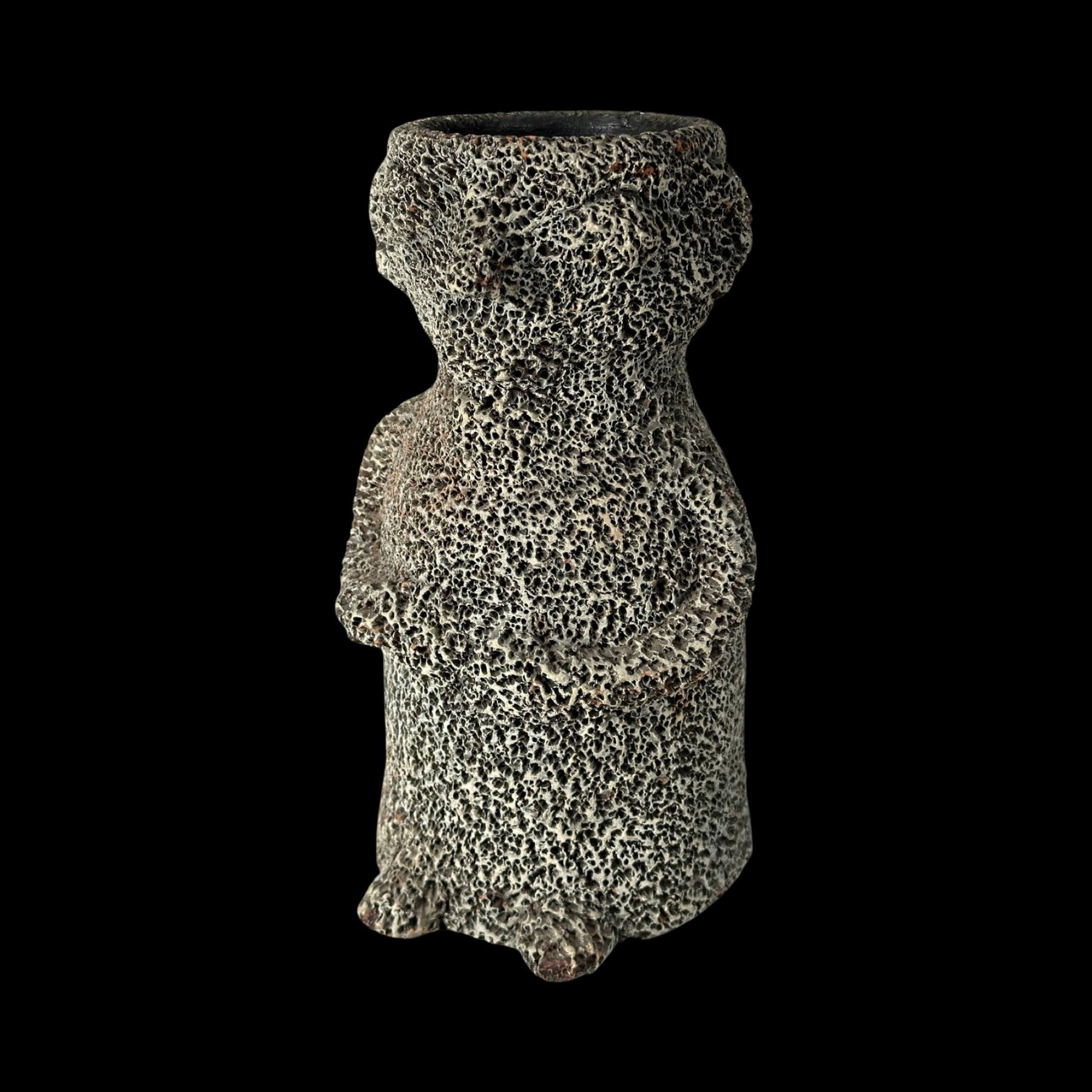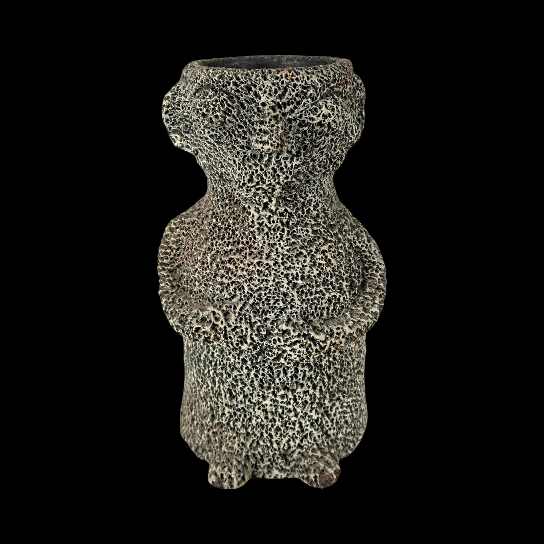 (1950s)* Great example of the kind of decor pieces used to set primitive accents in mid-century modern interiors. VG+. 6"dia x 10.25".
