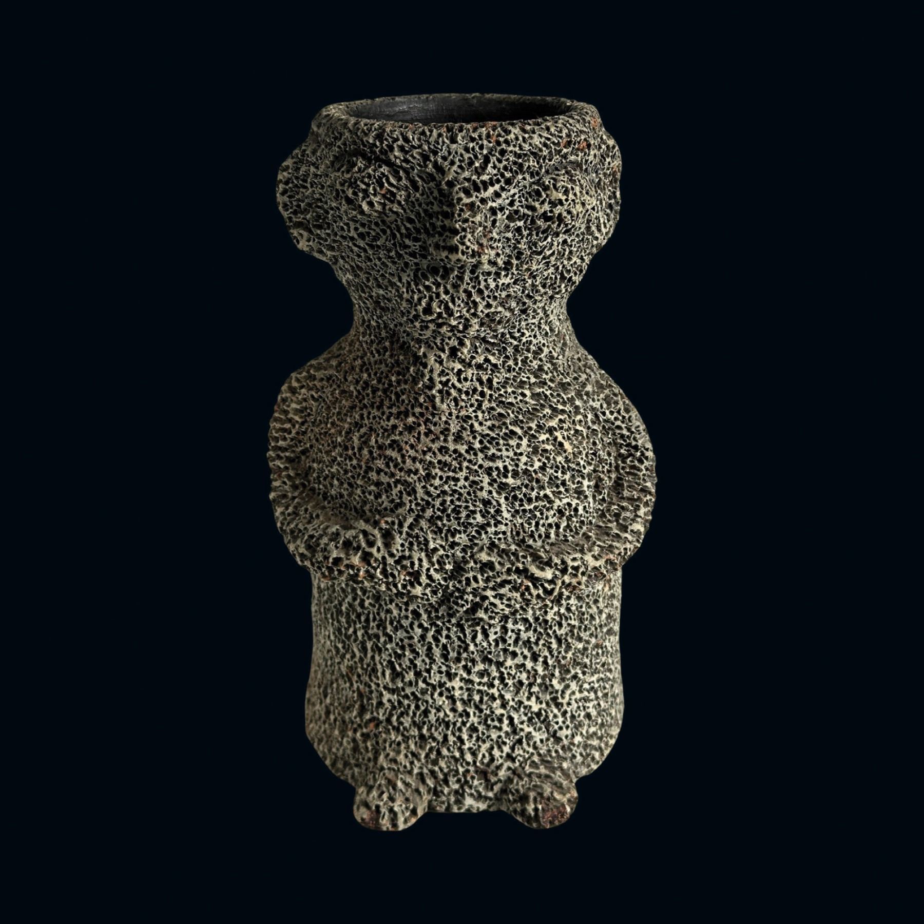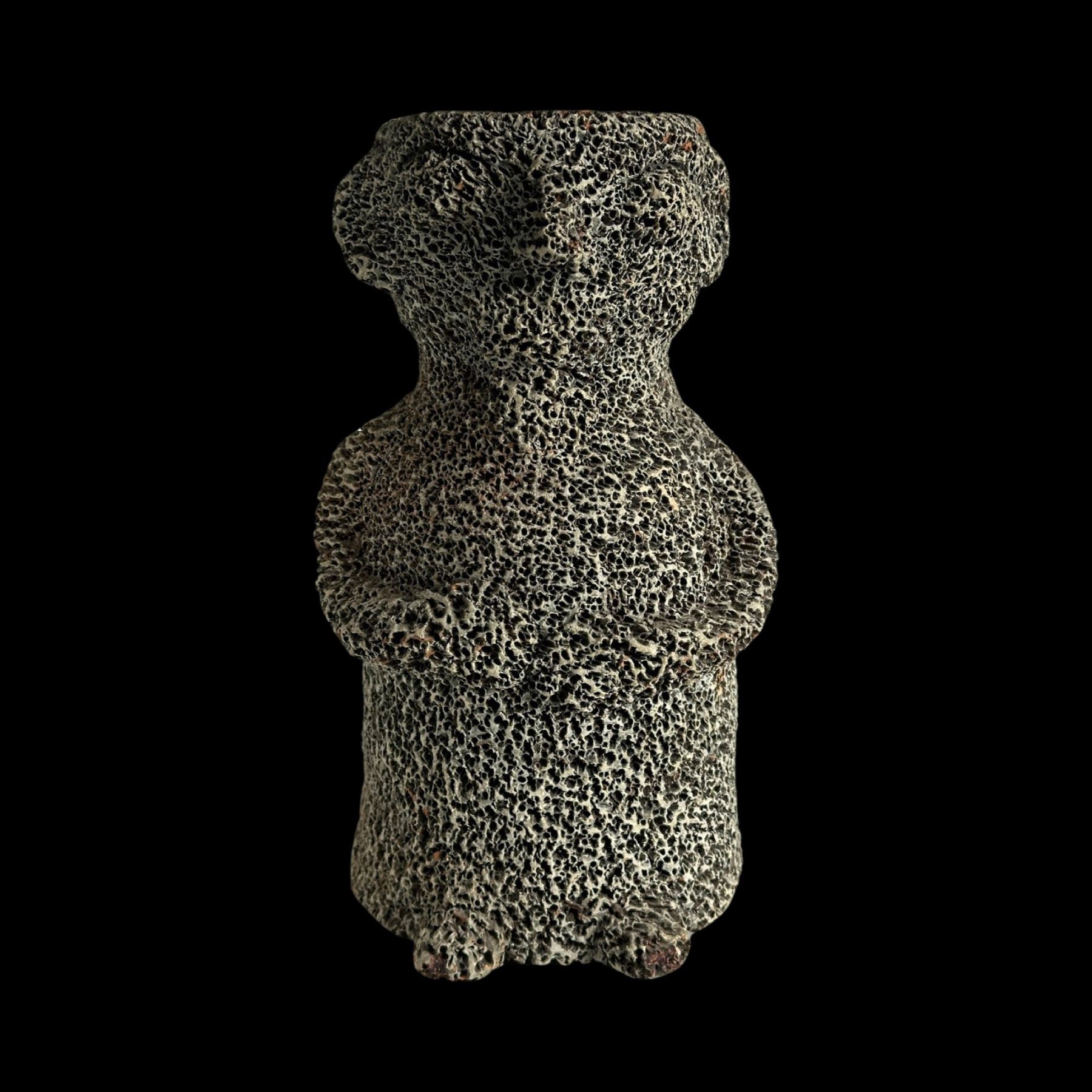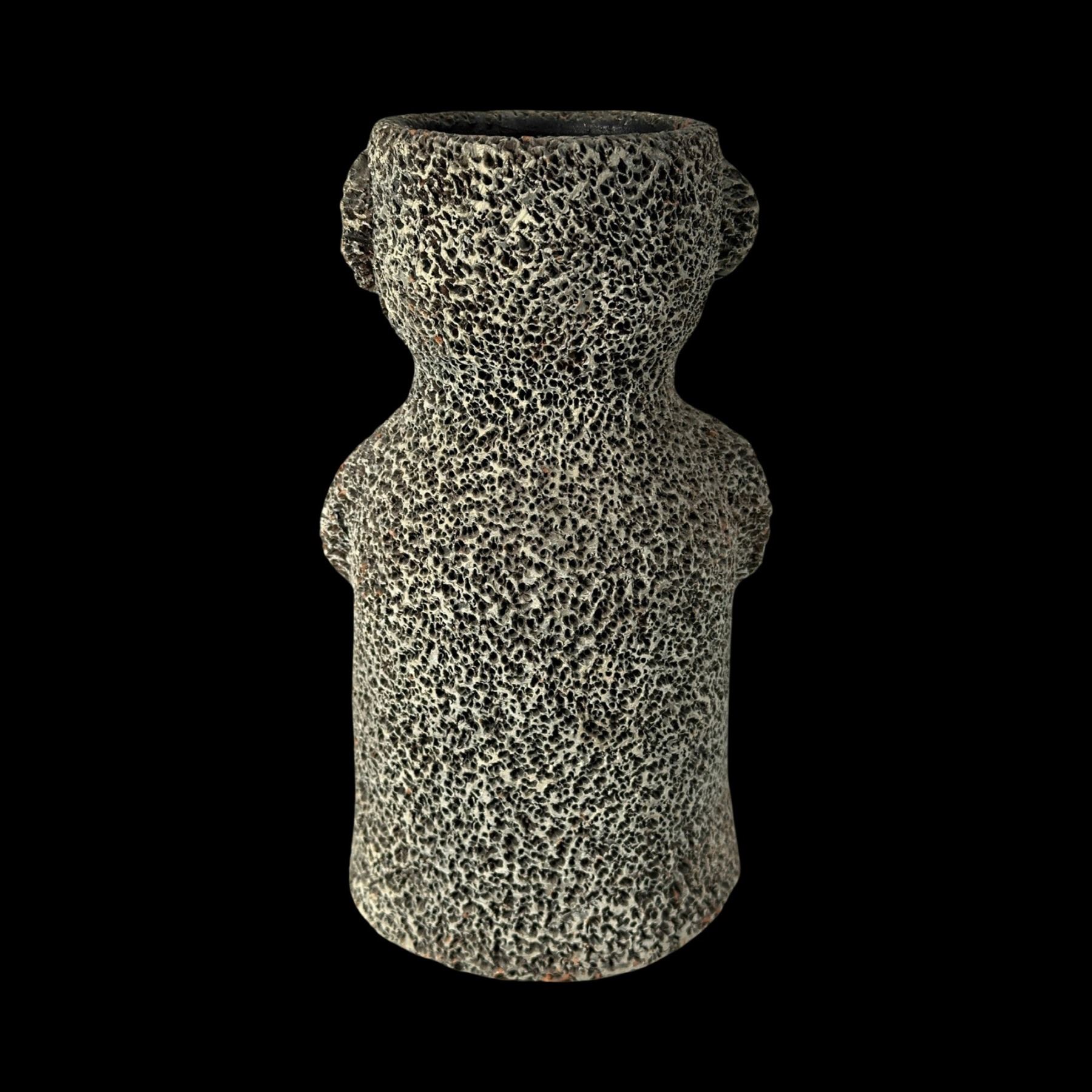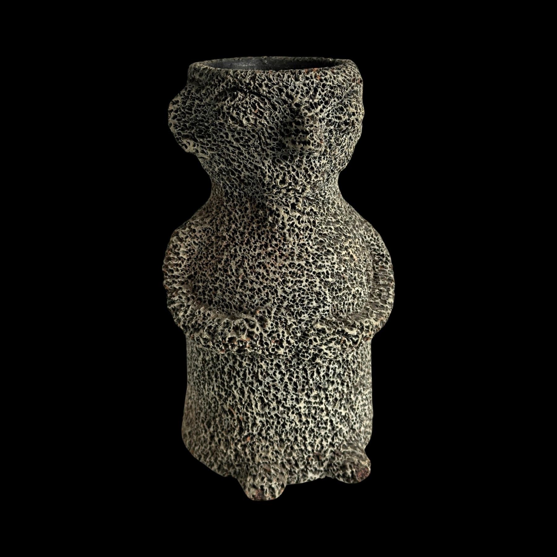 (1950s)* Great example of the kind of decor pieces used to set primitive accents in mid-century modern interiors. VG+. 6"dia x 10.25".