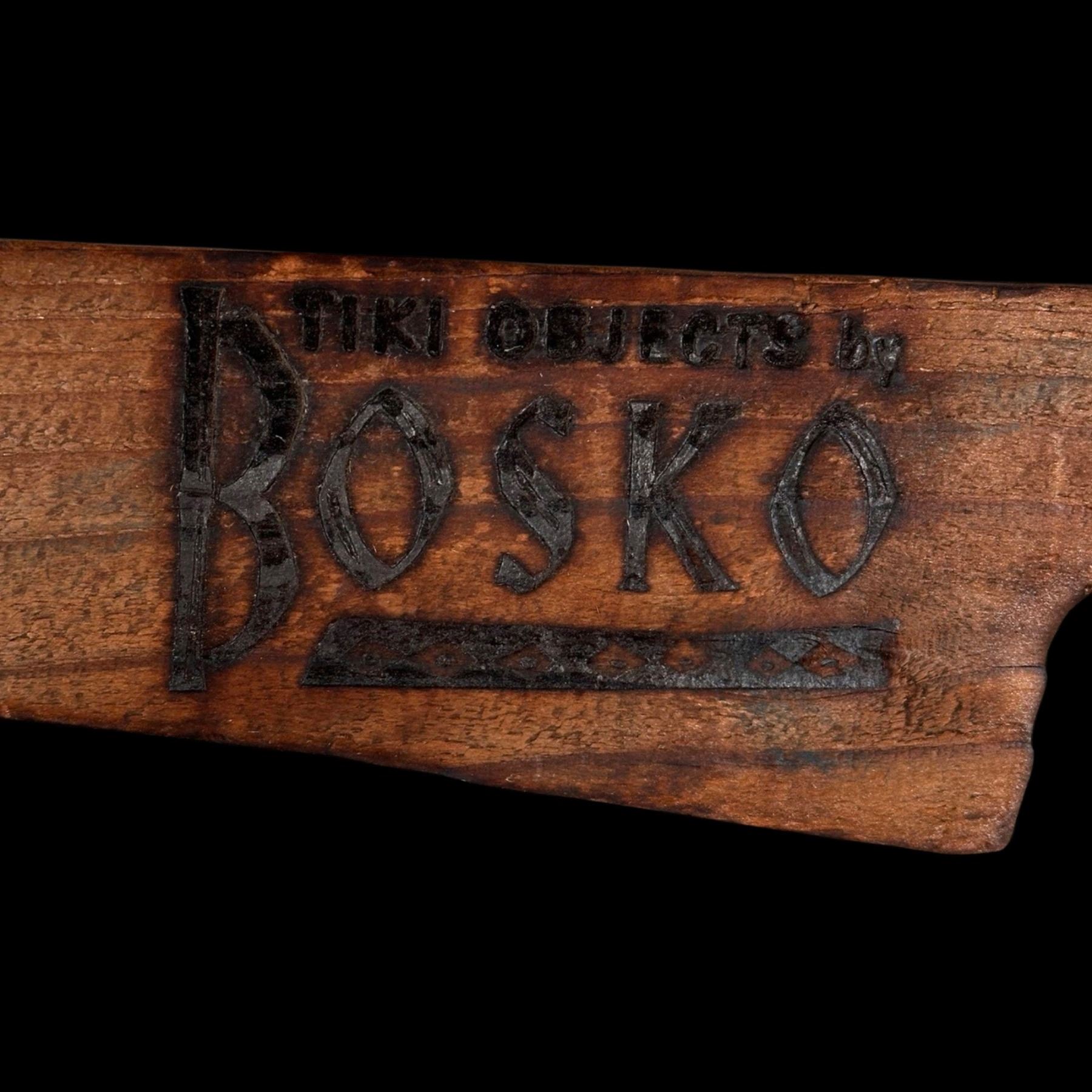 (2000s)* By elongating, shortening or generally altering the basic features of the classic Easter Island Moai statue, modern Tiki artists have proven it to be one of the most adaptable vehicles for creative interpretation. Branded mark on the back by Bosko. VG+. 4.25"x48"x1.5".
