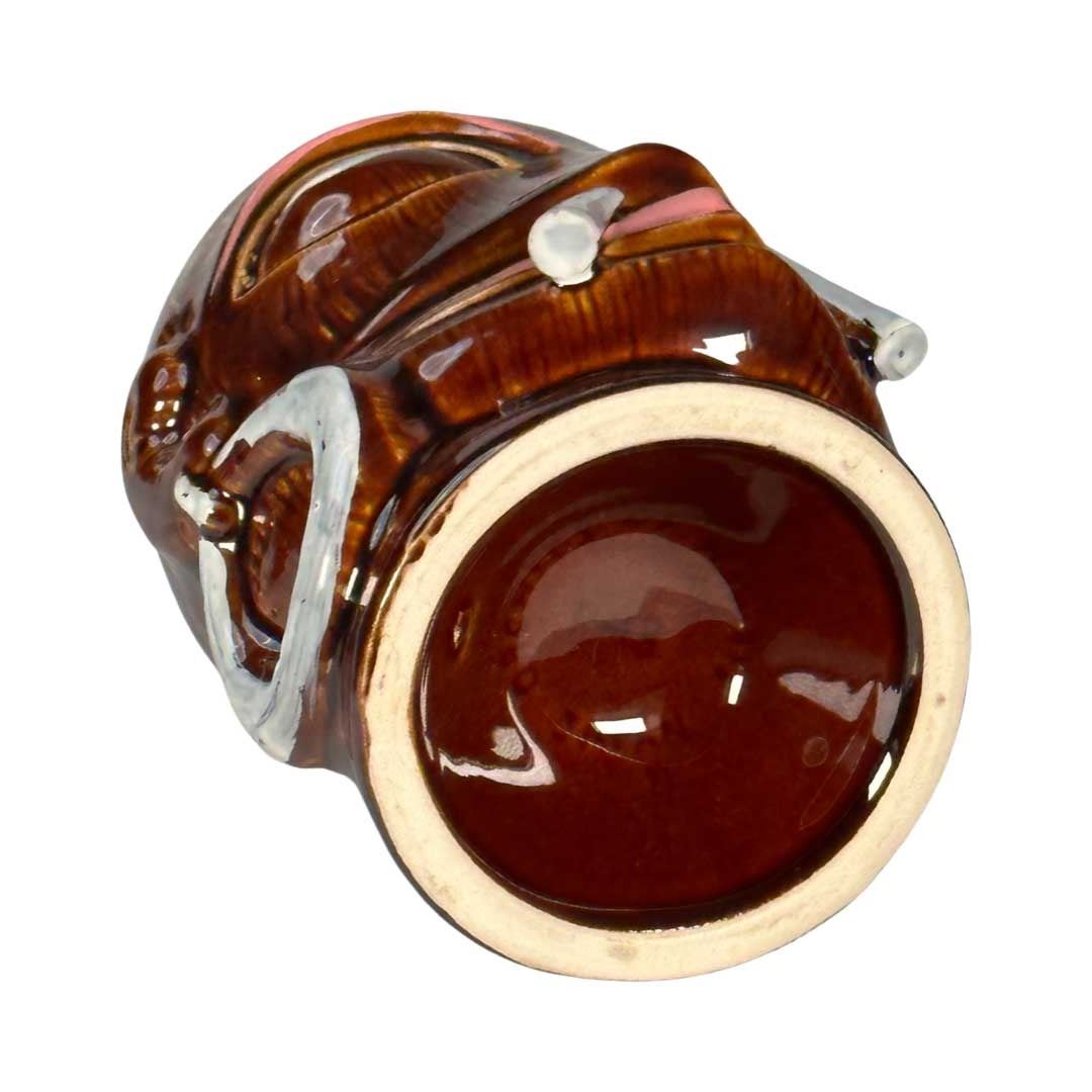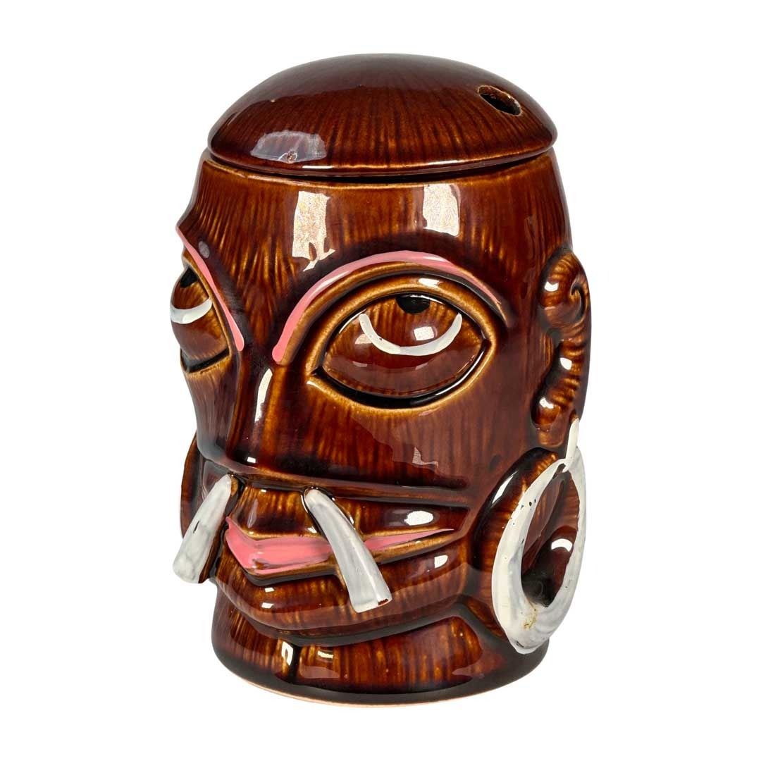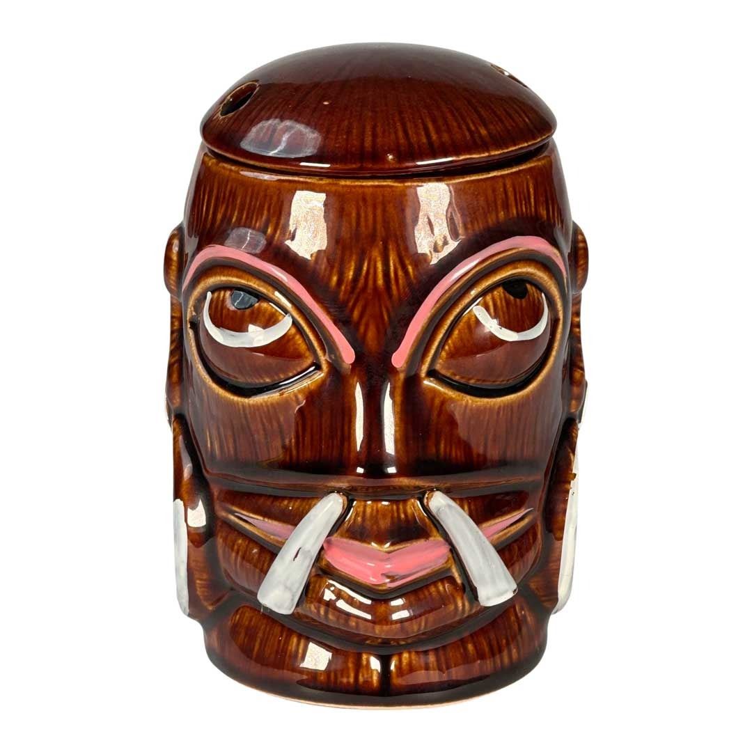 (1960s) An increasingly in-demand vintage mug from OMC. Exterior cold paint in very good condition with removable lid and straw holes. Mug 5.5"x4.5" w/lid 6.5"x4.5". VG+ with minor wear.