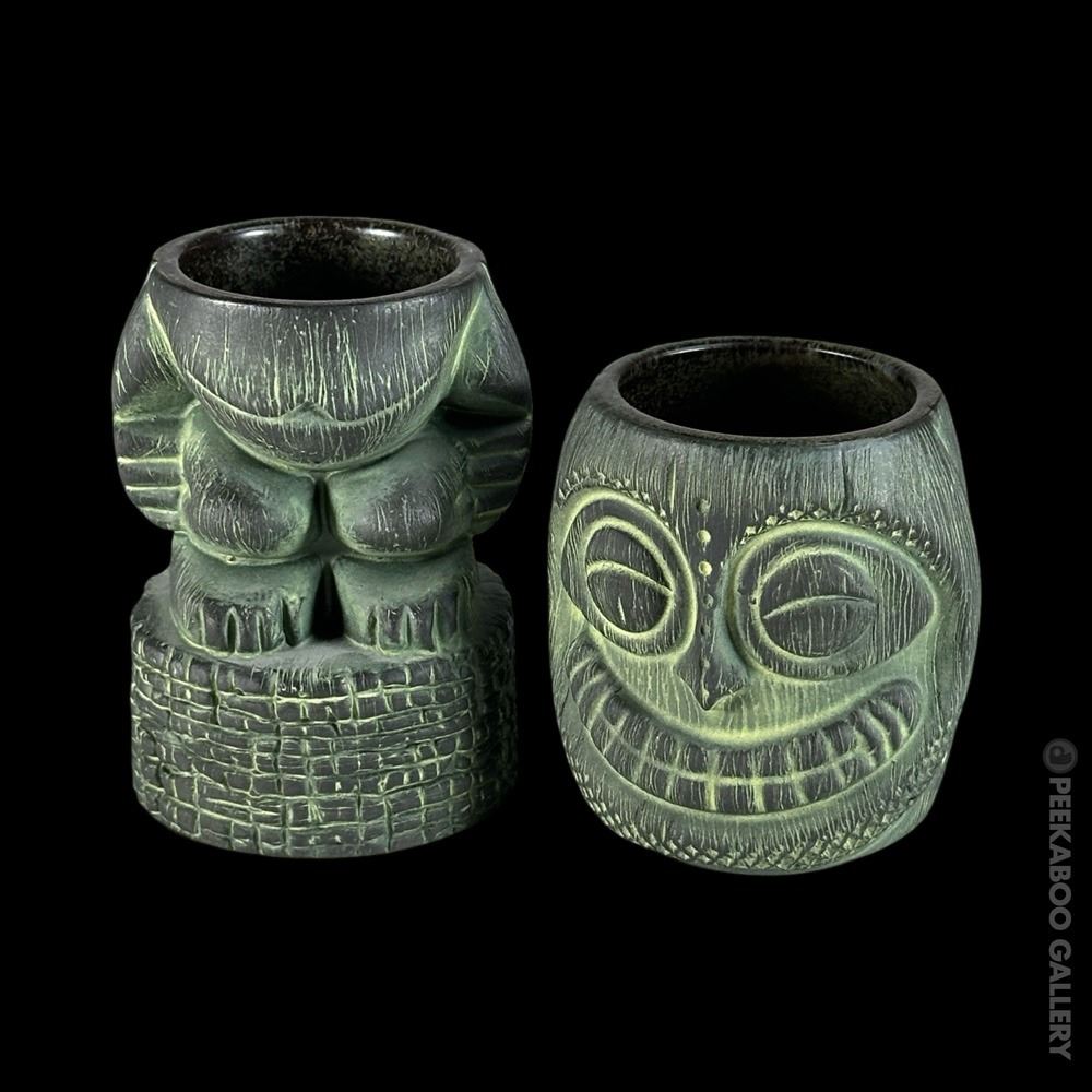 (2012) MUNKTIKI limited edition of 150 PNG Stacker mugs consist of two smaller "stacker" mugs that fit into one another making one larger mug. Hand numbered 18/100. VG+. 7.5"x3.25"dia stacked.