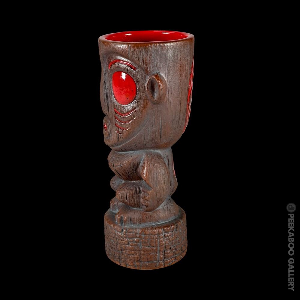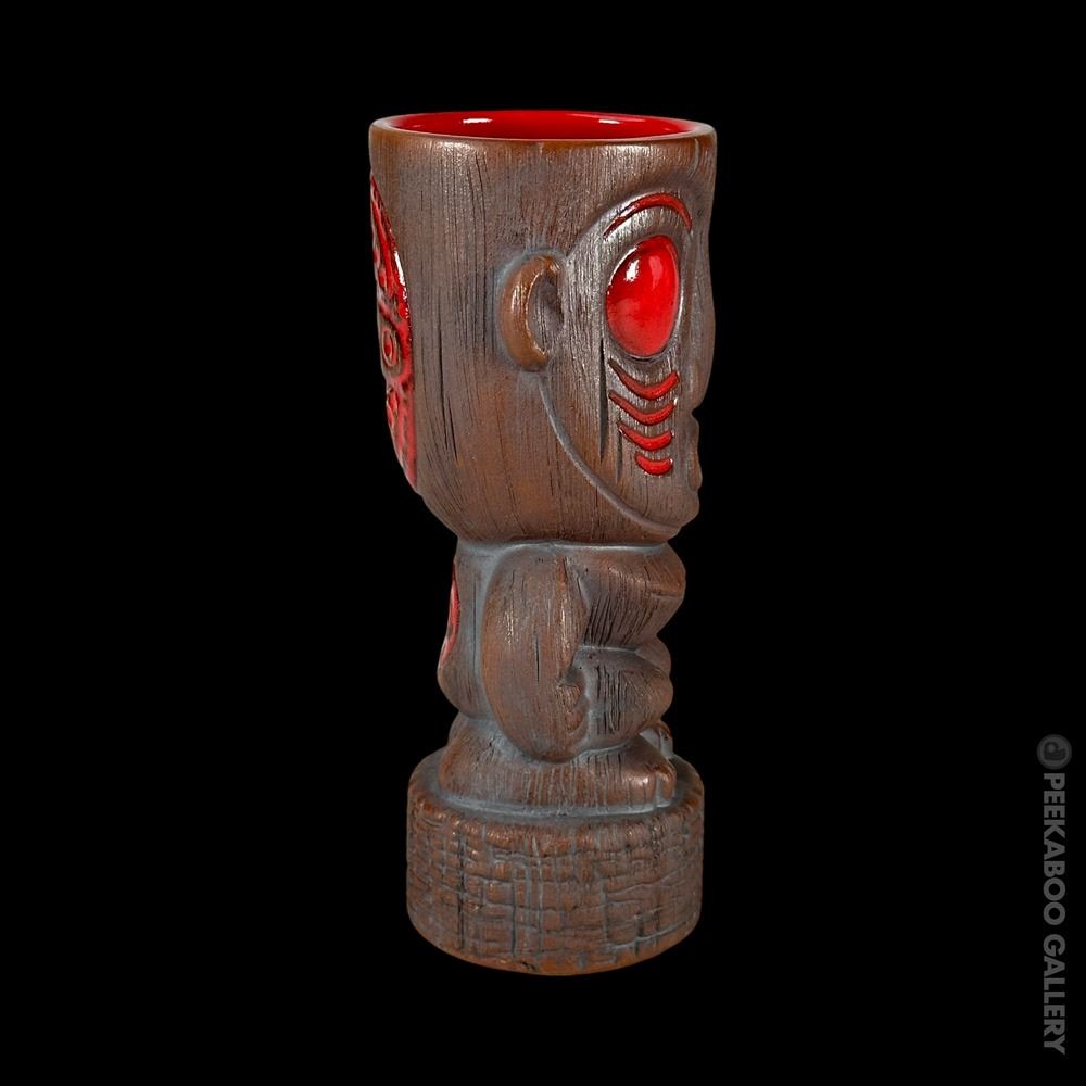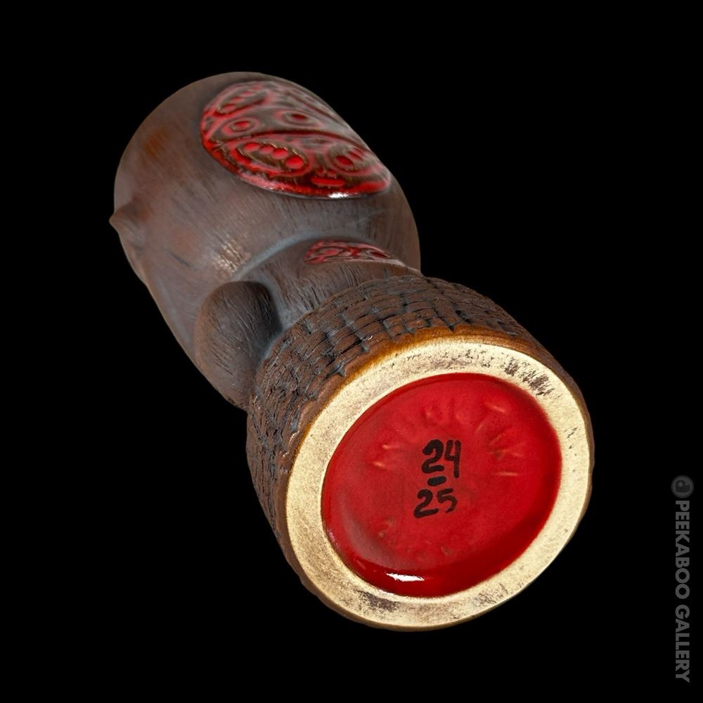 (2012) Munktiki mugs in general are rare. A "normal" release for them was limited to only 100-150 mugs. Upon that release, they would include a SUPER LIMITED EDITION in a particular color scheme. This brown/red version was snatched up within minutes of its release in 2012. Numbered #24/25. Ultra rare. 8"x4"dia.