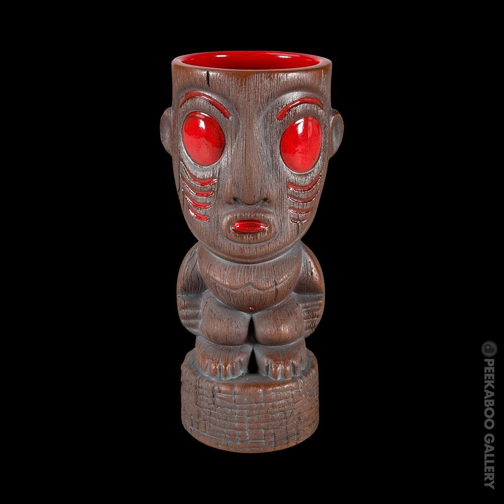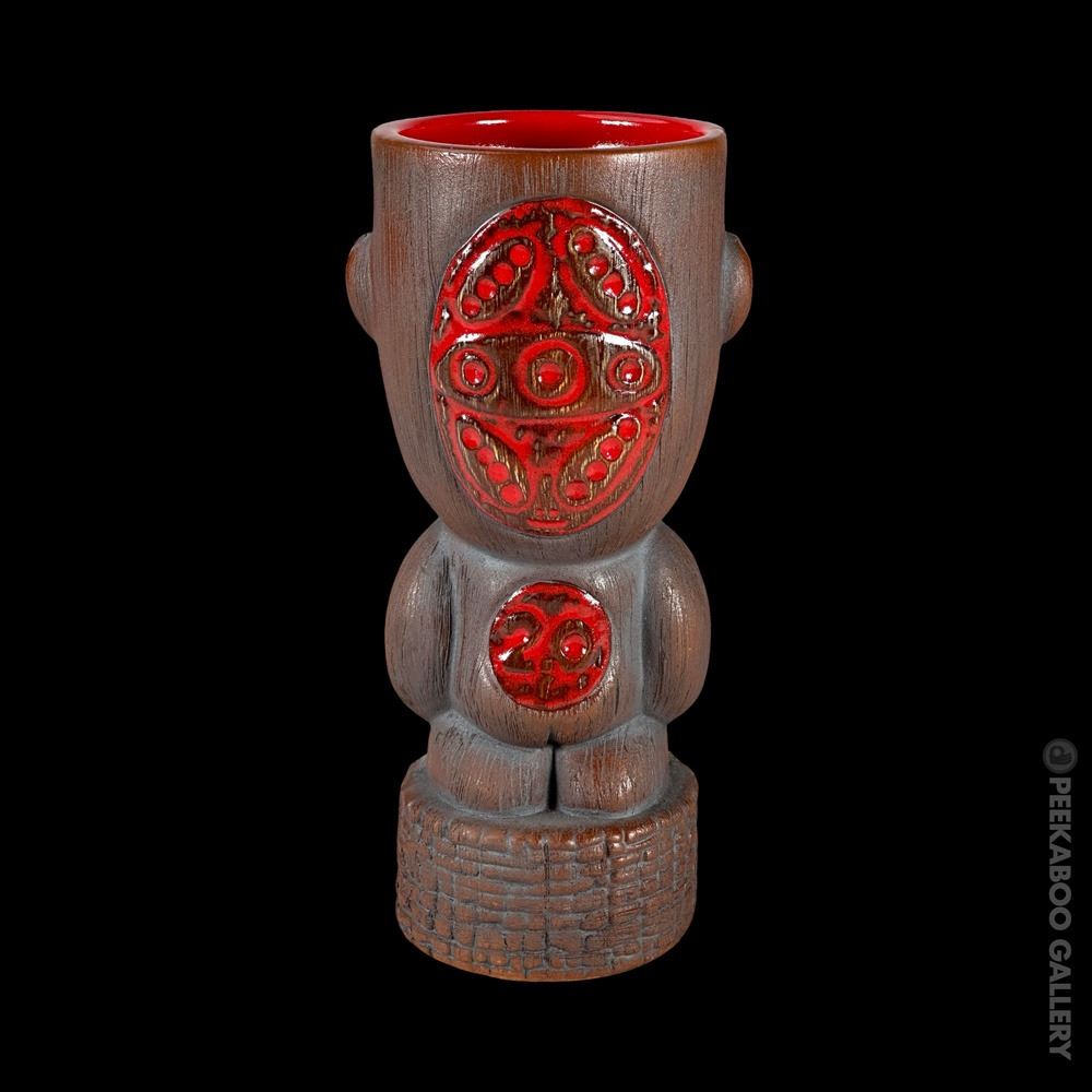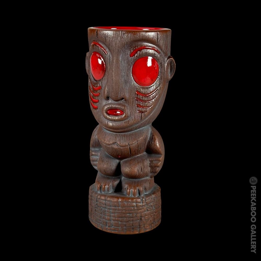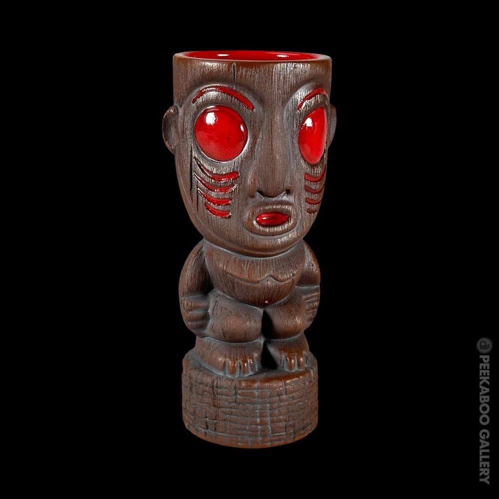 (2012) Munktiki mugs in general are rare. A "normal" release for them was limited to only 100-150 mugs. Upon that release, they would include a SUPER LIMITED EDITION in a particular color scheme. This brown/red version was snatched up within minutes of its release in 2012. Numbered #24/25. Ultra rare. 8"x4"dia.