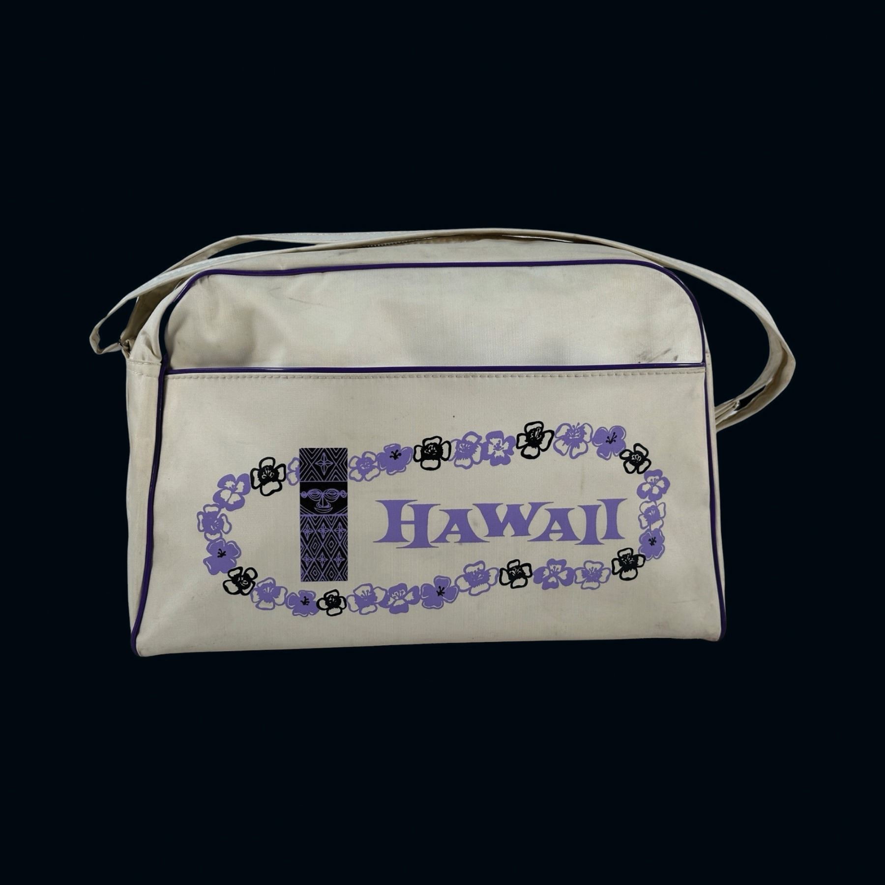 (1960s) Sweet graphics grace this airline travel bag for HAWAII. VG+. 14.25"x9"x6.25".