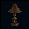 NAUTICAL TABLE LAMP WITH BRASS SHADE AND STARBOARD LIGHT BASE.